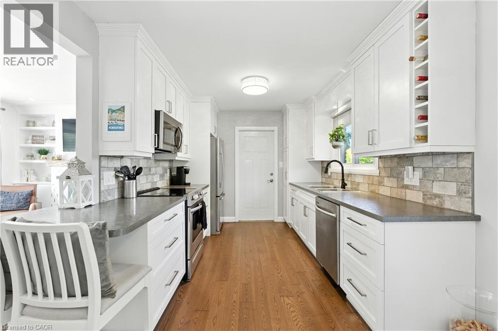 Wake up surrounded by Niagara Wine Country, where weekends mean cycling quiet roads, strolling to nearby vineyards & coming home to a beautifully landscaped corner lot in the heart of the Beamsville Bench. This is more than a home, it’s a lifestyle. Perfectly positioned on a spacious 116 x 107 ft lot, this thoughtfully designed home offering effortless living features 3+1 bedrooms & 2 baths in a move-in ready setting that blends modern comfort with natural serenity. The bright main level showcases a welcoming living room with picture window, gas fireplace with custom mantel & built-ins & a modern kitchen with full-height cabinetry & organizers. The dinette opens to the backyard deck for seamless indoor-outdoor living. Upstairs offers 3 bedrooms with hardwood floors & 4pc bath. The finished lower level with oversized windows provides flexible space for a 4th bedroom w/ new 3pc bath or a spacious rec room. Ample storage includes a crawl space & laundry/utility area. Recent updates include hardwood floors, kitchen appliances, washer/dryer, patio door, A/C, electrical, fireplace, waterproofing, painted, deck & more! Step outside to your private backyard oasis w/ mature perennials, aggregate patio, gazebo, fire pit & shed, the perfect space for entertaining or unwinding. Attached garage, and 5+ car driveway. Minutes to shops, trails & Niagara’s award-winning wineries, experience life on the Bench. (id:4555)
