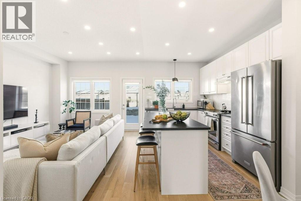 Welcome to this beautifully designed 3 bedroom, 3 bath freehold townhouse offering two storeys of stylish living. The open concept kitchen and dining space showcases a center island, stainless steel appliances, and is perfect for entertaining. Upstairs, the primary retreat features a luxurious spa-like ensuite, along with two additional generous bedrooms and second floor laundry for everyday convenience. Stunning new floors throughout. Step outside to a private backyard with patio and fenced green space, ideal for relaxing or hosting. (id:4555)
