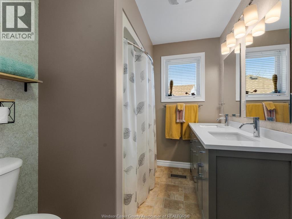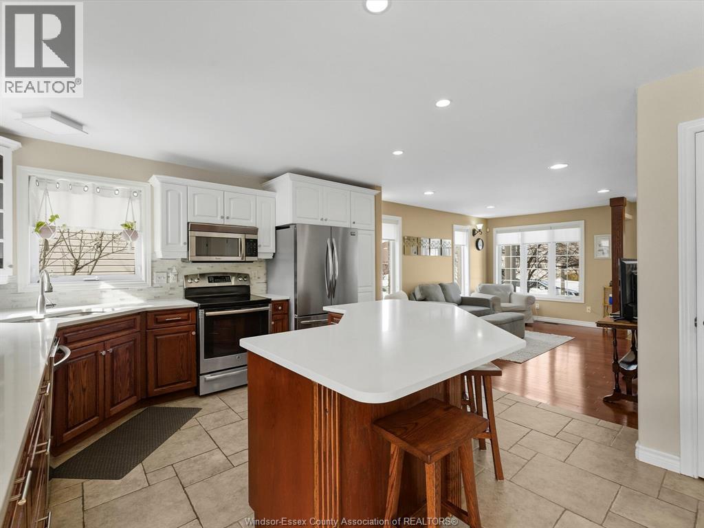Exceptional Lakeshore Living! This unique & stunning 4-bedroom, 3.1-bath brick & stone 1 3/4- storey home offers space, style & versatility for the whole family. Step into a bright, open-concept main floor with hardwood floors, a chef-ready eat-in kitchen featuring a large island, quartz countertops (2023), coffee bar area & abundant cabinetry-perfect for cooking & entertaining. The main-floor primary suite boasts an ensuite and his-and-hers closets, complemented by convenient main-floor laundry and an additional 2-piece bath. Upstairs, three spacious bedrooms and a full bath provide room for family or guests, while the fully finished lower level features a large living area, an office (or potential fifth bedroom), 3-piece bathroom (2019), and utility room-ideal for work, play, or extra living space. Entertain or unwind outdoors in your private, fully fenced backyard, complete with a covered deck, gas barbecue hookup, pergola, and 2 sheds, beautifully landscaped for year-round enjoyment. Additional highlights include a double-car garage with rear garage door for convenient access, included appliances, flexible possession and a prime location near schools, shopping, and amenities. This home effortlessly combines convenience with Lakeshore charm. (id:4555)