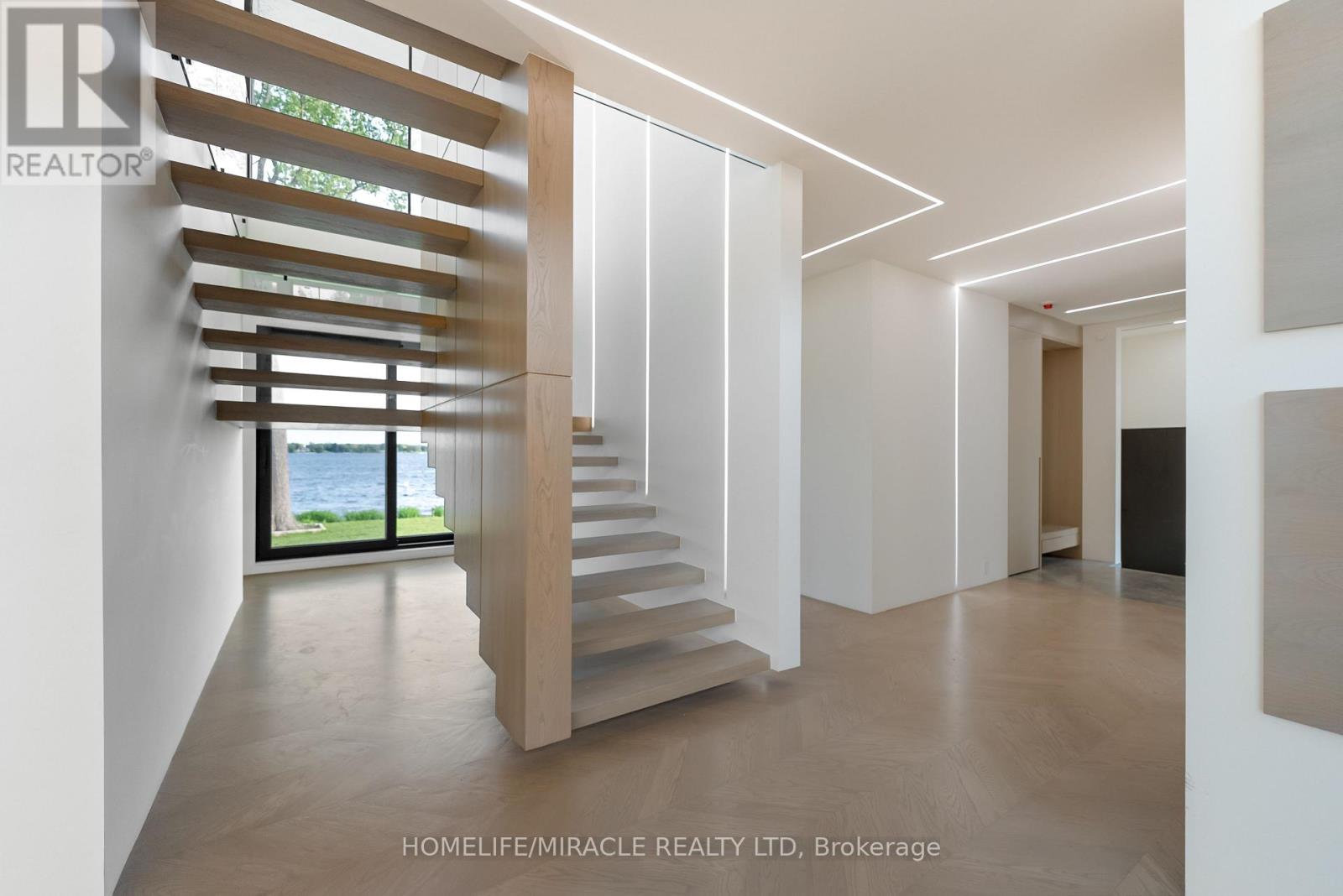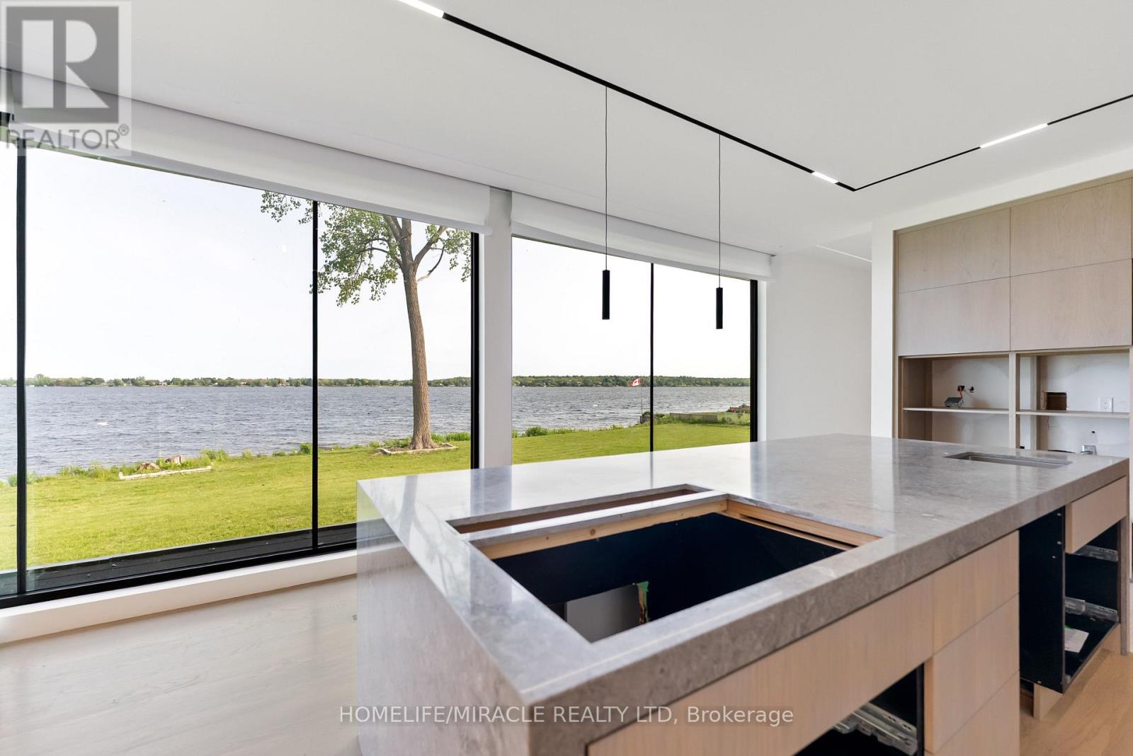 Experience modern luxury in this nearly 5,000 sq. ft. architectural masterpiece overlooking the stunning Bay of Quinte. Offering approximately 6 bedrooms and 5 bathrooms, this exceptional waterfront residence blends striking design with everyday functionality-all just 1.5 hours from. Toronto.Soaring floor-to-ceiling windows flood the home with natural light, highlighting a dramatic floating staircase, curated European lighting, and imported designer countertops. The expansive chef's kitchen is an entertainer's dream, complete with premium finishes, abundant workspace, and seamless flow into the principal living and dining areas.Step onto private balconies and take in panoramic water views, or relax indoors with heated porcelain floors underfoot and spa-inspired designer bathrooms. Every detail reflects thoughtful craftsmanship and elevated architectural style.Additional features include a heated two-car garage with direct interior access and a durable heated concrete driveway that enhances both curb appeal and convenience.Whether hosting unforgettable gatherings or enjoying peaceful waterfront sunsets, this one-of-a-kind smart home offers a refined lifestyle defined by luxury, comfort, and breathtaking natural beauty. (id:4555)