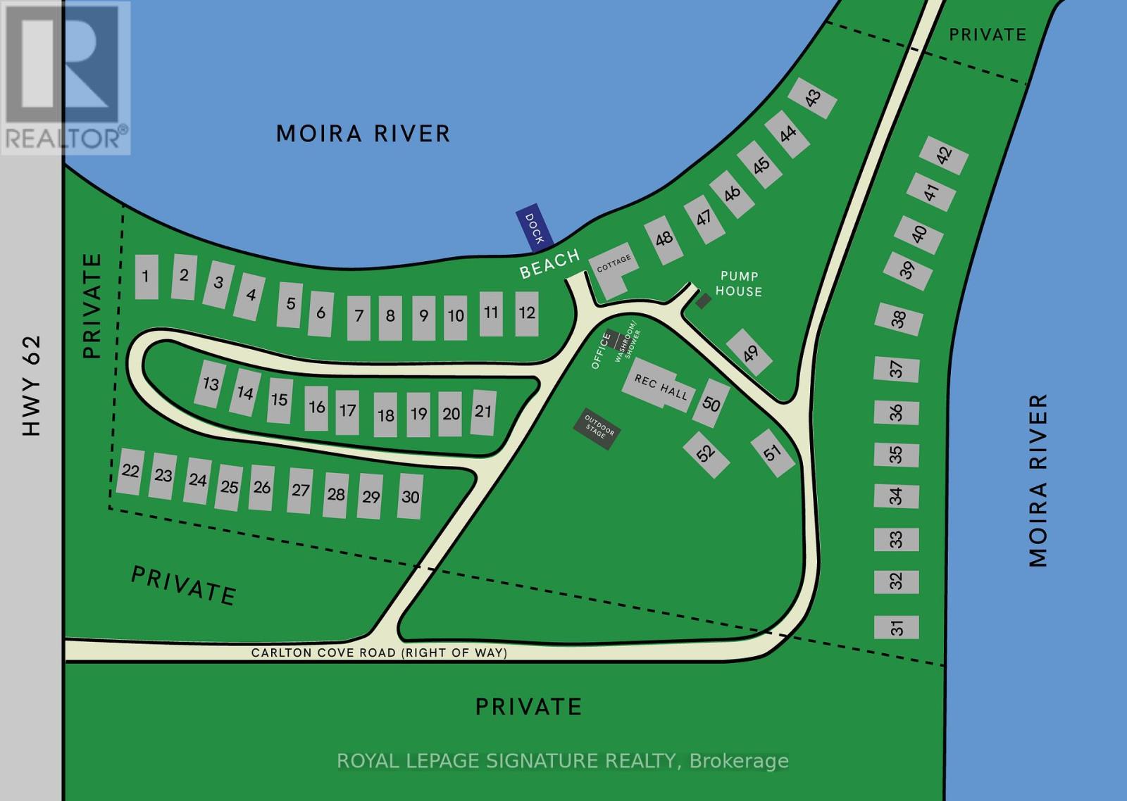 Whether you are an astute investor looking for a high-yield asset or a lifestyle seeker dreaming of a peaceful retreat, Carlton Cove Estates RV Park offers a rare and lucrative opportunity. Spanning just under 9 acres with an impressive 1,200 feet of pristine water frontage, this fully serviced seasonal RV park features 52 well-appointed sites (including 30 premium waterfront spots) and a separate 2-bedroom, 2-bath residence. Strategically located in the Belleville/Foxboro area, just 10 minutes from downtown and minutes from Highway 401, this property serves as a perfect hub between Toronto, Ottawa, and Montreal. Investors will appreciate the stable, high-occupancy history, while those seeking a relaxed lifestyle will fall in love with the village-like atmosphere, serene landscapes, and breathtaking views of the cove. This is more than just a campground; it's a turn key business with significant growth potential in one of Ontario's most desirable recreational corridors. (id:4555)