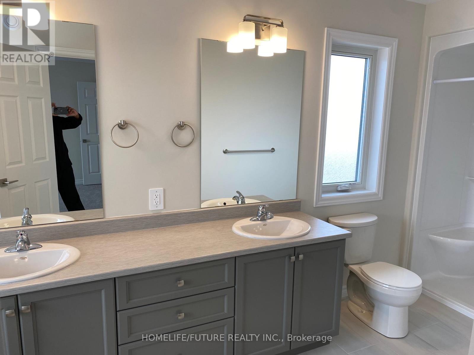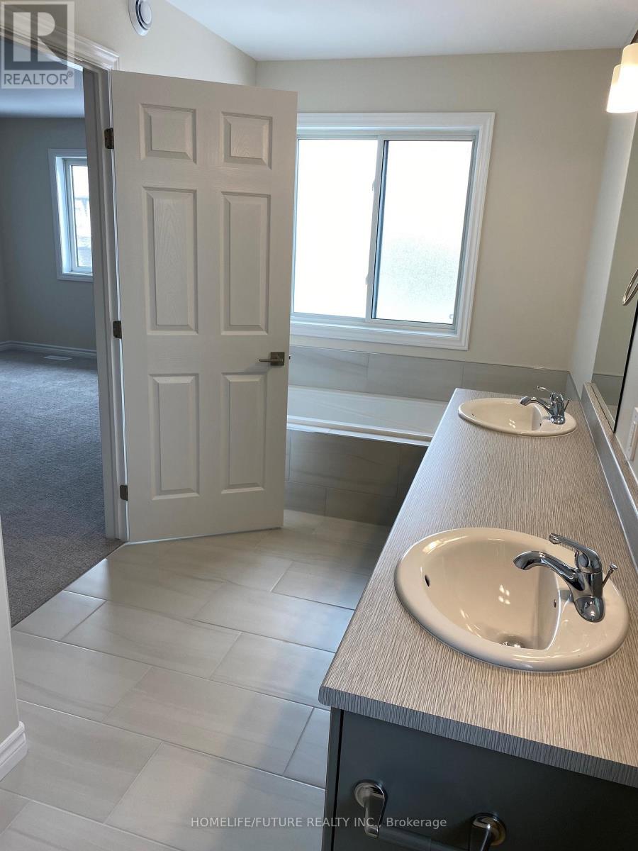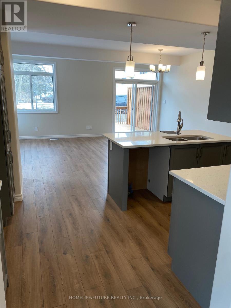 Here is the extracted text word for word:Absolutely stunning 3 bedroom townhome in desirable, family friendly neighborhood. Conveniently located close to highway, shopping, schools and many other amenities. Open concept main floor features 9ft ceilings, combined living & dining and modern kitchen boasting stainless steel appliances and quartz countertops.Upon entering the open foyer, you'll find a separate office area, a powder room, garage access, basement stairwell, and entrance to the well-appointed kitchen. . Upstairs, the primary suite with 5-piece ensuite bathroom and a large walk-in closet. The second floor is completed by the second and third bedrooms, a main bathroom, and a convenient laundry room. Rental application, proof of income and credit reports required. Tenant responsible for hydro, water, gas and HWT rental. (id:4555)