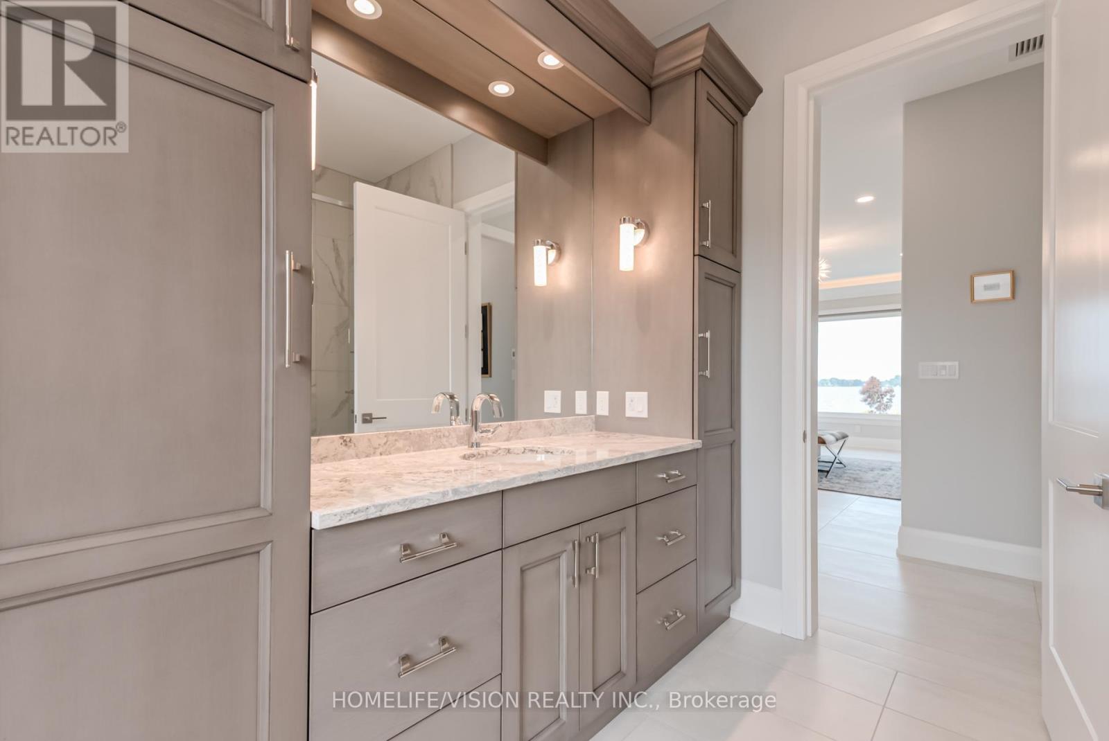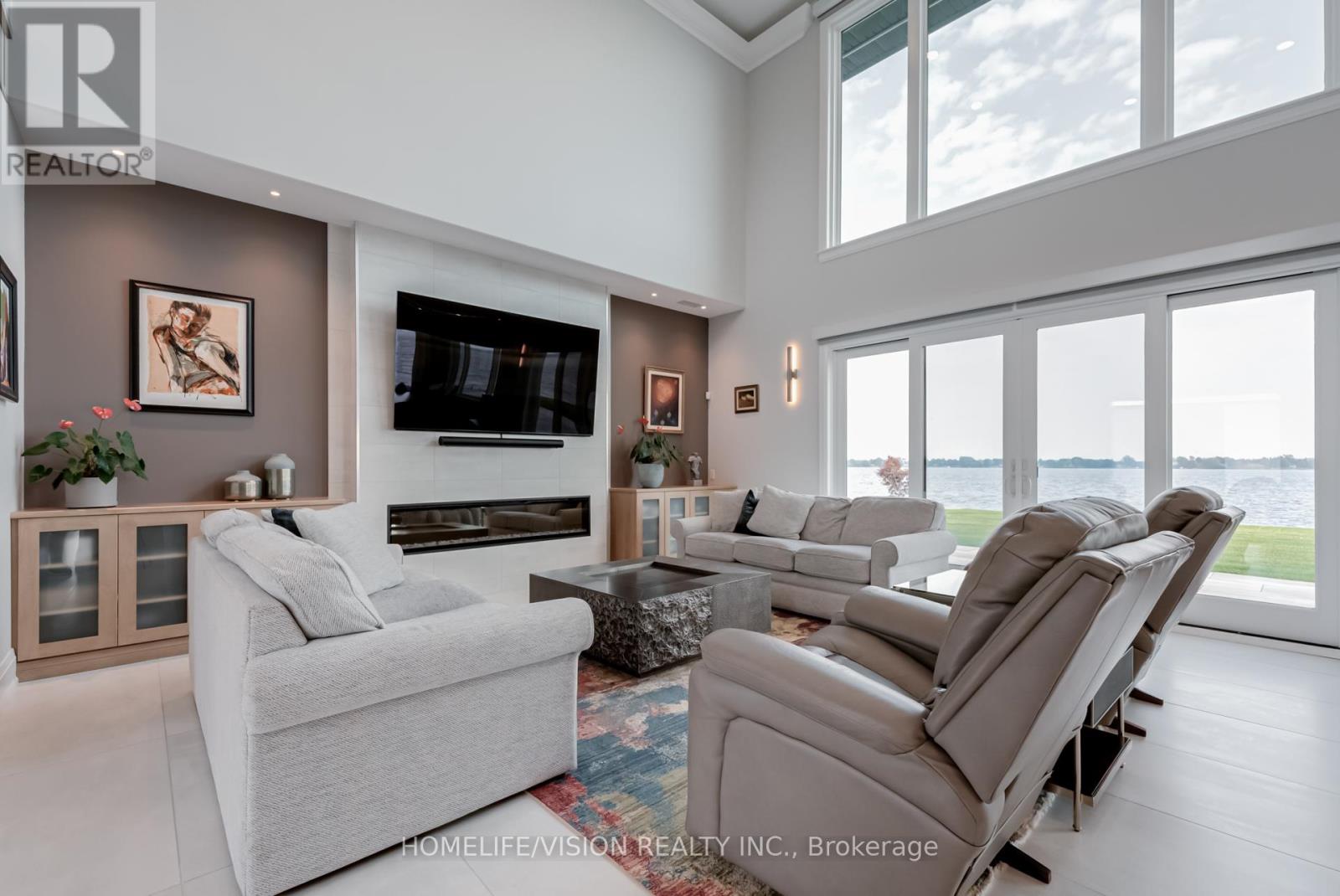 Bay of Quinte BeautySet majestically on the tranquil shores of the Bay of Quinte, this extraordinary custom-built waterfront estate is a rare jewel in Bellevilles luxury market. Completed in 2023 and crafted with unparalleled attention to detail, this home reflects a legacy of craftsmanship, sophistication, and pride. Welcome to the property that redefines lakefront living in every sense. Architectural Elegance Meets Modern Comfort Privately set on a full acre of land, this 5,000 sq. ft. masterpiece boasts a full stone exterior, a commanding presence from the road, and panoramic lake views from nearly every principal room. The design is both impressive and inviting: an open-concept layout anchored by 19-foot ceilings in the great room, and floor-to-ceiling Anderson triple glaze windows that immerse the home in natural light and tranquil waterfront vistas. Luxury in Every Detail The home features four spacious bedrooms, including two upper-level suites with south-facing balconies overlooking the Bay of Quinte. A striking second-floor bridge way connects the east and west wings, creating a dramatic interior experience rarely found in private homes. Premium features include: Motorized, high-quality blinds throughout Electric fireplace10-foot ceilings on the main floor, and 9-foot ceilings upstairs Heated ceramic flooring on the main level Engineered maple hardwood floors on upper level Custom sauna, offering the perfect relaxation space year-round Custom closets and cabinetry throughout the house. Gourmet Kitchen & Entertainer's Dream The chefs kitchen is a work of art, outfitted with top-of-the-line Miele appliances including: Stainless steel fridge & freezer Induction cooktop Wall oven Combi- steam wall oven Dishwasher Vacuum sealing drawer for sous-vide cooking147x42 quartz topped island Quartz counter tops and backsplash MUST SEE !!! (id:4555)