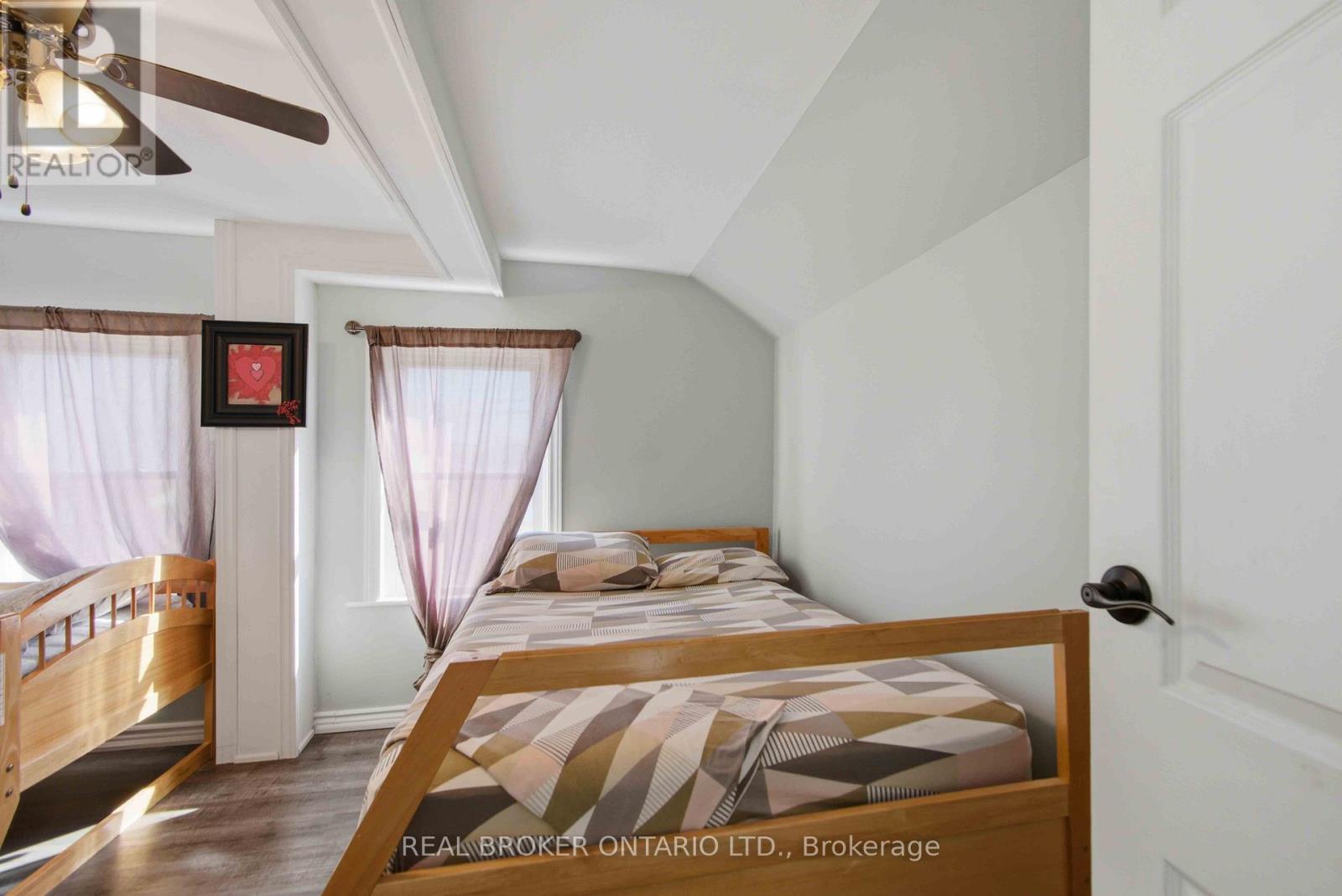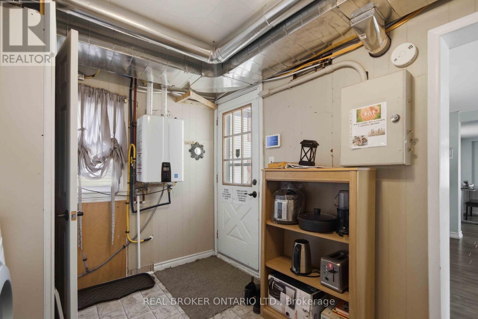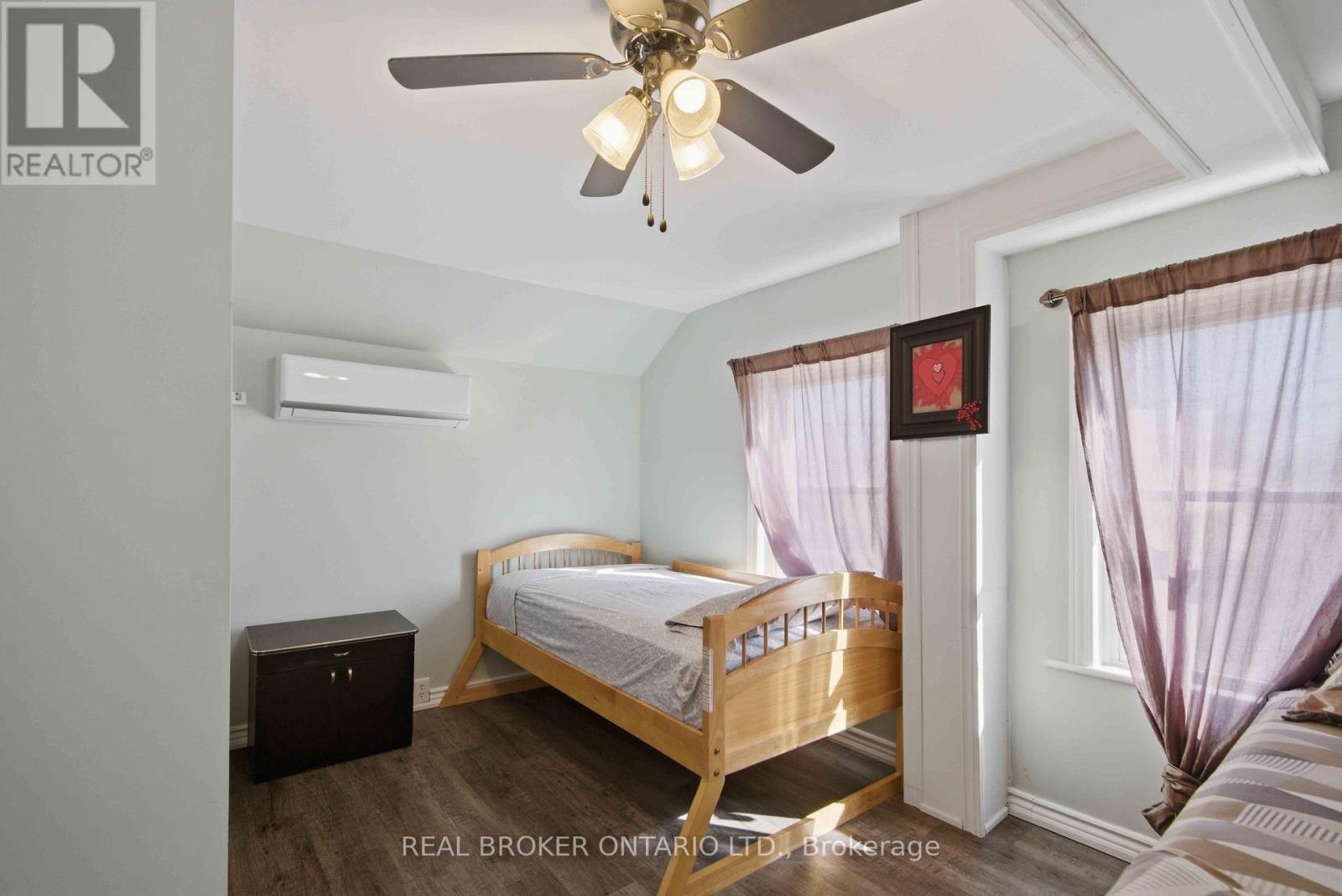 Welcome to 66 South John St, Belleville-offering cozy, flexible living in the city's revitalized south end, just steps from the Bay of Quinte, Meyers Pier, Victoria Harbour, public boat launch, and scenic walking trails. This charming 1.5-storey home, once a 3-bedroom and easily convertible back, features a spacious eat-in kitchen with white cabinetry that flows into a bright dining and living area, creating an ideal layout for everyday living and entertaining. Upstairs offers two generously sized bedrooms, including a freshly updated primary with potential to be reconfigured into a third bedroom, along with ample storage throughout. Enjoy year-round comfort with multiple wall-mounted heating and cooling units, updated electrical, and a well-appointed 4-piece bath on the main floor. The rear laundry/mudroom provides convenient access to a private deck overlooking a sizeable fenced yard, perfect for relaxing or hosting. A detached garage adds incredible versatility-currently used as a recreation space with potential for a hot tub or workshop-while exterior upgrades include newer eavestroughs with gutter guards and an extended driveway for ample parking. An excellent opportunity to own an affordable home in one of Belleville's most up-and-coming neighbourhoods, with flexible living options and room to make it your own, with select inclusions negotiable. (id:4555)