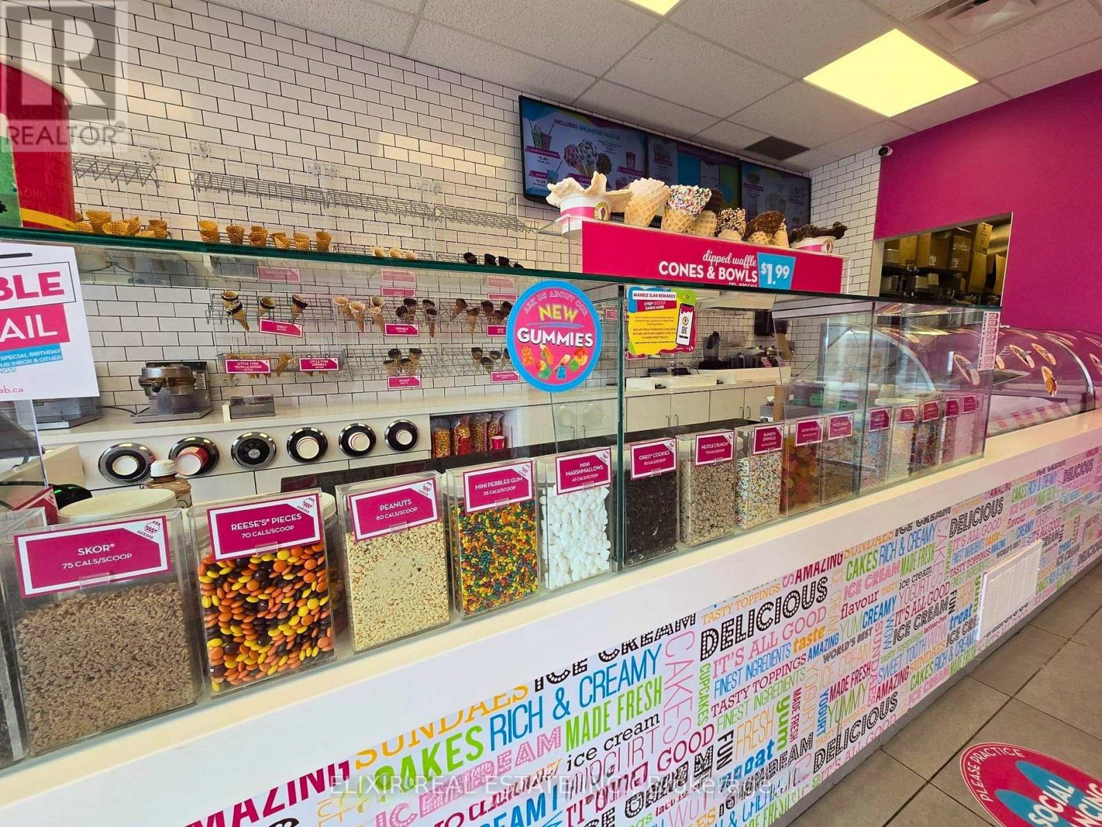 Excellent opportunity to acquire a well-established Marble Slab Creamery franchise located in a high-traffic plaza in Belleville. Established in 2021, this turnkey business benefits from strong brand recognition, a loyal customer base, and a modern, fully built-out interior.Prime location in one of Belleville's busiest shopping centres offering excellent visibility and consistent foot traffic. The business operates with stable weekly sales ranging from approximately $6,000 to $7,000.Favourable lease in place with below-market rent, currently under 10% of gross sales, providing strong operational margins. Long-term lease available, offering stability and growth potential.Ideal opportunity for owner-operators or investors looking to enter a proven franchise system. Full training and franchisor support available. (id:4555)
