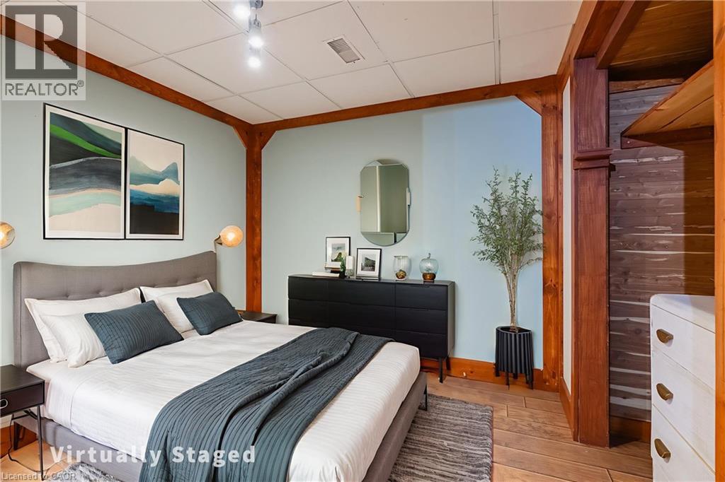 Welcome to this adult lifestyle complex. This well cared for property and spacious bungalow with over 1075 sq.ft. of main floor living space includes a bright, modern eat-in kitchen with walk-out to large deck and gardens, big living room dining room combo boasts elegant plank flooring, cozy gas fireplace and front foyer. Main floor bathroom plus big principal bedroom with walk-in closet and decidant 4 piece ensuite with soaker tub/shower. The basement includes a bedroom, bathroom, rec room, cold room, utilities and large workshop which could be easily converted. There is an attached garage with in-home access and storage shelves. Private driveway, a short walk to all amenities, shopping, pharmacy, Timmies, close to parks and recreation. Small town feel with all the necessities. Shows A+. Appliances, California shutters and more. (id:4555)