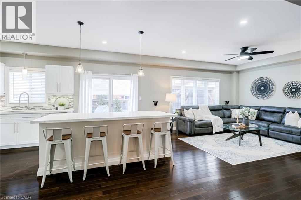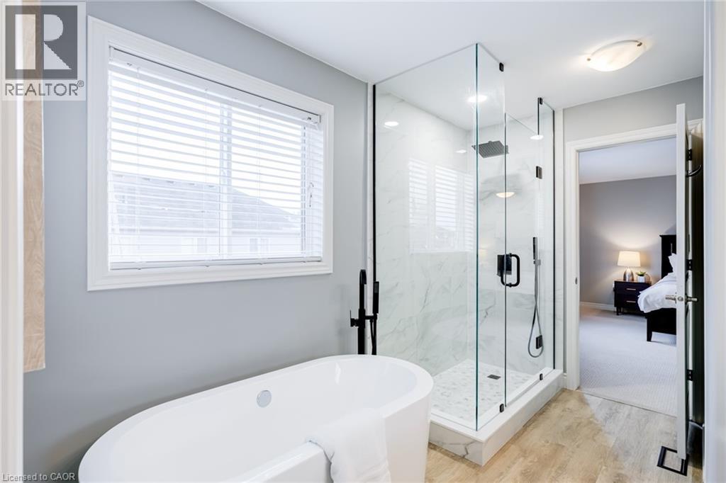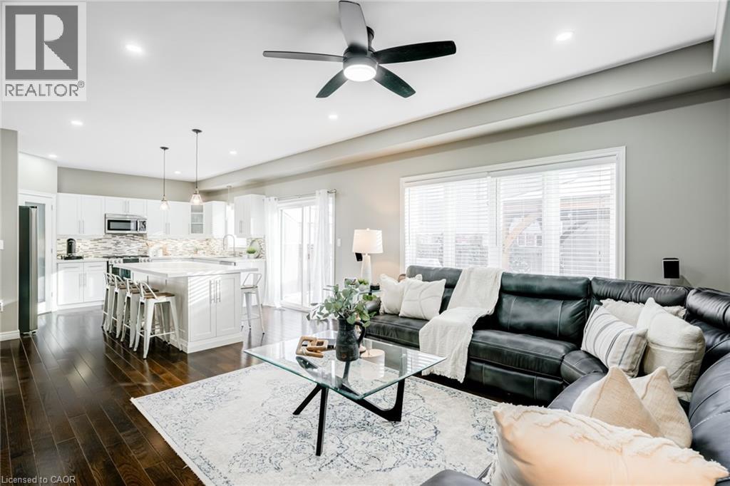 Located in the sought-after community of Binbrook, this stunning two-storey home offers over 2,500 square feet above grade plus a beautifully finished basement—delivering the perfect blend of space, style, and functionality for modern family living. Step inside to an impressive main level designed with entertaining in mind. Soaring ceilings and hardwood flooring create an airy, elegant atmosphere, while the striking fireplace feature wall anchors the living space with warmth and character. A dedicated dining room provides the perfect setting for hosting formal dinners or gathering with family for special occasions. The gourmet kitchen is sure to impress, showcasing quartz countertops, stainless steel appliances, and a large centre island—offering ample prep space, seating, and storage for both entertaining and everyday living. Completing the main level is a versatile office or playroom, offering the flexibility to work from home or create a dedicated space for children and hobbies. Upstairs, you’ll find four generously sized bedrooms, a stylish 4-piece bathroom, and the convenience of upper-level laundry. The luxurious primary suite offers a true retreat, complete with a spa-inspired ensuite and a spacious walk-in closet. The fully finished basement expands your living space with an open-concept layout, durable vinyl flooring, and a sleek 3-piece bathroom—perfect for a recreation room, home gym, or guest accommodations. Outside, the home continues to impress with a double car garage and an exposed aggregate concrete driveway, providing ample parking and excellent curb appeal. Step into the backyard featuring a spacious patio, pergola, and hot tub—an ideal setting for relaxing evenings, family time, or entertaining friends all year round. This exceptional home combines thoughtful design, upscale finishes, and a prime location—an opportunity not to be missed. (id:4555)