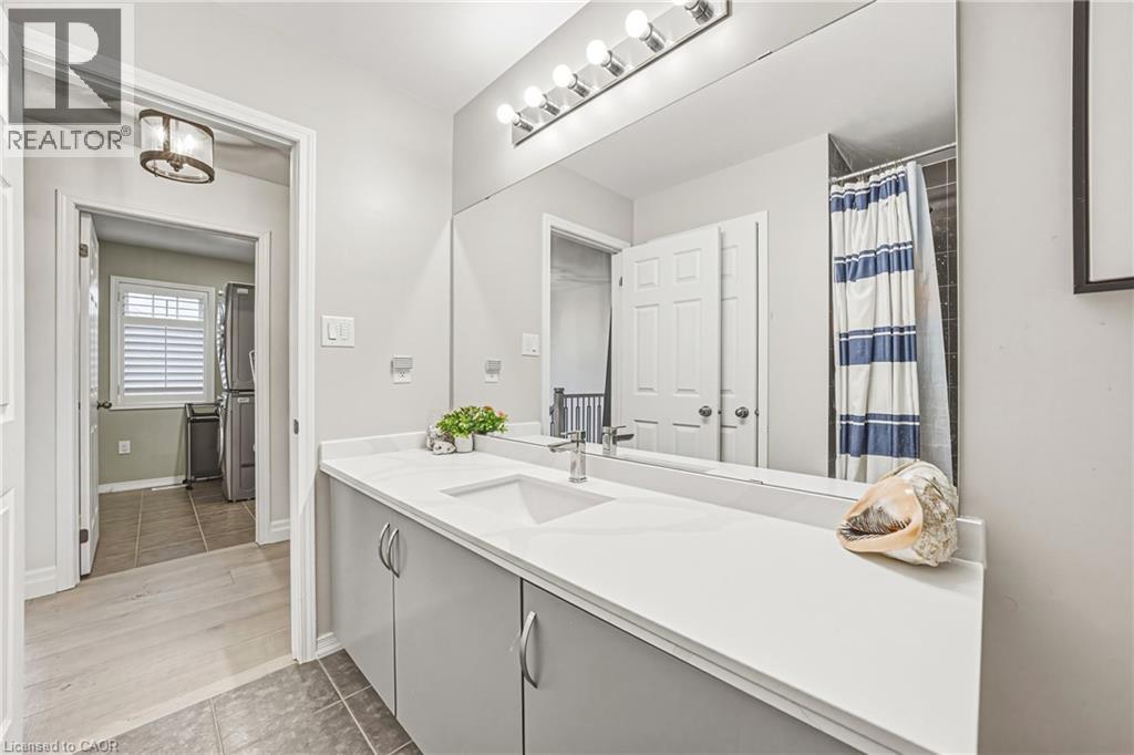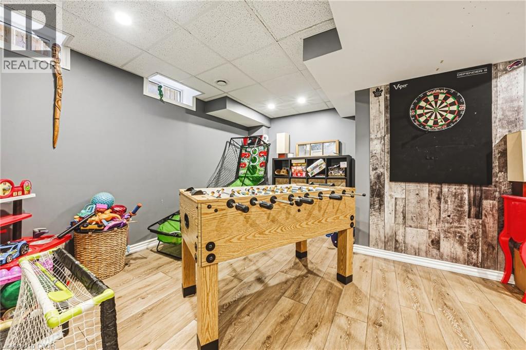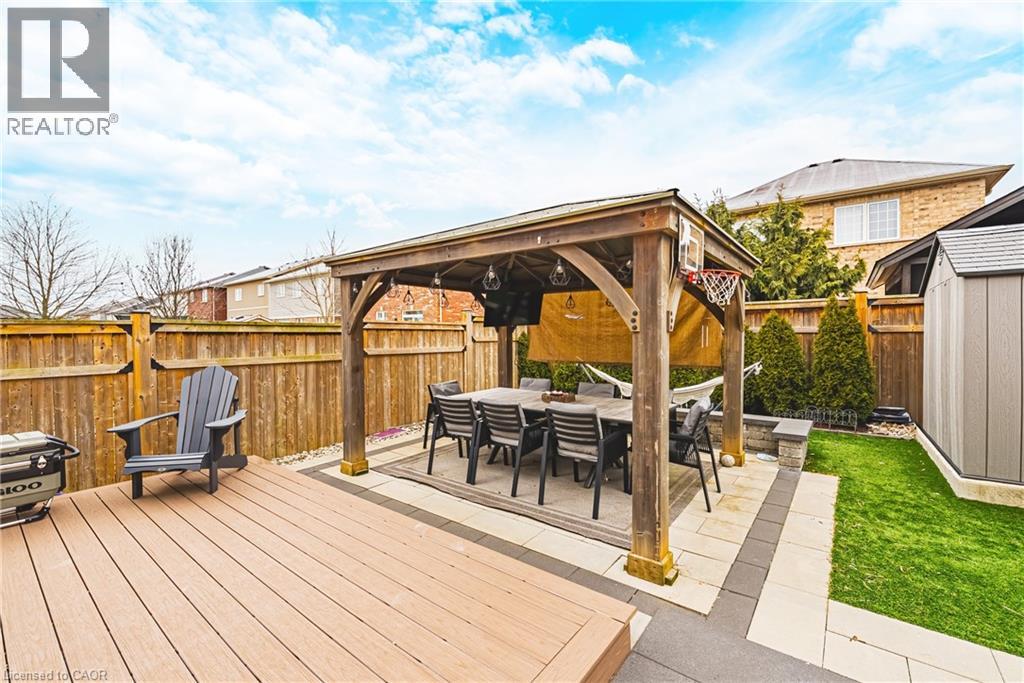 This lovely Binbrook home is fully move-in ready, with many thoughtful upgrades, including a fully finished basement. The main floor showcases tastefully updated flooring and staircase, modern pot lighting, and a chef-inspired kitchen with island and dining area overlooking the family room, 2 piece bathroom and garage access. As you head up to the second level, take note of the fabulous natural light with gorgeous oversized window and enjoy the second floor laundry room, 4 piece bath and 3 spacious bedrooms, including primary suite with walk in closet and ensuite with a spa-like soaker tub and separate shower. The fully finished basement offers versatile living space, while the exterior impresses with a stamped concrete driveway and walkway, leading to a meticulously landscaped backyard oasis with pergola and plenty of room for entertaining. Fantastic, family friendly neighbourhood. Close to schools and all that Binbrook has to offer. Room sizes approximate. (id:4555)