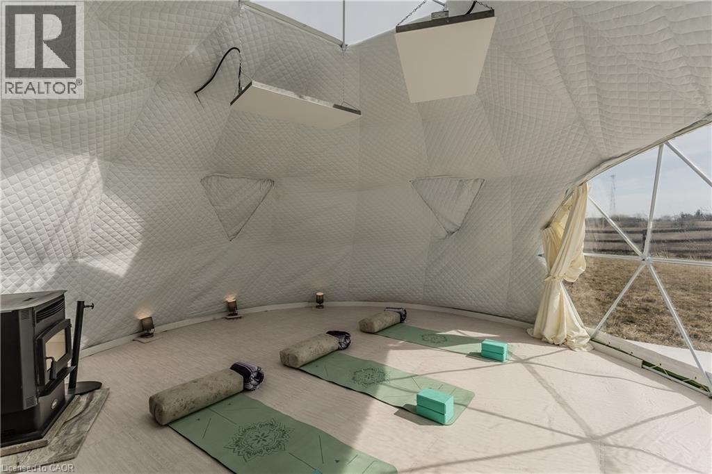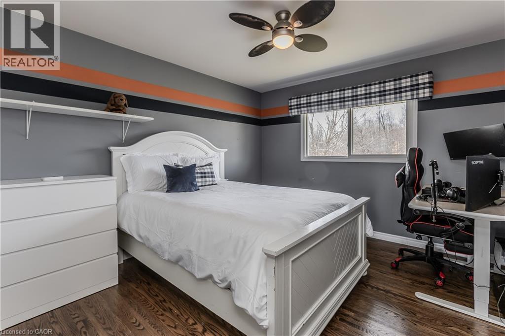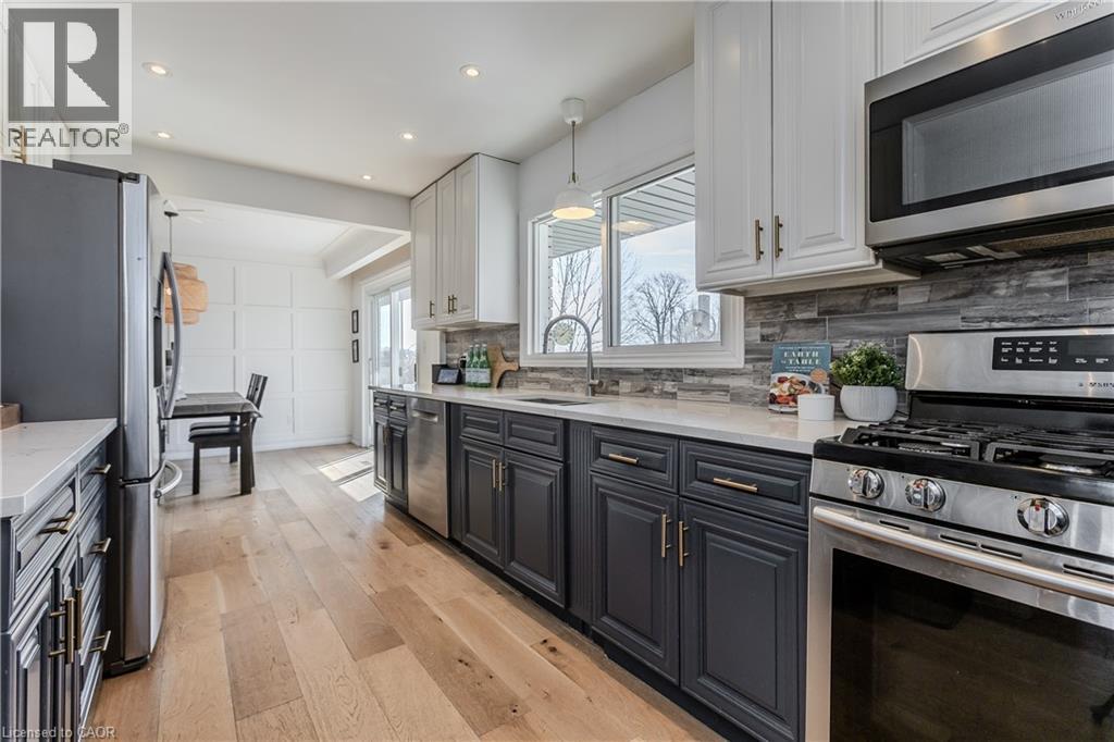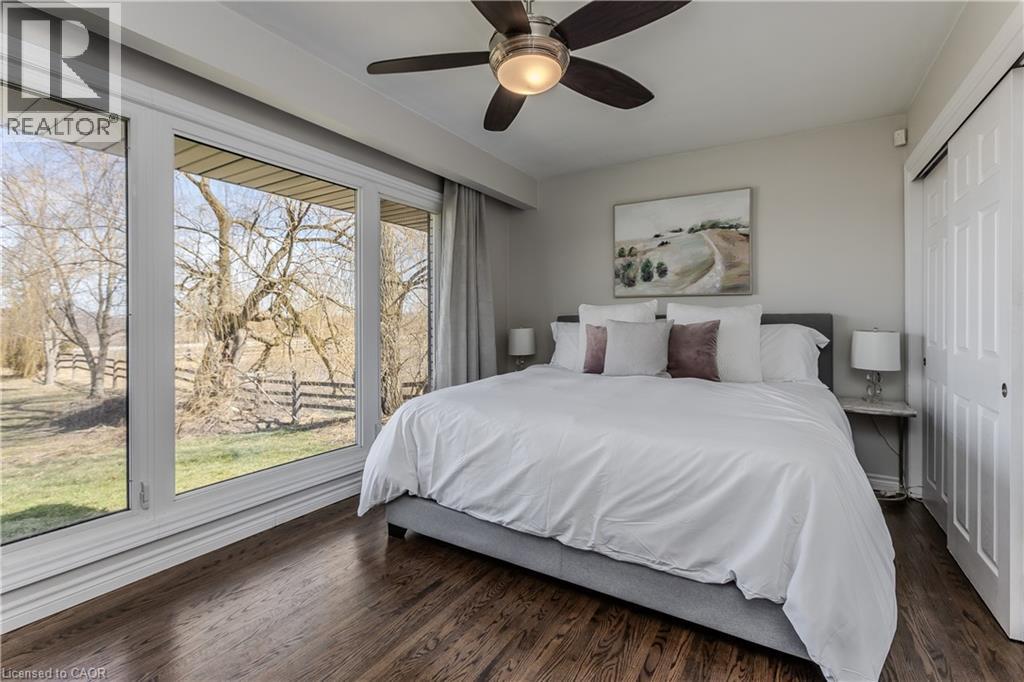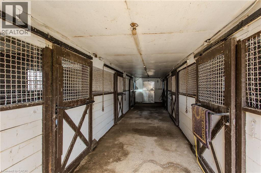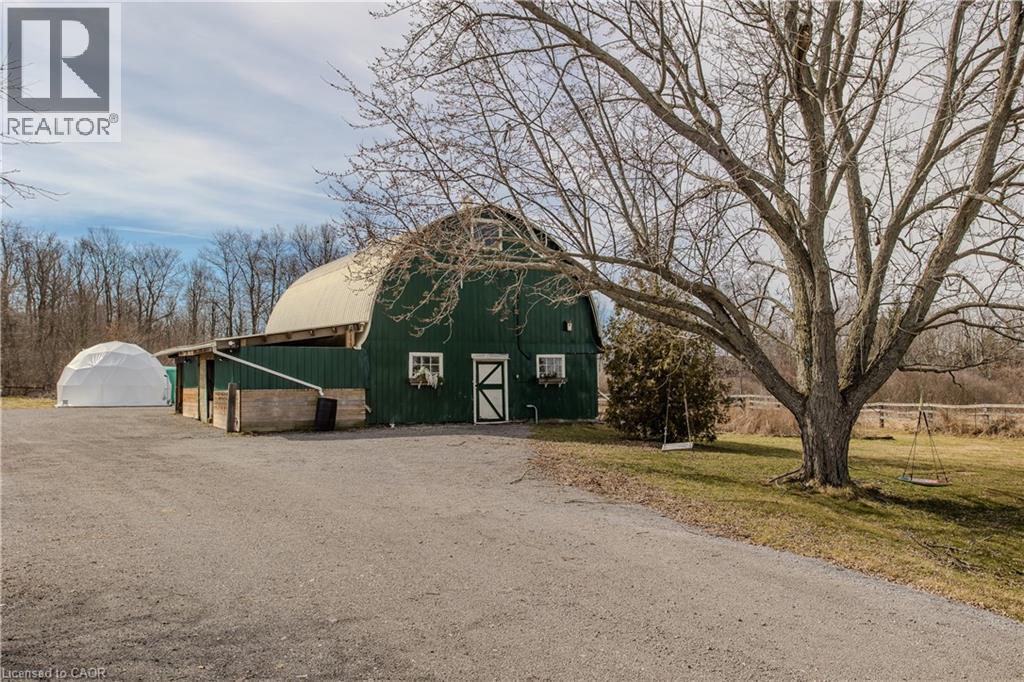 Experience peak rural hobby farm living on this breathtaking property designed for those who value space, nature, and lifestyle. Set on a picturesque lot just under 12 acres, with access to beautiful nature trails, this remodelled ranch-style bungalow offers the ideal balance of modern comfort and tranquility—ideal for horse or nature enthusiasts, all within a short drive to both downtown Binbrook and Hamilton. Arrive home to a newly expanded double-lane driveway with parking for 20 cars, framed by 8 blazing autumn maple trees. A creek flows through the front yard and connects to a peaceful pond, complete with upgraded LED lighting for magical winter evenings skating. Inside, the home has been thoughtfully updated with new engineered hardwood throughout the main level. The inviting living room features an oversized window with motorized blinds, fireplace, and custom built-in media wall. The luxurious kitchen showcases Cambria countertops, tile backsplash, custom cabinetry, new SS appliances, and a dining area accented by elegant wall paneling and walkout access to the backyard. The serene primary bedroom features wall-to-wall windows with stunning views, while 2 additional bedrooms and a 4pc bathroom with dual sink vanity complete the main floor. The finished lower level adds even more living space with new vinyl flooring, spacious rec room, and a family room featuring wood beams, stone feature wall, and fireplace. An additional bedroom and 3pc bathroom with oversized glass shower offer flexibility for guests or family. Outdoors, the property truly shines. Enjoy a 600sf Permacon paver patio, Douglas fir shade structures w/ UV sails, putting green, landscape lighting, perennial gardens, and expansive green space. Trails lead through a 2-acre forest, while the horse barn offers 6 stalls, hay mow, a 50-amp RV plug, and fenced paddocks & pastures ready for your horses. Don’t miss this true rural gem. (id:4555)