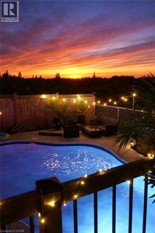 Welcome to 160 Festival Way - a rarely offered bungaloft in the highly sought-after Fairgrounds community. This exceptional home offers over 3,500 sf of finished living space and the perfect blend of comfort, style, and an unbeatable setting backing onto open farmland with no rear neighbours. The open-concept, carpet-free main level features a beautifully updated kitchen with stone countertops, ample cabinetry, and a walk-in pantry. The kitchen flows seamlessly into the dining and living areas, creating an ideal space for everyday living and entertaining. The family room is a true highlight with soaring ceilings, a gas fireplace, and expansive windows that fill the space with natural light while offering peaceful views of the farmland beyond. A versatile front room, currently used as a living room, can easily function as a formal dining room or home office and includes built-in cabinetry. The spacious primary bedroom retreat, complete with two closets and a well-appointed 4-piece ensuite offers the convenience of main-floor living without compromise. The main level also includes a laundry room and an additional powder room. Upstairs, you’ll find two generously sized bedrooms, including one with a walk-in closet. The 4-piece bathroom offers semi-ensuite access from the second bedroom, providing comfort and practicality. The fully finished basement adds incredible living space with lookout windows and high ceilings, featuring a media room, large rec room with bar, additional bedroom, and a 3-piece bathroom, perfect for entertaining or extended family. The private backyard retreat offers a heated saltwater inground pool and elevated deck hosting a natural gas bbq, all overlooking tranquil farmland. Enjoy the rare combination of privacy, space, and beautiful views - a truly special home in an exceptional location close to schools, parks, and major amenities. Don't miss out on the opportunity to make this unbelievable home yours! (id:4555)