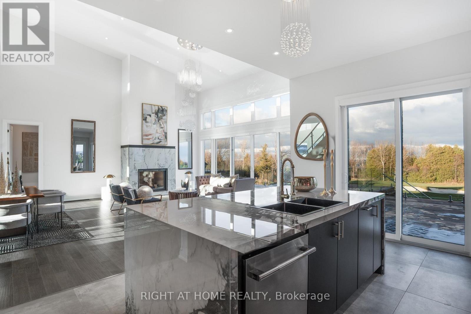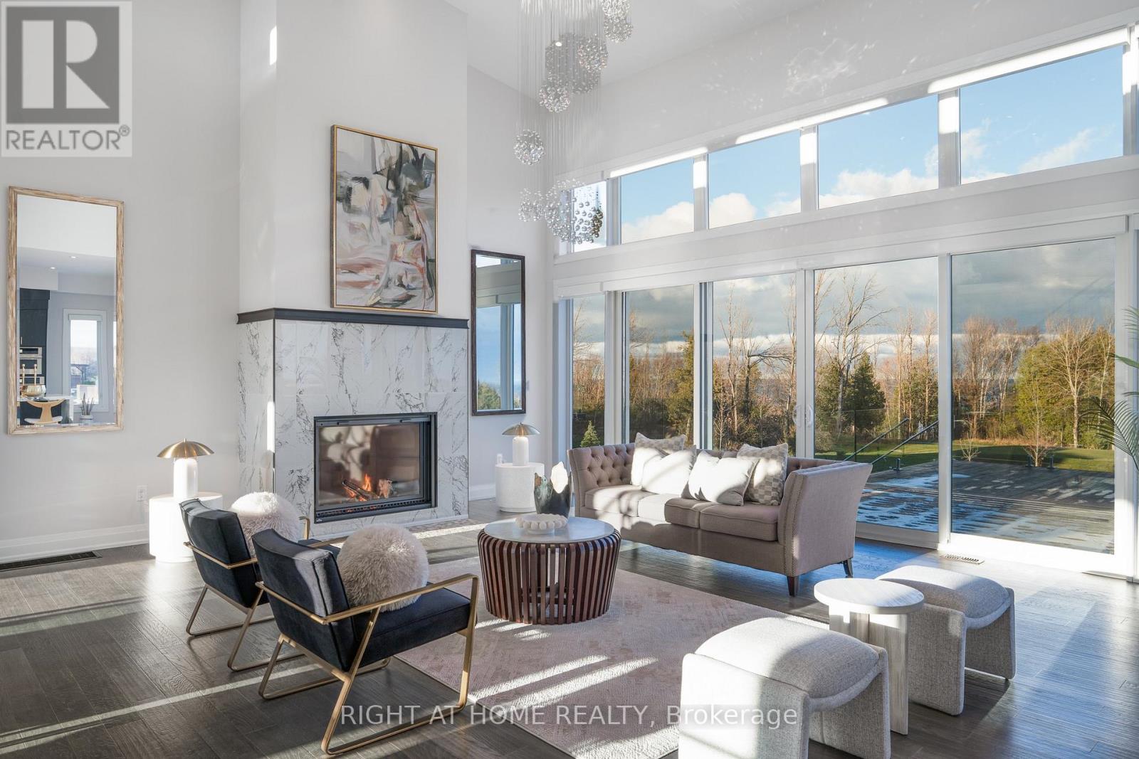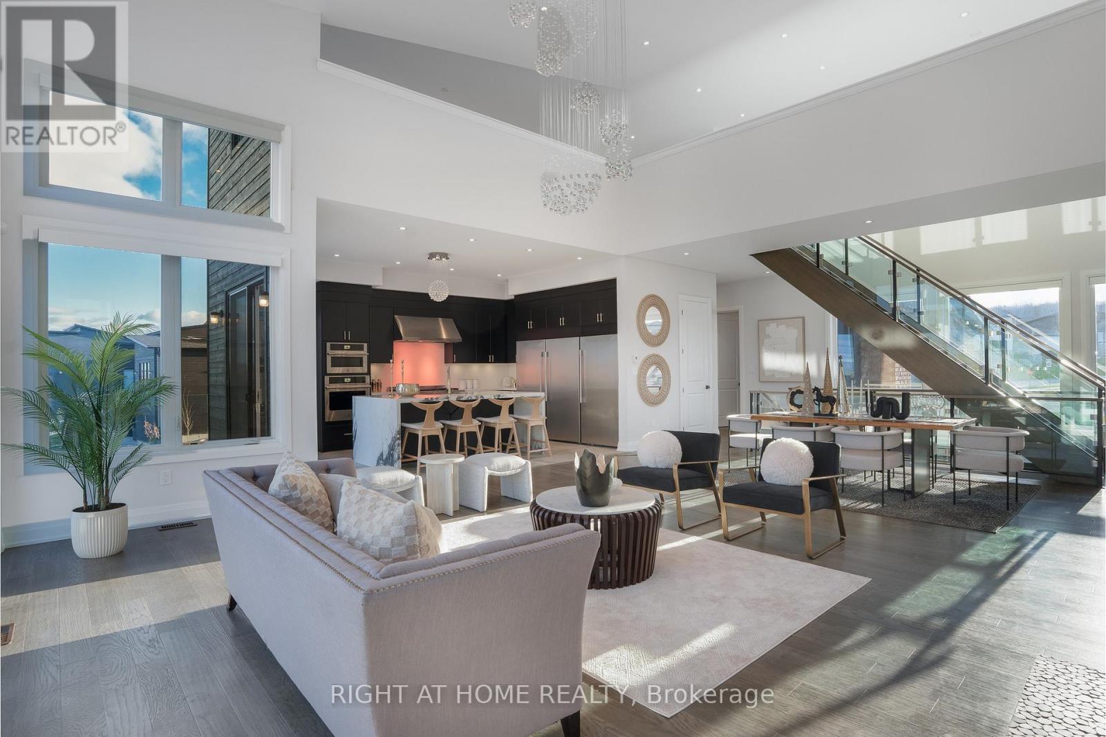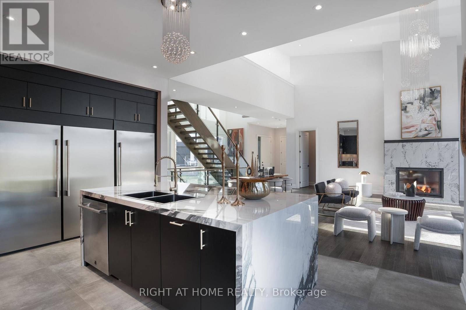 Welcome Home! An extraordinary residence perfectly positioned on one of Lora Bay's most prestigious and private lots. Overlooking the 13th hole, with sweeping views of Georgian Bay and the Niagara Escarpment, this architectural masterpiece offers an unparalleled lifestyle of elegance and serenity. Showcasing 5,337 sq. ft. of refined living space, this home impresses from the moment you step inside. The grand great room features 25 ft. cathedral ceilings, floor-to-ceiling windows, and seamless access to an expansive InvisiRail deck-a truly spectacular vantage point for sunrise, sunset, and year-round fairway vistas.The chef's kitchen is designed for both culinary excellence and entertaining, complete with a commercial-grade gas range, built-in convection microwave, stainless steel triple refrigerator/freezer, oversized island, and automated main-floor blinds for effortless comfort and privacy.The luxurious primary suite offers a private retreat with a gas fireplace, walkout to the deck, walk-in closet, and spa-inspired ensuite with a deep soaker tub and glass shower. The main level also includes an additional bedroom, a four-piece bath, and a convenient laundry room.The second-floor mezzanine overlooks the great room and leads to a bright office with bay views, two generous bedrooms, and a stylish wet bar with dishwasher-ideal for relaxation or hosting.The walkout lower level features a 1,700 sq. ft. approved apartment, perfect for extended family or guests, offering a roughed-in kitchen, two bedrooms, and direct access to the luxury hot tub and fire-pit lounge. An elegant paved driveway, curtain-style windows, and a double-car garage enhance the already striking curb appeal of this exceptional property. This is more than a home-it's a lifestyle of distinction in one of Georgian Bay's most desirable communities. (id:4555)