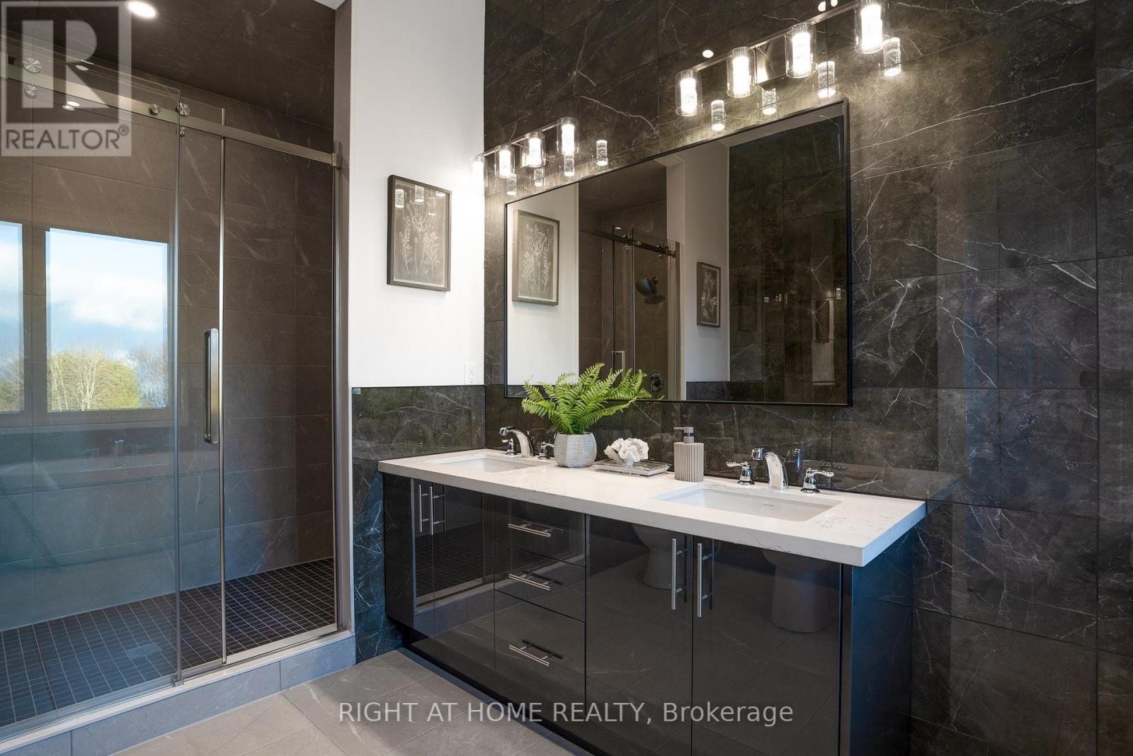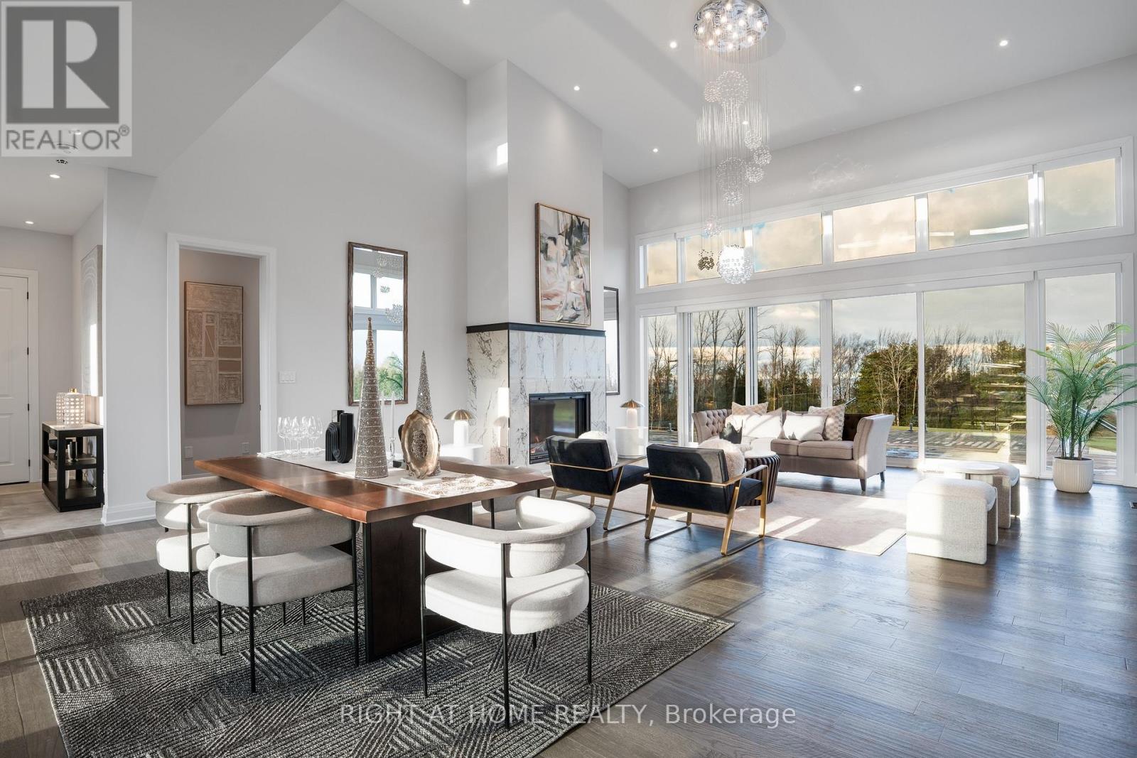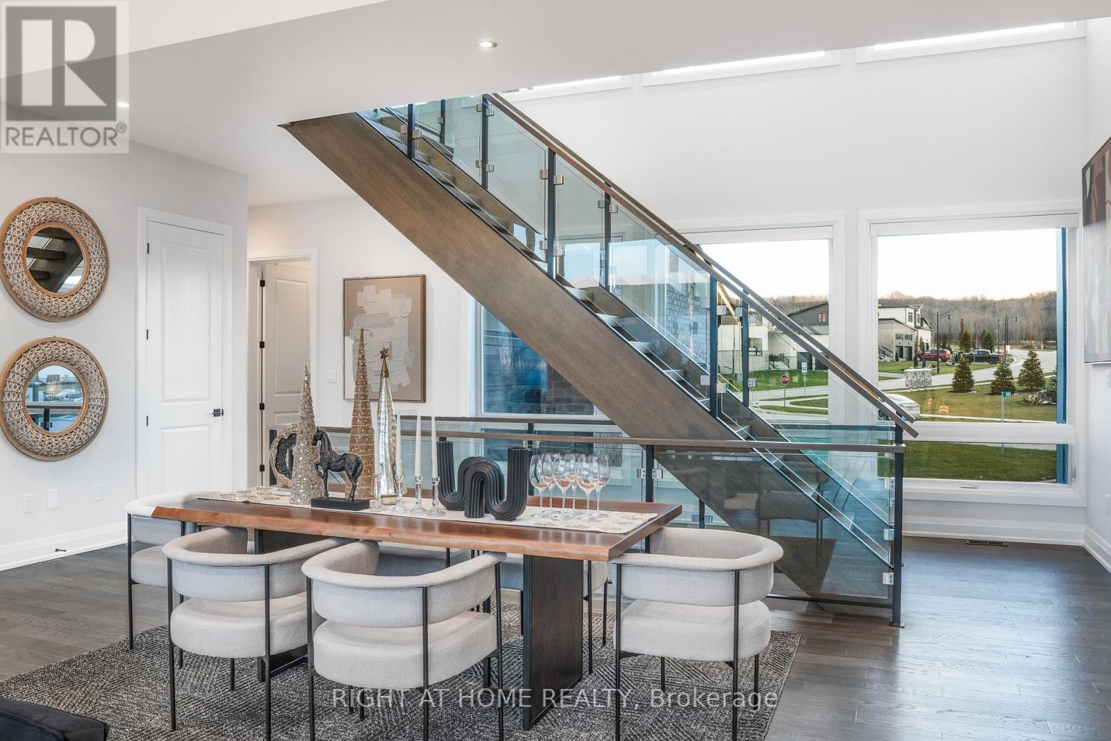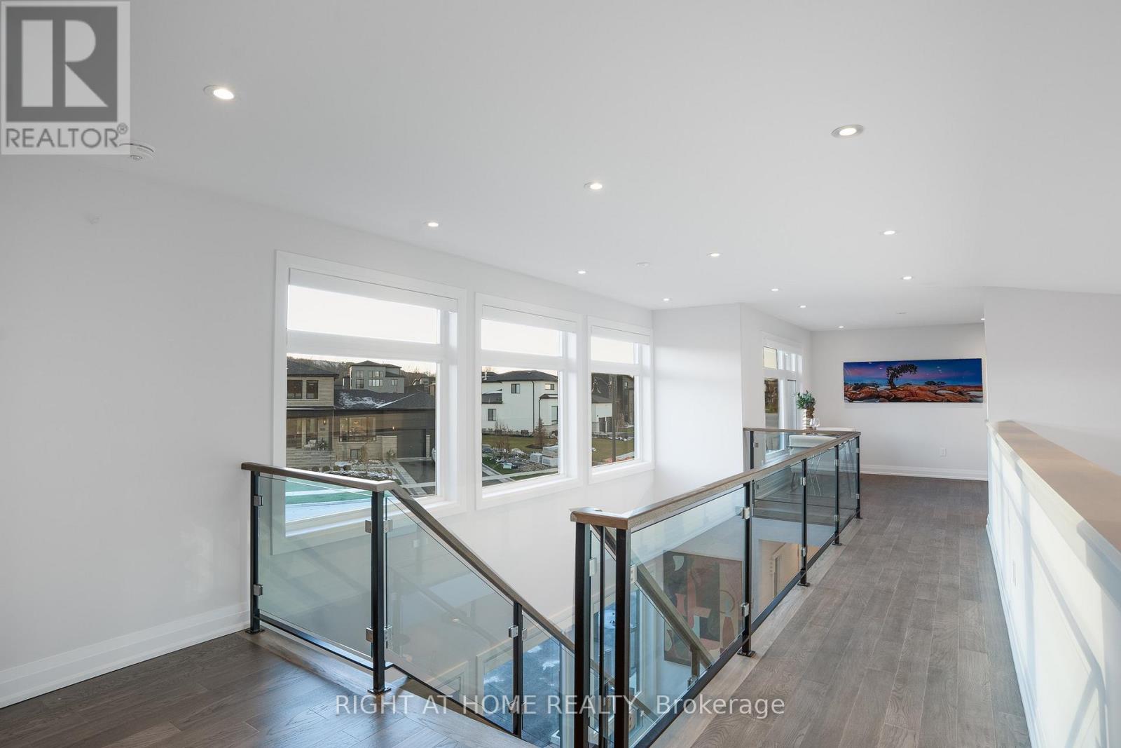 Welcome Home! An extraordinary residence perfectly positioned on one of Lora Bay's most prestigious and private lots. Overlooking the 13th hole, with sweeping views of Georgian Bay and the Niagara Escarpment, this architectural masterpiece offers an unparalleled lifestyle of elegance and serenity. Showcasing 5,337 sq. ft. of refined living space, this home impresses from the moment you step inside. The grand great room features 25 ft. cathedral ceilings, floor-to-ceiling windows, and seamless access to an expansive InvisiRail deck-a truly spectacular vantage point for sunrise, sunset, and year-round fairway vistas.The chef's kitchen is designed for both culinary excellence and entertaining, complete with a commercial-grade gas range, built-in convection microwave, stainless steel triple refrigerator/freezer, oversized island, and automated main-floor blinds for effortless comfort and privacy.The luxurious primary suite offers a private retreat with a gas fireplace, walkout to the deck, walk-in closet, and spa-inspired ensuite with a deep soaker tub and glass shower. The main level also includes an additional bedroom, a four-piece bath, and a convenient laundry room.The second-floor mezzanine overlooks the great room and leads to a bright office with bay views, two generous bedrooms, and a stylish wet bar with dishwasher-ideal for relaxation or hosting.The walkout lower level features a 1,700 sq. ft. approved apartment, perfect for extended family or guests, offering a roughed-in kitchen, two bedrooms, and direct access to the luxury hot tub and fire-pit lounge. An elegant paved driveway, curtain-style windows, and a double-car garage enhance the already striking curb appeal of this exceptional property. This is more than a home-it's a lifestyle of distinction in one of Georgian Bay's most desirable communities. (id:4555)