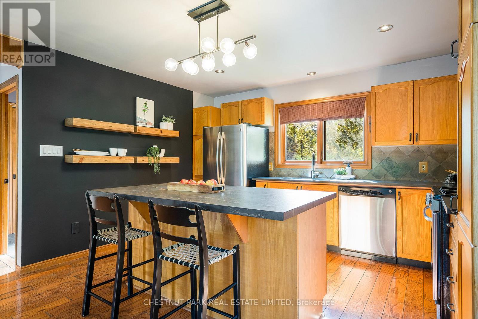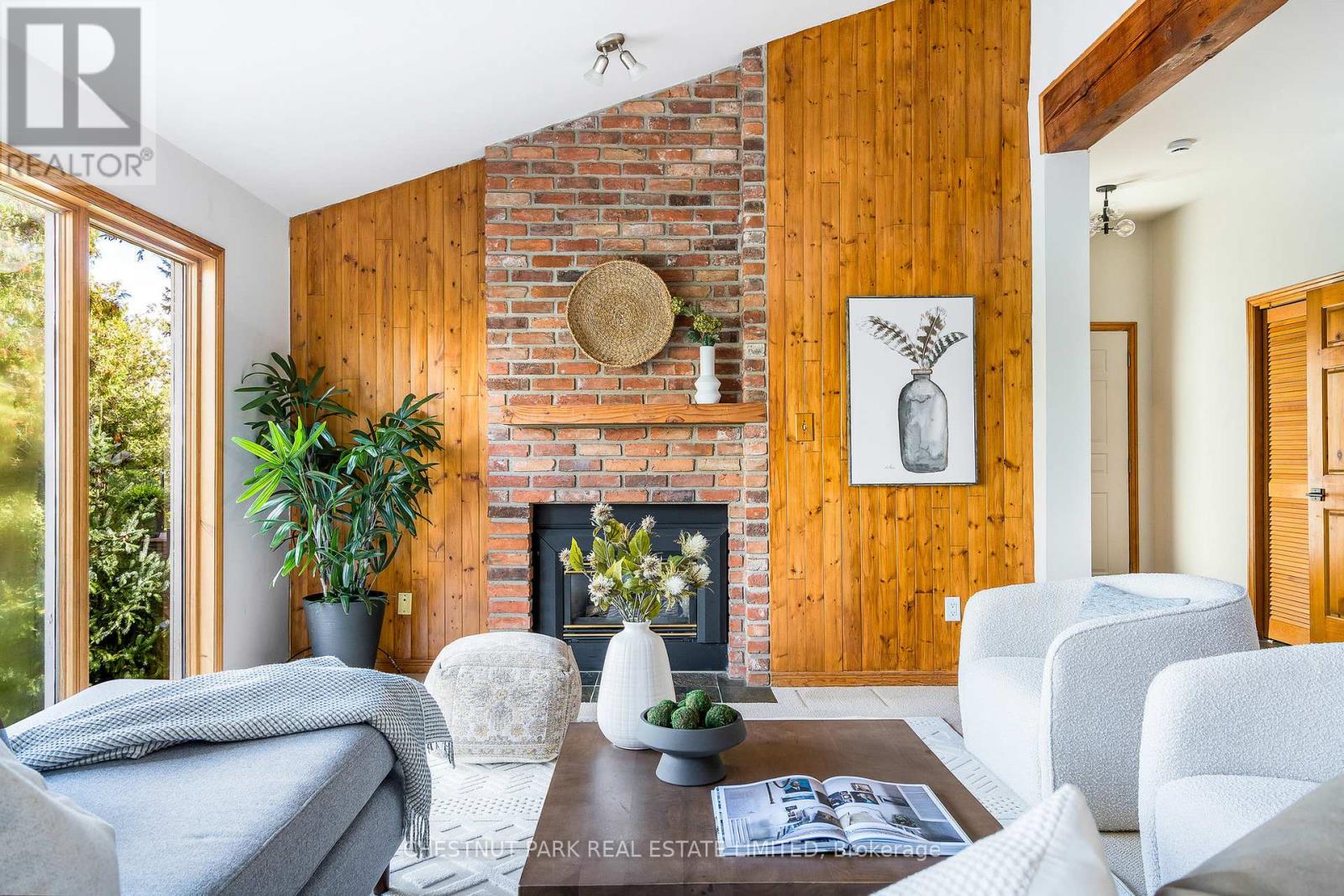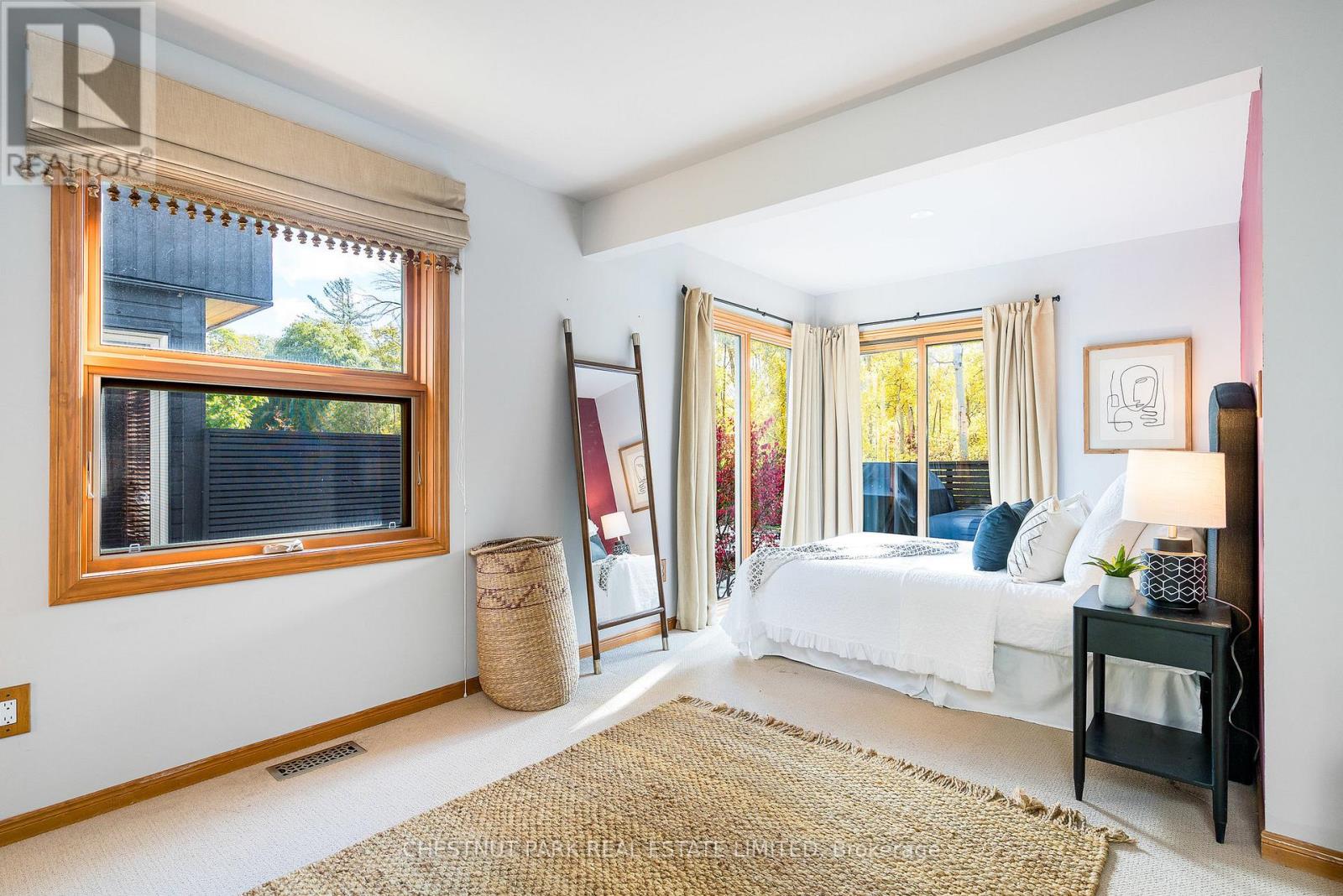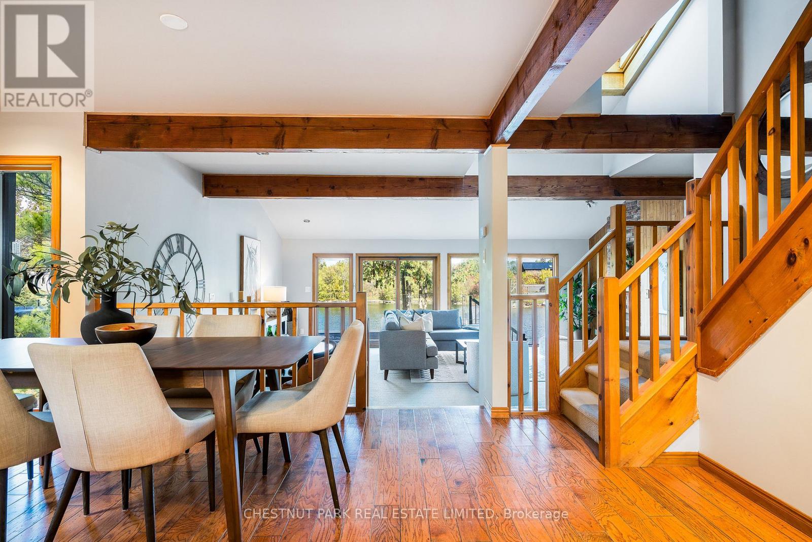 Set within the natural beauty of the Town of The Blue Mountains, and nestled between the ski hills and Georgian Bay, the private 12-home enclave of Hidden Lake is a sought-after haven for those who value peace, recreation, and elegant living. Residents enjoy an exclusive tennis and pickleball court, a sun-filled pool, a wide-open playing field, and a serene swimming pond, complete with a floating dock and diving tower - the perfect setting for four-season enjoyment. A private gate provides direct access to the Georgian Trail, perfect for biking, hiking, & x-country skiing, with a short stroll to the Bay. Chalet 9 offers almost 3000 sq ft of living space over 3 levels, 4 beds & 4 baths. Inside, the sunken great room showcases soaring ceilings, solid Fir beams, and views over the private 1-acre lake. A large kitchen with custom counters & breakfast bar opens seamlessly to the main living area - perfect for hosting family and friends. There is also a versatile main floor bedroom/ office tucked away, with a powder room across the hall. Two of three upstairs bedrooms feature sliding doors to private porches, offering peaceful views of Hidden Lake and peekaboo glimpses of Georgian Bay. The bright lower level offers a rec room, wet bar, media room, and bunk room. Outside, enjoy beautiful gardens, a front deck with a gas BBQ, and a back deck with pond views and a retractable awning. Homeowners share costs for grounds and amenities as a common elements condo. Close to Thornbury's renowned cideries, restaurants, bakeries, & shops, Scandinave Spa, & Blue Mountain resort - this is an exceptional location and a rare opportunity. This property is attractively priced for immediate sale - come play this winter! (id:4555)