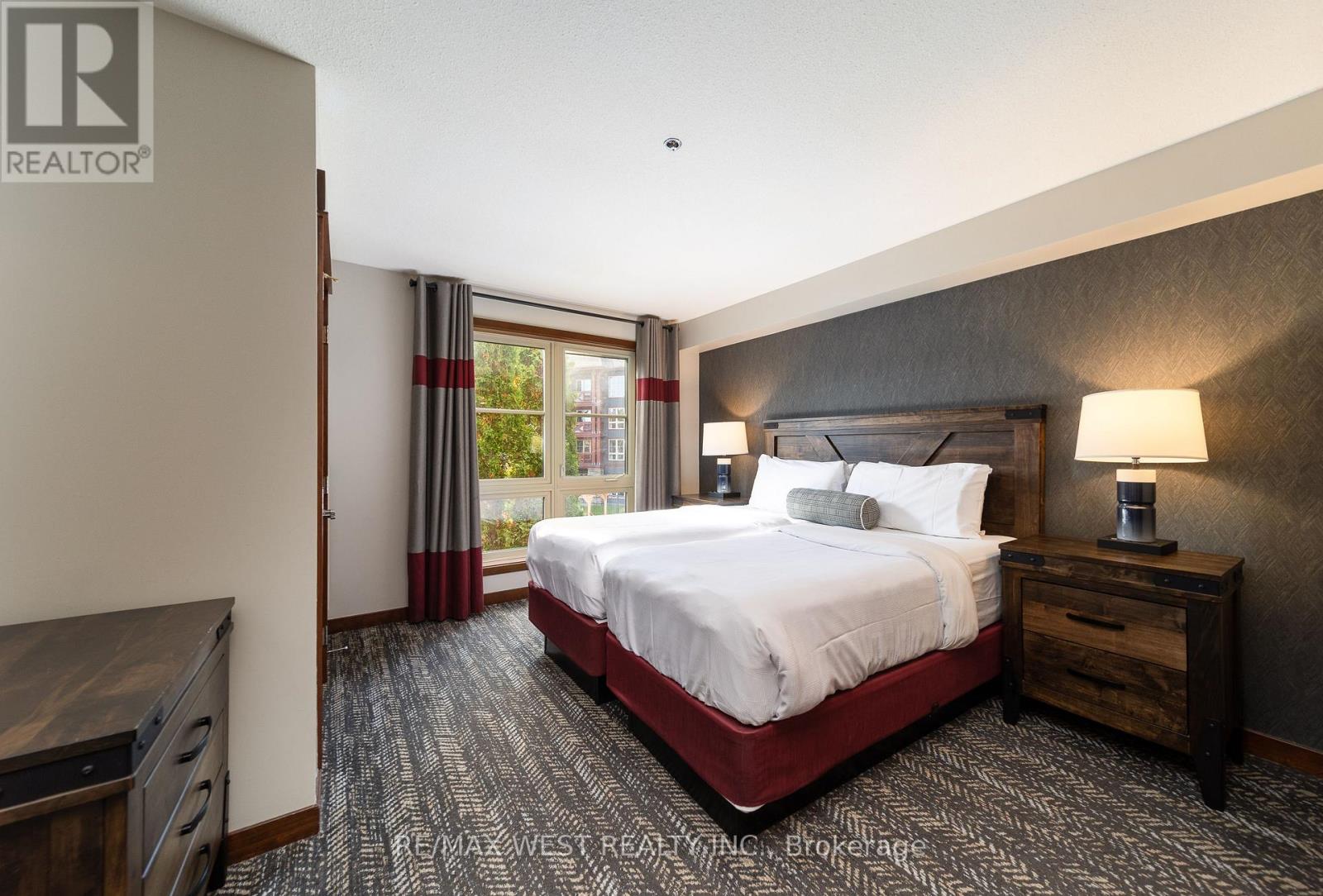 CORNER SUITE SLOPE-SIDE! Rarely offered corner suite right at the base of the Silver Bullet Chair Lift, this fully furnished 2-bedroom, 2-bathroom in the popular low-rise Weider Lodge offers over 1,000 sq. ft. of bright, open-concept living with spectacular views of the ski hill, pool, and Village. The oversized deck is a true highlight, offering beautiful views of the Weider Lodge pool and Village pond, with partial tree coverage that provides natural privacy while still providing a resort atmosphere. The spacious layout features a full kitchen, two generous bedrooms, and two full bathrooms, making it perfect for family getaways & generating income. The suite participates in the Blue Mountain Village Rental Program, generating strong, consistent returns (grossing over $88,000 annually in 2025) while still allowing generous owner use (10 days per month) .Enjoy full access to resort-style amenities, including an outdoor seasonal pool, year-round hot tub, fitness centre, sauna, owner ski locker, underground parking, and 24-hour front desk service. Condo fees include all utilities. HST may be applicable (can be deferred with an HST number). A 2% + HST Blue Mountain Village Association entry fee applies on closing, with an annual BMVA fee of $1.08 + HST per sq. ft. (id:4555)