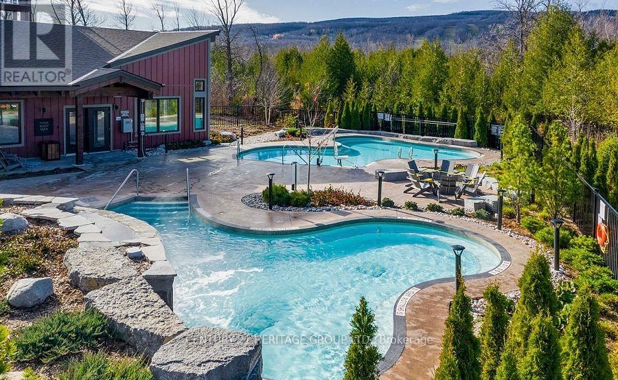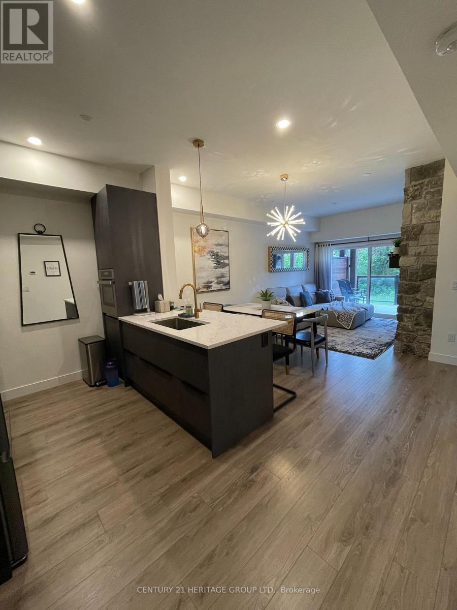 Team Tiger presents Mountain House at Blue Mountain | Azure Building. Experience refined four-season living in this exceptional ground-floor 2-bedroom, 2-bathroom residence, ideally positioned within the highly coveted Azure building at Mountain House. Just steps from Blue Mountain Village and the Scandinave Spa, this home offers the perfect balance of resort convenience and private retreat. The thoughtfully designed open-concept kitchen features integrated appliances, quartz countertops, and a spacious breakfast bar, seamlessly connecting to the living area-ideal for entertaining or relaxed après-ski evenings. Expansive sliding glass doors lead to a covered private patio with a dedicated BBQ gas connection, creating an effortless indoor-outdoor lifestyle. Enjoy picturesque ski hill views during the winter months and the tranquility of mature tree cover in summer, with frequent wildlife sightings enhancing the natural setting. Both bedrooms are generously sized, while the upgraded bathrooms deliver a clean, modern, spa-inspired finish. A standout feature is the walk-in laundry closet offering additional gear storage, complemented by a separate in-suite storage room-perfect for skis, bikes, and outdoor equipment. Residents enjoy exclusive access to the Nordic-inspired Zephyr Springs, featuring outdoor pool, Hot Tub Pool sauna, yoga studio, and fully equipped fitness centre. Surrounded by hiking trails, pristine beaches, and renowned golf courses, this is a premier destination for year-round recreation and lifestyle enjoyment. An outstanding opportunity to own in one of Blue Mountain's most prestigious and lifestyle-driven communities. (id:4555)