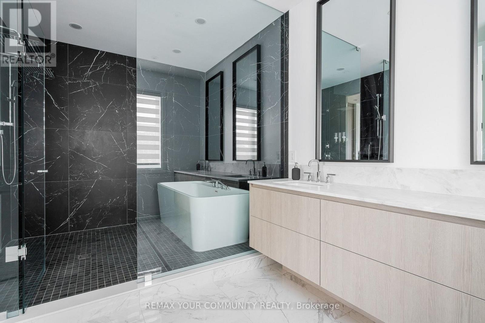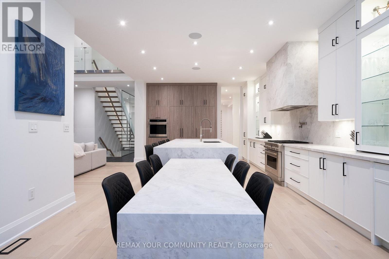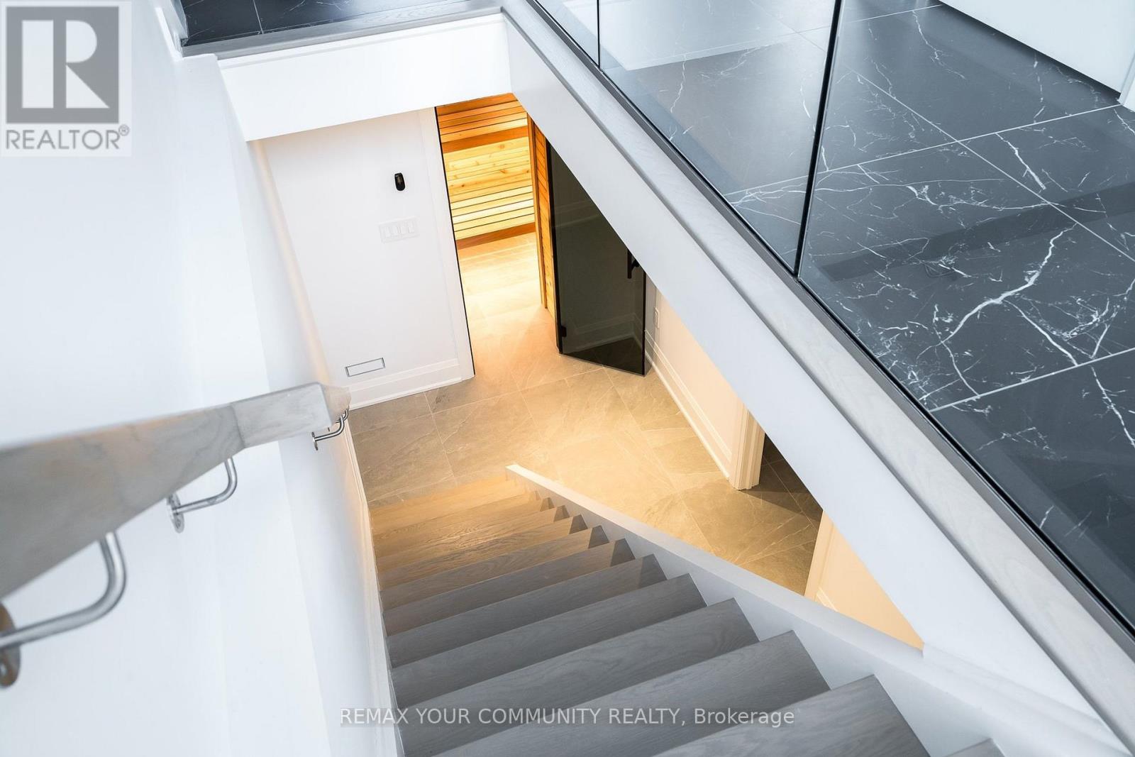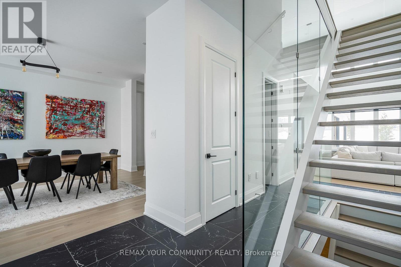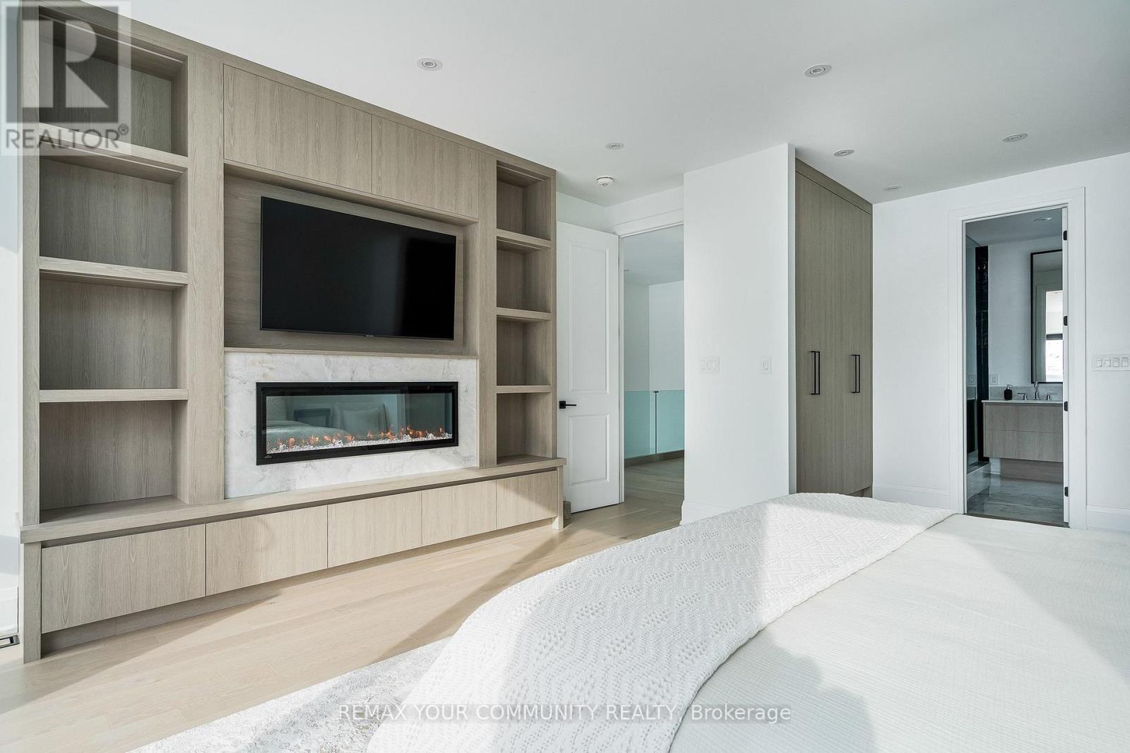 VISIT WWW.103STILLWATER.COM to view the full virtual walk-through and complete gallery. Positioned on a premium lot with unobstructed Blue Mountain views, this FULLY FURNISHED custom-built residence offers 5,009 sq ft of refined living space across three finished levels. A European-style 8-foot entry door, enhanced exterior lighting, and a purpose-built garage with high-lift tracks and EV rough-ins set the stage for the craftsmanship throughout. The main level features 10-foot ceilings, wide-plank hardwood, and a dramatic 20-foot great room with expansive windows framing panoramic mountain views. A linear Napoleon gas fireplace, custom built-ins, and integrated smart home features enhance the space. The chef's kitchen is anchored by a 17-foot stone island, full-height cabinetry, premium Monogram and Thermador appliances, and seamless access to a Trex wrap-around deck designed to capture the view. A vaulted four-season extension with heated porcelain floors, wood-burning fireplace, and two 9' x 9' glass doors creates exceptional indoor-outdoor living. Upstairs, the primary suite offers a private terrace and a spa-inspired ensuite, complemented by three additional bedrooms with walk-in closets and upgraded ensuites. The fully finished lower level includes radiant heated floors, wet bar, theatre, gym, smart sauna, and two additional bedrooms. The residence features three full laundry rooms-conveniently located on each level-delivering exceptional functionality and seamless comfort for year-round living and effortless entertaining in Blue Mountains. (id:4555)