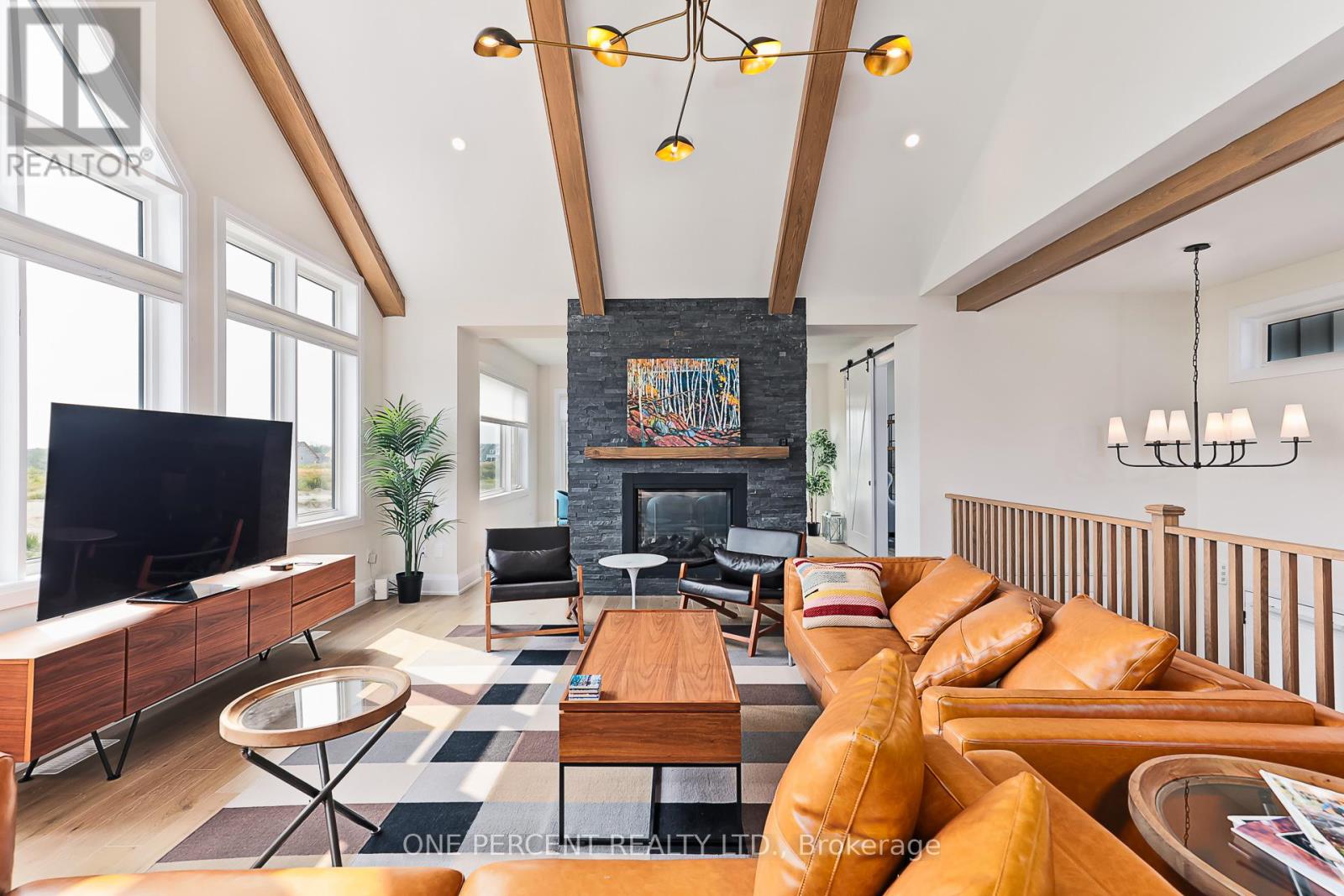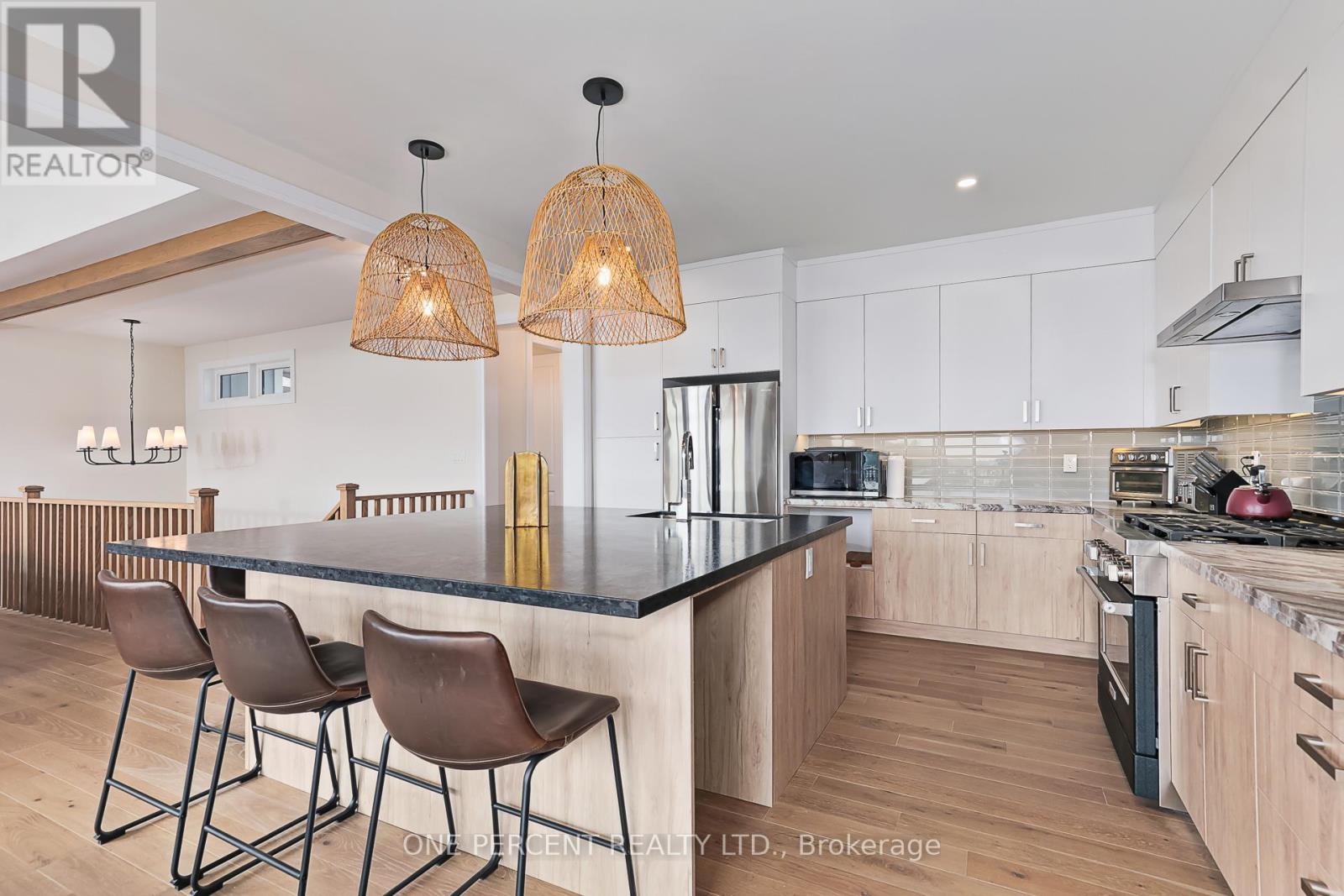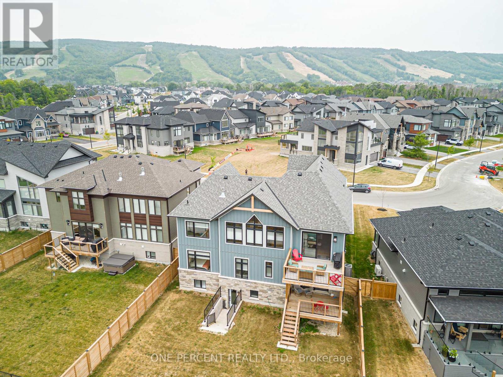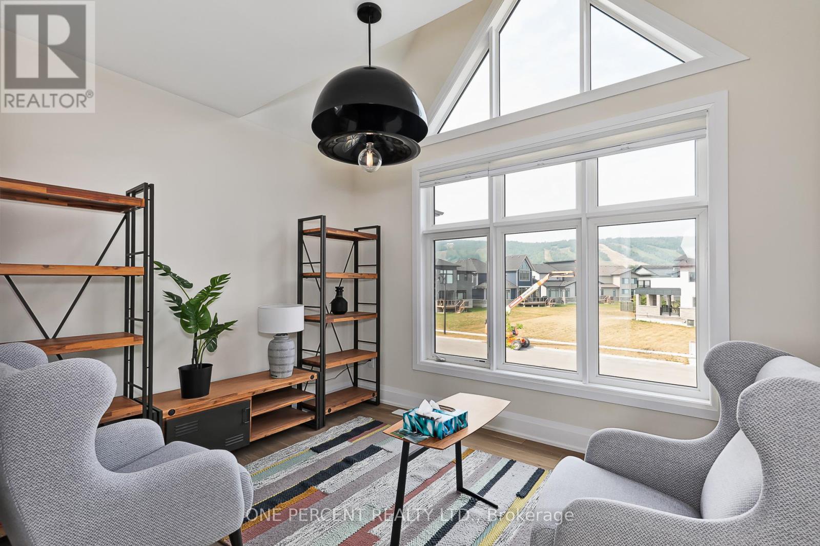 Welcome to 114 Cattail Crescent, a 4,558 sqft mountain house, boasting elegant architectural upgrades, unique stone, fibre cement, and wood grain siding, along with ornamental wood details. A 50-foot wide, side-facing garage creates an impressive street presence, with plenty of parking.This layout features a primary living space (1,883 sqft) on the second floor, additional primary living space on the first floor (1,548 sqft), plus a fully finished walkout basement (1,127sqft). The open second floor, with high ceilings and windows, offers impressive views and features a large deck, custom kitchen, servery, eating area, faux beam covered lodge room, formal dining room, and den, divided by a slate-clad floor-to-ceiling gas fireplace. The expansive owners suite includes cathedral ceilings, a private loggia, spacious walk-in closet, and a beautifully decorated ensuite with standalone tub and a large glass shower enclosure. The main level entrance leads to the main floor with a large bar/kitchen, a family room with a deck, backyard access and beautifully decorated rooms with custom light fixtures. There are also three good-sized bedrooms and two full bathrooms on this level. A separate side door and a garage entrance, leads to a spacious storage room and laundry room. The self-contained basement with glass door walkout, offers a large open space, wet bar, two bedrooms with egress windows, and a full bathroom.The house is beautifully located within a short walking distance to Blue Mountain Village and a complimentary shuttle to many amenities, including the private Blue Mountain Beach. This professionally decorated house with great street presence and exceptional floor plan includes all light fixtures and furniture. (id:4555)