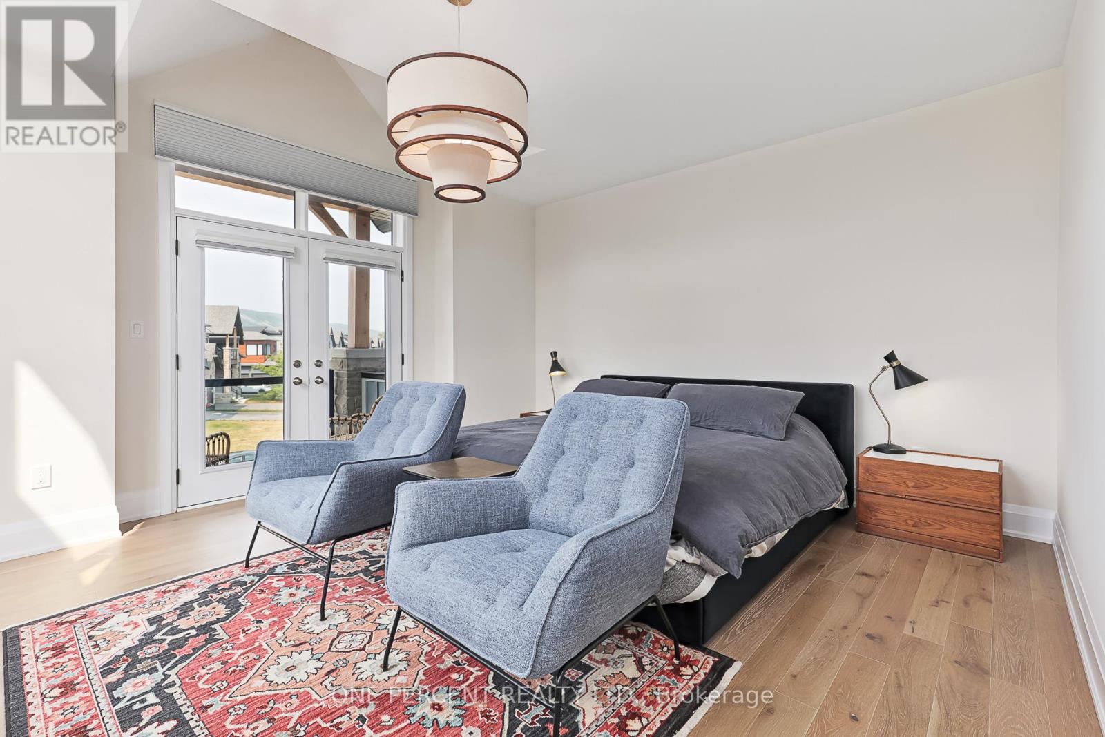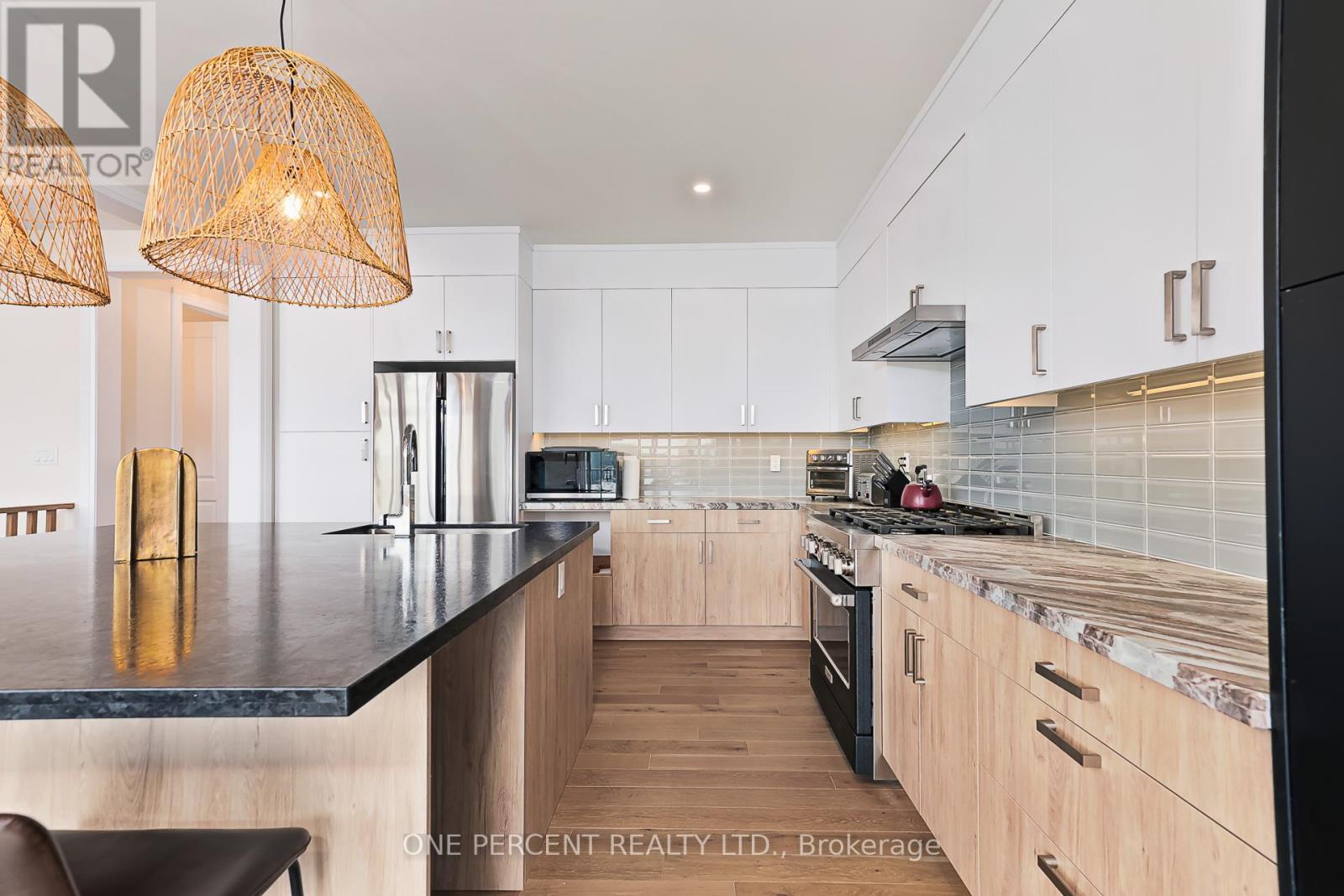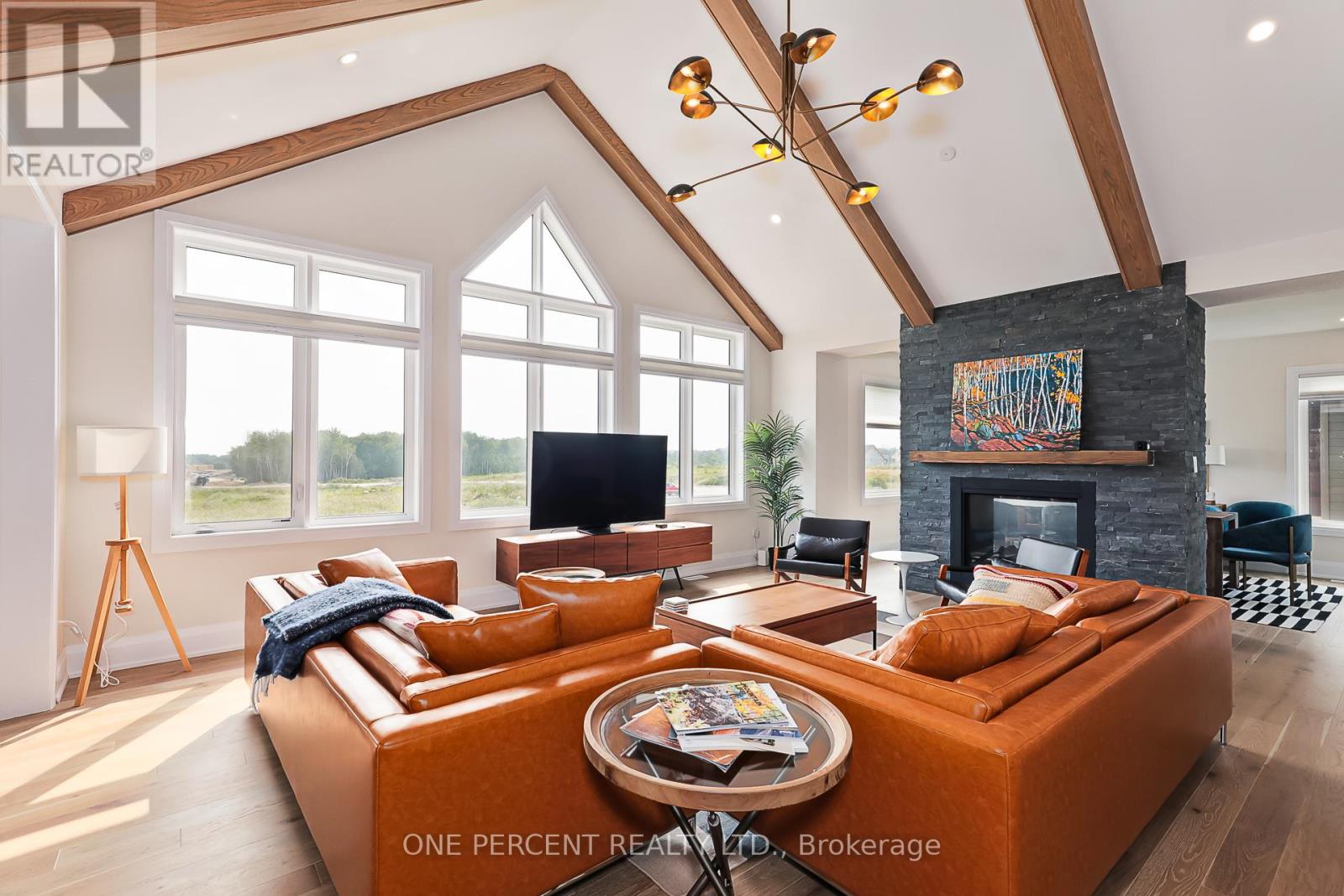 Welcome to 114 Cattail Crescent, a 4,558 sqft mountain house, boasting elegant architectural upgrades, unique stone, fibre cement, and wood grain siding, along with ornamental wood details. A 50-foot wide, side-facing garage creates an impressive street presence, with plenty of parking.This layout features a primary living space (1,883 sqft) on the second floor, additional primary living space on the first floor (1,548 sqft), plus a fully finished walkout basement (1,127sqft). The open second floor, with high ceilings and windows, offers impressive views and features a large deck, custom kitchen, servery, eating area, faux beam covered lodge room, formal dining room, and den, divided by a slate-clad floor-to-ceiling gas fireplace. The expansive owners suite includes cathedral ceilings, a private loggia, spacious walk-in closet, and a beautifully decorated ensuite with standalone tub and a large glass shower enclosure. The main level entrance leads to the main floor with a large bar/kitchen, a family room with a deck, backyard access and beautifully decorated rooms with custom light fixtures. There are also three good-sized bedrooms and two full bathrooms on this level. A separate side door and a garage entrance, leads to a spacious storage room and laundry room. The self-contained basement with glass door walkout, offers a large open space, wet bar, two bedrooms with egress windows, and a full bathroom.The house is beautifully located within a short walking distance to Blue Mountain Village and a complimentary shuttle to many amenities, including the private Blue Mountain Beach. This professionally decorated house with great street presence and exceptional floor plan includes all light fixtures and furniture. (id:4555)