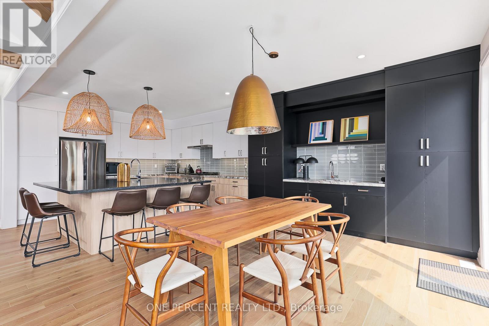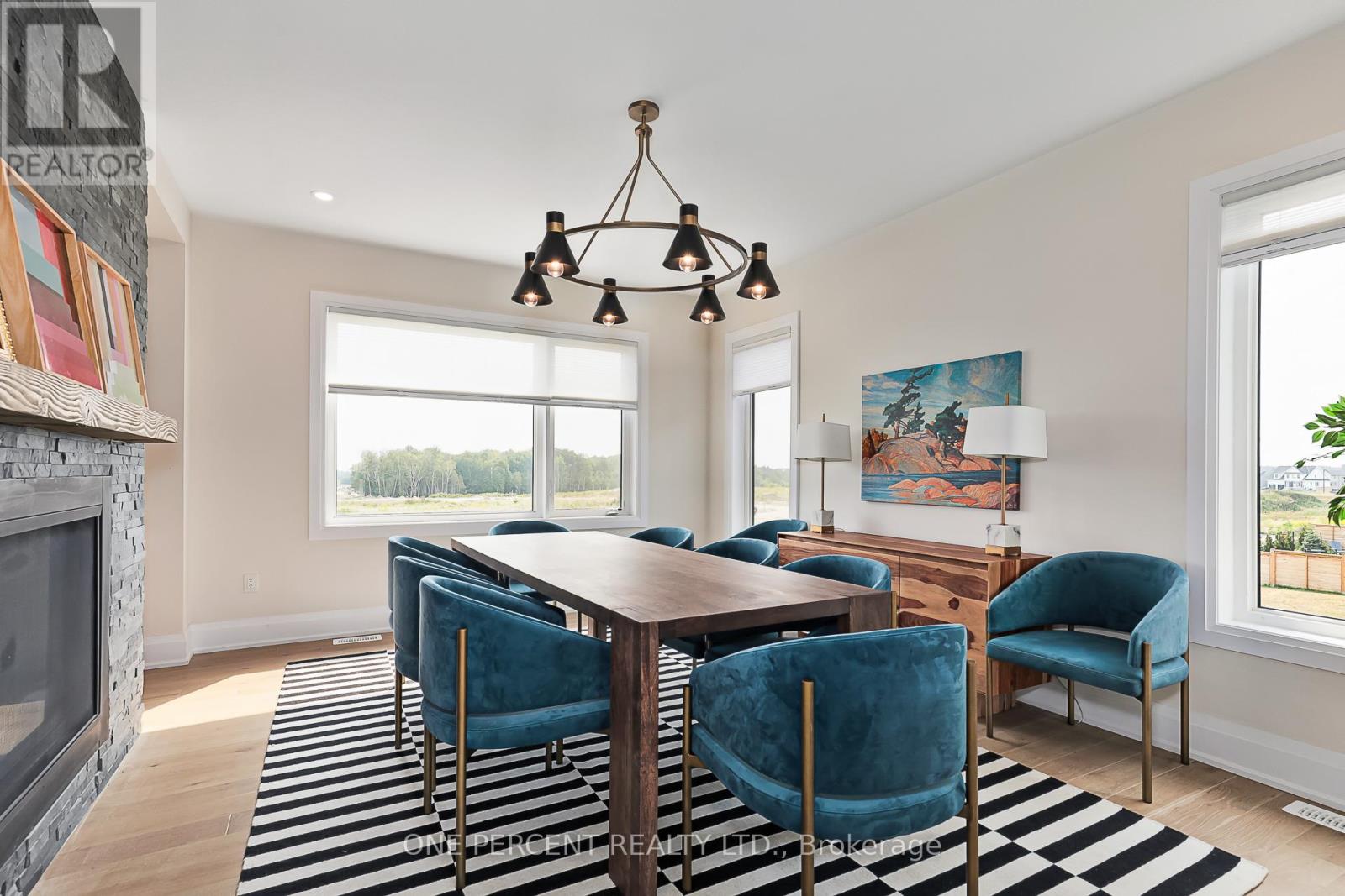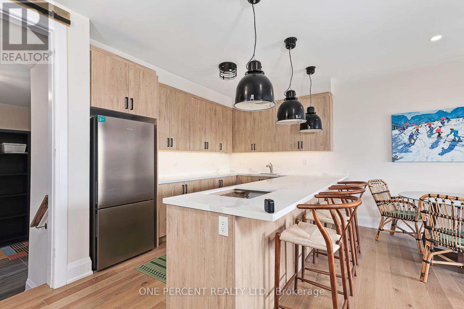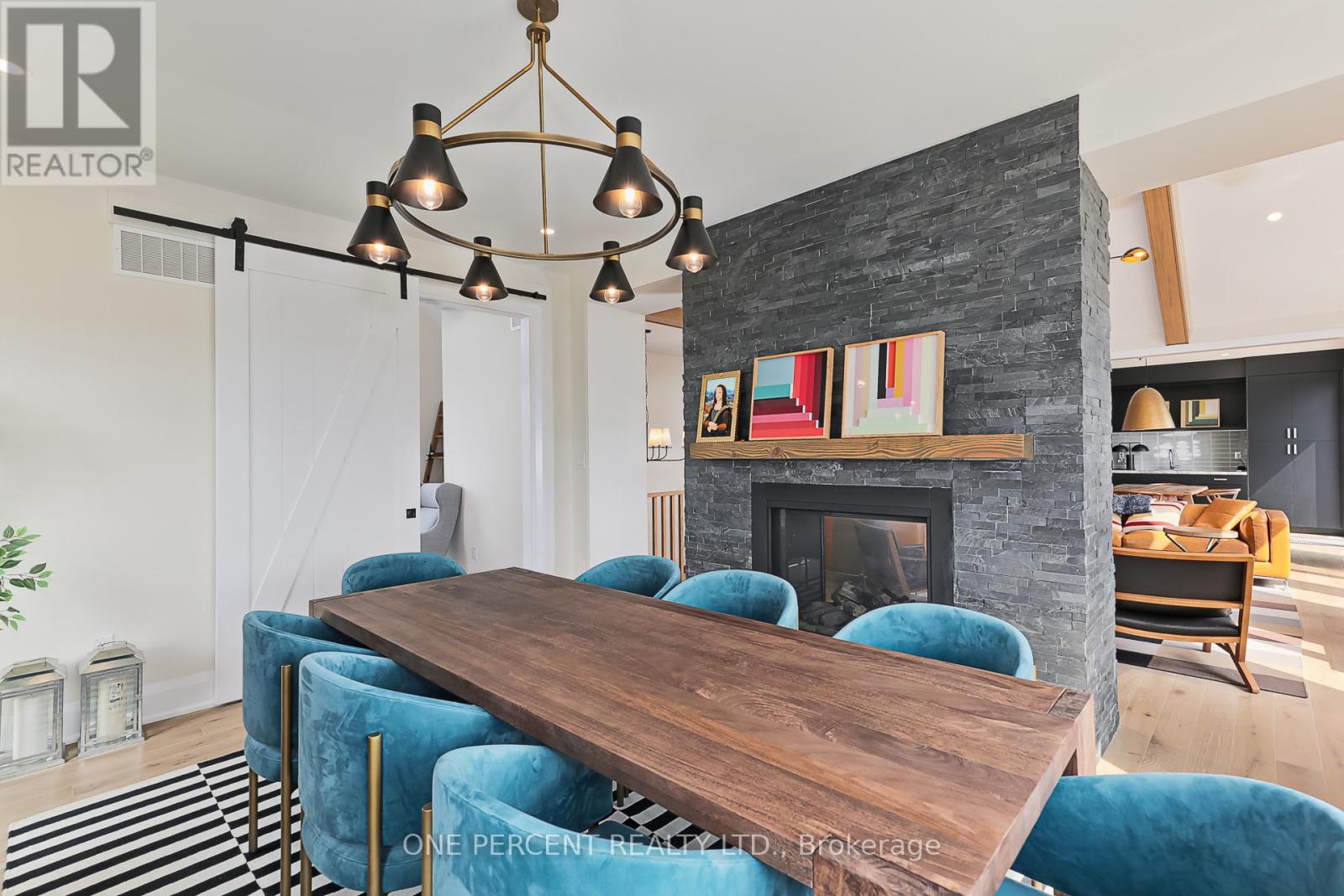 Welcome to 114 Cattail Crescent, a 4,558 sqft mountain house, boasting elegant architectural upgrades, unique stone, fibre cement, and wood grain siding, along with ornamental wood details. A 50-foot wide, side-facing garage creates an impressive street presence, with plenty of parking.This layout features a primary living space (1,883 sqft) on the second floor, additional primary living space on the first floor (1,548 sqft), plus a fully finished walkout basement (1,127sqft). The open second floor, with high ceilings and windows, offers impressive views and features a large deck, custom kitchen, servery, eating area, faux beam covered lodge room, formal dining room, and den, divided by a slate-clad floor-to-ceiling gas fireplace. The expansive owners suite includes cathedral ceilings, a private loggia, spacious walk-in closet, and a beautifully decorated ensuite with standalone tub and a large glass shower enclosure. The main level entrance leads to the main floor with a large bar/kitchen, a family room with a deck, backyard access and beautifully decorated rooms with custom light fixtures. There are also three good-sized bedrooms and two full bathrooms on this level. A separate side door and a garage entrance, leads to a spacious storage room and laundry room. The self-contained basement with glass door walkout, offers a large open space, wet bar, two bedrooms with egress windows, and a full bathroom.The house is beautifully located within a short walking distance to Blue Mountain Village and a complimentary shuttle to many amenities, including the private Blue Mountain Beach. This professionally decorated house with great street presence and exceptional floor plan includes all light fixtures and furniture. (id:4555)