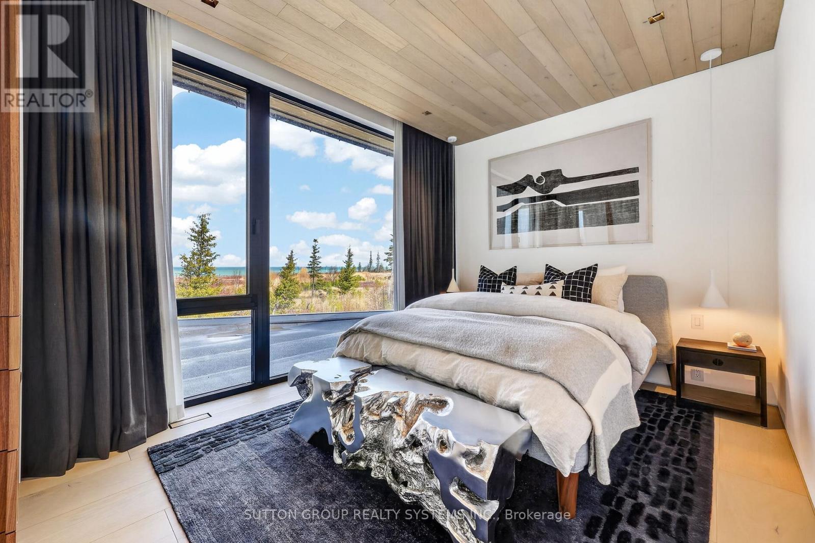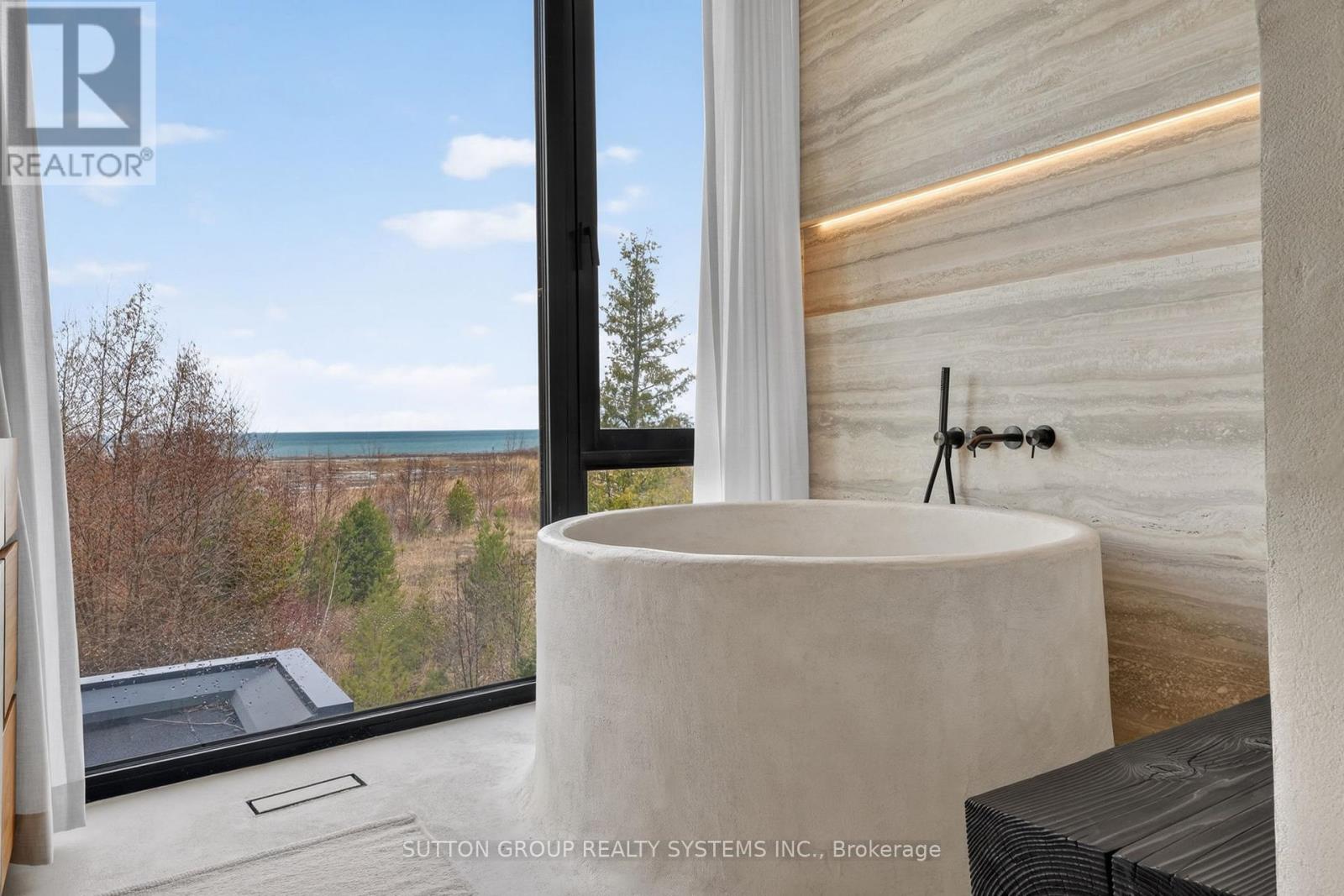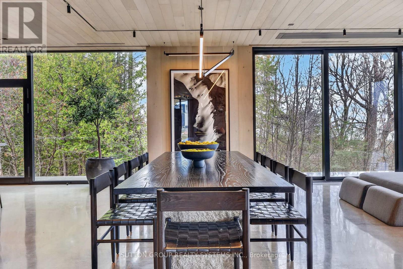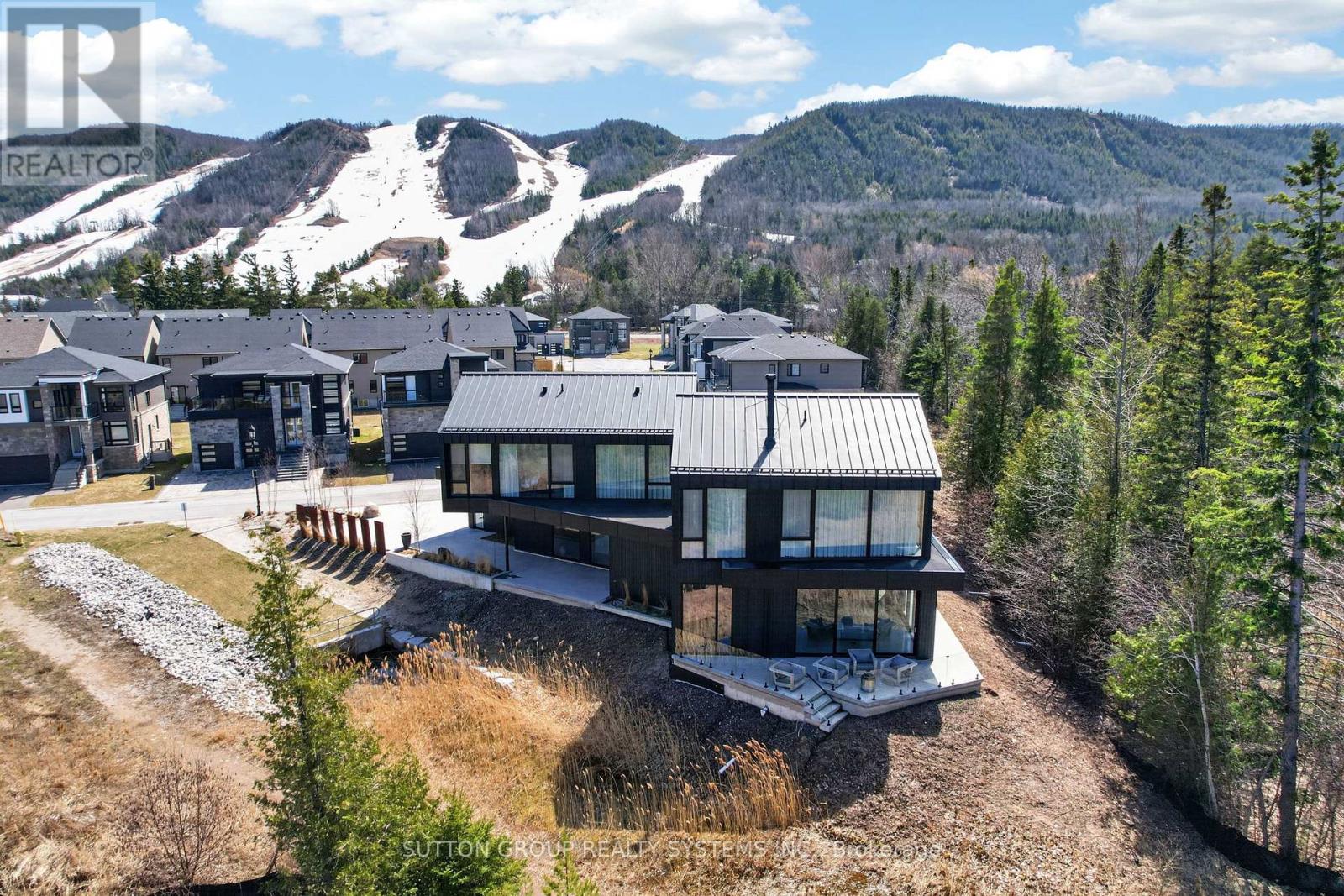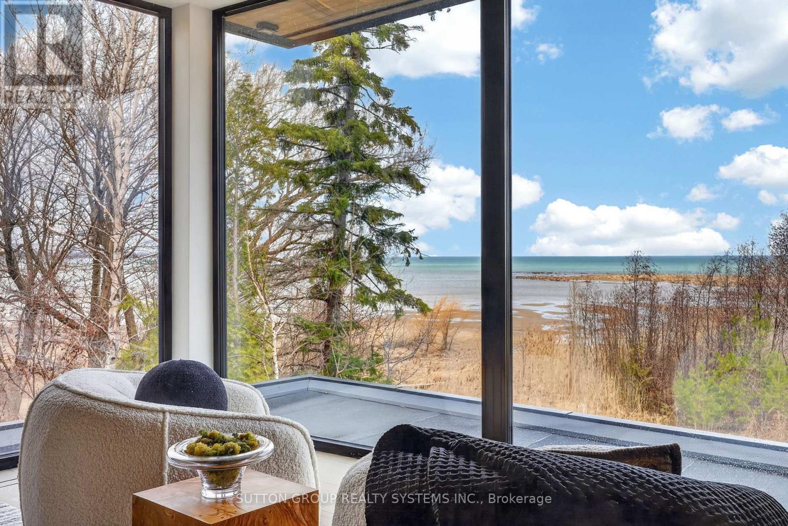 Exceptional newly built, custom-crafted 2-storey residence, ideally positioned between the shores of Georgian Bay and the ski slopes of Georgian Peaks. Designed by Foreshew Design Associates this 4-bedroom, 3.5-bath home showcases a seamless blend of modern architecture, premium materials and advanced technology. Exterior features include striking black thermal pine siding, durable metal roof & energy-efficient Drutex triple-pane windows & doors. Fully integrated Lutron&Control 4 system w/ multiple control panels provides effortless control of lighting & ambiance throughout. Open-concept main level is designed for both everyday living & entertaining, featuring dramatic floor-to-ceiling windows an iconic floating wood-burning fireplace, custom metal shelving & built-in cabinetry. Heated polished concrete floors w/hydronic radiant heating extend throughout main level & into garage. Designer kitchen by Chervin Kitchen & Bath offers panelled 36" JennAir fridge, 36" Bosch gas range, marble countertops & backsplash and two panelled drawer dishwashers by Fisher & Paykel. Hidden coffee station with double fridge/freezer drawers and automated pocket doors along with spacious walk-in pantry adds both style & functionality. Additional main floor features include soundproof gym with dedicated ventilation system and Elkay bottle filling station as well as designer powder room with statement finishes. Outdoors heated driveway & walkways with snow-melt system ensure low-maintenance winter living. Upper level offers bright family room with custom built-ins, luxurious primary retreat featuring vaulted ceilings, refined finishes, private loft space ideal for meditation, reading or quiet retreat, custom walk-in closet and spa-inspired 5-piece ensuite with walk-in glass shower & integrated tub. Three additional bedrooms, two bathrooms and second-floor laundry complete upper level. Rare offering combining design, comfort and unbeatable four-season lifestyle steps to water & slopes! (id:4555)