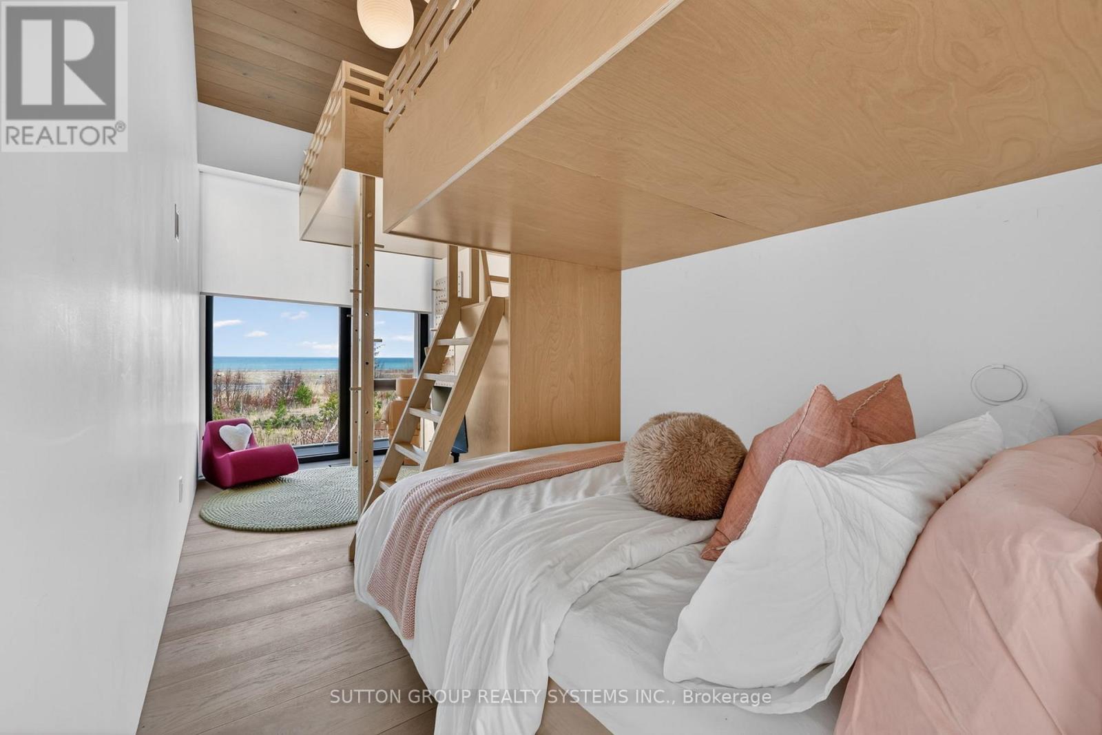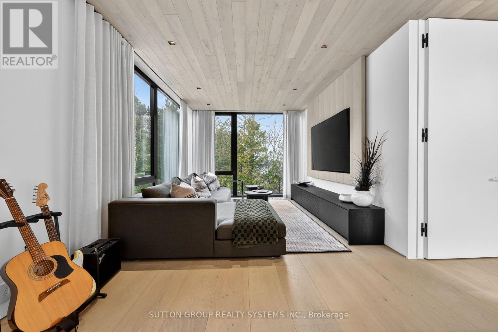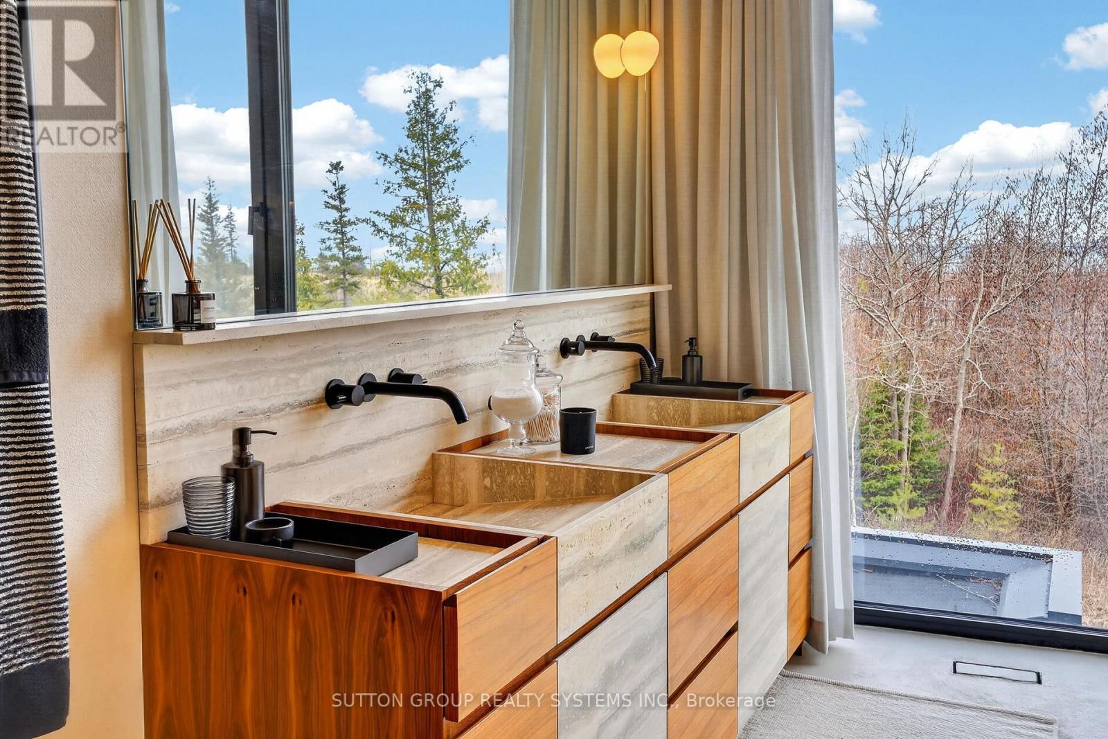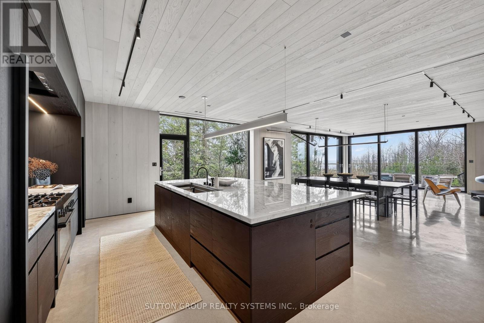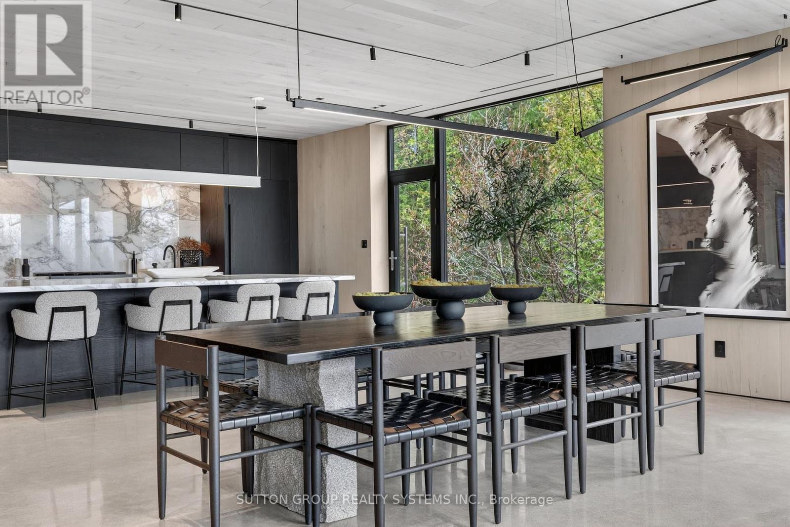 Exceptional newly built, custom-crafted 2-storey residence, ideally positioned between the shores of Georgian Bay and the ski slopes of Georgian Peaks. Designed by Foreshew Design Associates this 4-bedroom, 3.5-bath home showcases a seamless blend of modern architecture, premium materials and advanced technology. Exterior features include striking black thermal pine siding, durable metal roof & energy-efficient Drutex triple-pane windows & doors. Fully integrated Lutron&Control 4 system w/ multiple control panels provides effortless control of lighting & ambiance throughout. Open-concept main level is designed for both everyday living & entertaining, featuring dramatic floor-to-ceiling windows an iconic floating wood-burning fireplace, custom metal shelving & built-in cabinetry. Heated polished concrete floors w/hydronic radiant heating extend throughout main level & into garage. Designer kitchen by Chervin Kitchen & Bath offers panelled 36" JennAir fridge, 36" Bosch gas range, marble countertops & backsplash and two panelled drawer dishwashers by Fisher & Paykel. Hidden coffee station with double fridge/freezer drawers and automated pocket doors along with spacious walk-in pantry adds both style & functionality. Additional main floor features include soundproof gym with dedicated ventilation system and Elkay bottle filling station as well as designer powder room with statement finishes. Outdoors heated driveway & walkways with snow-melt system ensure low-maintenance winter living. Upper level offers bright family room with custom built-ins, luxurious primary retreat featuring vaulted ceilings, refined finishes, private loft space ideal for meditation, reading or quiet retreat, custom walk-in closet and spa-inspired 5-piece ensuite with walk-in glass shower & integrated tub. Three additional bedrooms, two bathrooms and second-floor laundry complete upper level. Rare offering combining design, comfort and unbeatable four-season lifestyle steps to water & slopes! (id:4555)