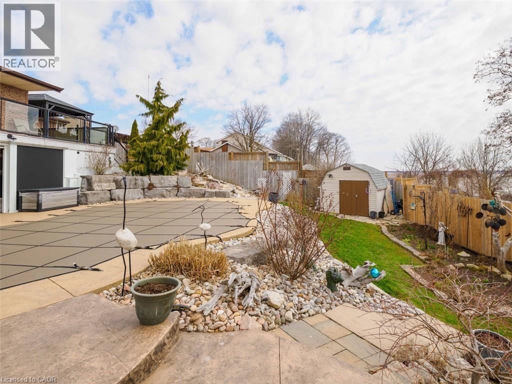 Welcome to lakeside living at its finest on the shores of Lake Erie. This beautifully updated bungalow offers breathtaking, uninterrupted water views both inside and out, creating a serene retreat you’ll never want to leave. Step into the bright and airy living room featuring soaring cathedral ceilings and expansive windows that perfectly frame the lake. A raised balcony with sleek tempered glass railings ensures your view remains unobstructed, whether you're enjoying your morning coffee or watching the sunset. This home has seen several updates, including a modernized kitchen, refreshed flooring, and renovated bathrooms. Outdoors, the property is equally impressive with an inviting inground pool, relaxing hot tub, thoughtfully designed walkways, and lush, landscaped gardens that create a private, park-like setting. The walk-out basement offers additional living space with a cozy family room, one of two gas fireplaces, and direct access to a renovated screened-in porch—ideal for enjoying warm summer evenings without the bugs. The seamless connection between indoor and outdoor spaces makes this home perfect for entertaining or quiet relaxation. Located just steps from the marina, this property combines the tranquility of waterfront living with convenient access to boating and recreation. A rare opportunity to own a turnkey bungalow in an exceptional quiet lake setting. (id:4555)