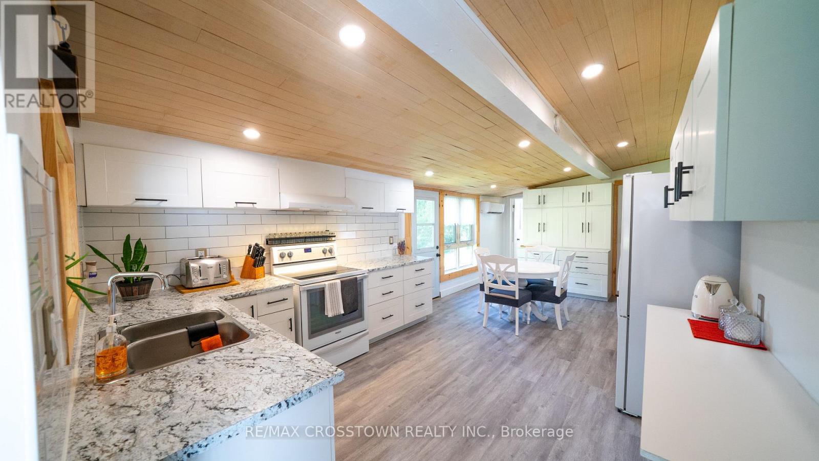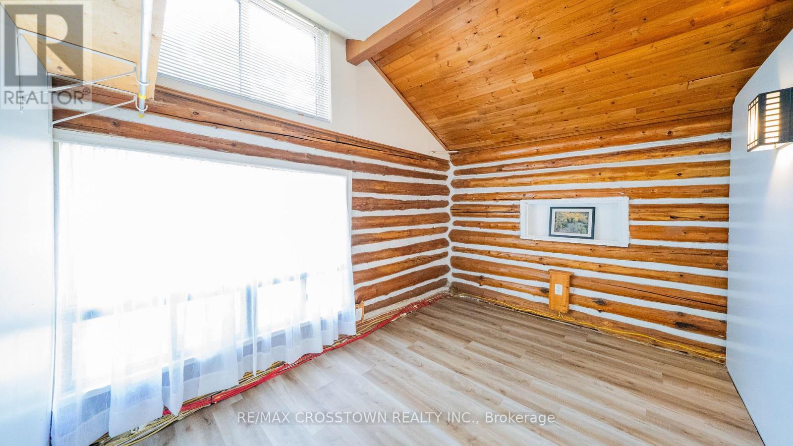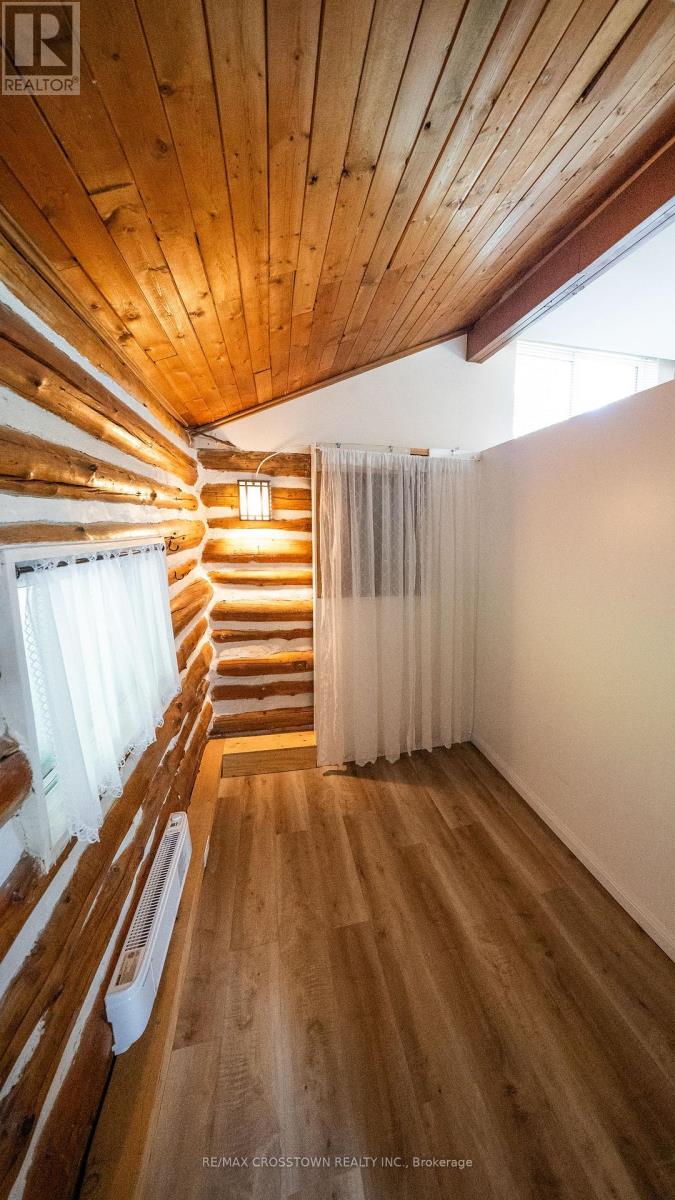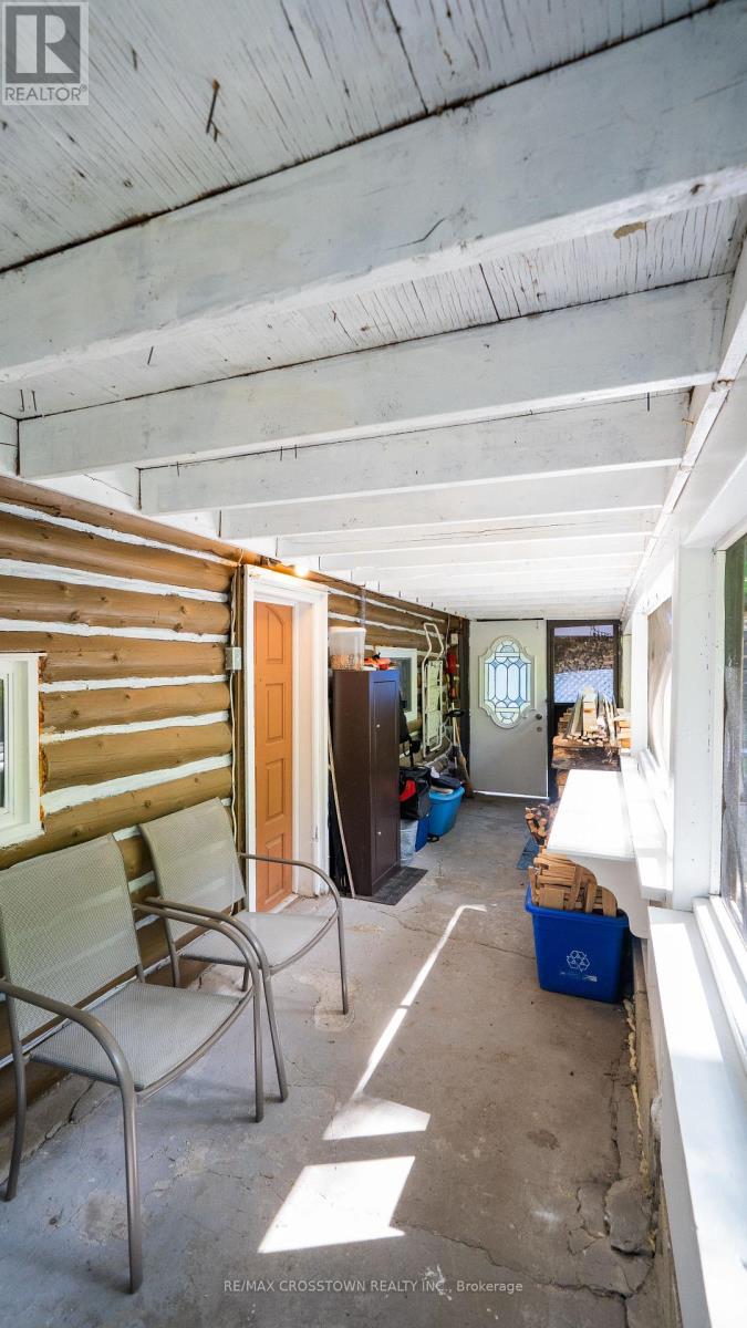 Welcome to your ideal country escape! This charming 2 bedroom log home sits on 5 private acres, just 10 minutes from Prospect Lake and conveniently close to Hwy 118 and Hwy 11 - offering the perfect balance of tranquility and accessibility. Step inside and you'll feel the warmth and character of this beautifully maintained home. Enjoy a bright and welcoming layout with an updated kitchen (2024), cozy living spaces, and plenty of natural light thanks to recently replaced windows in the bathroom, front bedroom, and living room (within the last 5 years). Optional 3rd room off the kitchen for guests. Stay comfortable year-round with a new heat pump and A/C (2023), and cozy up during the cooler months with a WETT-inspected woodstove - plus, the firewood is already split and stacked, ready to go! Upgrades: Steel roof (2022) Asphalt driveway (2023) Sump pump (2024) Water filtration system (2024) Septic pumped (2021) Step out onto brand-new decks and take in the peaceful natural setting, or relax in the screened-in porch-perfect for kicking off your boots or keeping firewood dry and close at hand. A standout feature of this property is the separate 2-room workshop, offering endless potential for hobbies, storage, or even a home-based business. Whether you're looking for a turnkey retreat or a comfortable year-round home, this property checks all the boxes. Furniture is negotiable, making your move even easier .Don't miss this rare opportunity to own a slice of Muskoka peace with all the modern conveniences already in place! (id:4555)