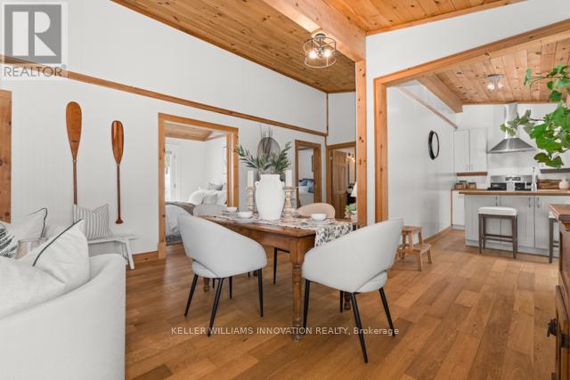 Set along the scenic Muskoka River, this charming four season waterfront bungalow is the kind of place that invites you to slow down, breathe deeper, and truly enjoy time at the lake. Updated with a modern yet cozy aesthetic, this home strikes the perfect balance between relaxed cottage living and effortless comfort. Designed entirely on one level, the bungalow layout offers accessible living for all ages and stages of life. Families, down sizers, and first time cottage owners will appreciate how naturally the space flows, making it just as suitable for weekend escapes as it is for extended stays. Outside, the level, private yard is ideal for kids, pets, and outdoor entertaining, with plenty of space for lawn games, fire pit nights, and long summer afternoons. The shoreline allows for easy swimming and paddling, while your dock becomes the starting point for endless exploration. Launch the canoe, kayaks or boat and enjoy kilometres of boating and exploring down to two different waterfalls, Slater Falls and May Chutes. As the sun sets, gather under the stars, listen to the crackle of the fire, and enjoy the peace that only waterfront living can offer. This property has a proven history as a successful short term rental, making it an excellent opportunity for investors or those looking to offset ownership costs, with furnishing options available for a seamless transition. Just minutes from downtown Bracebridge, you are close to charming shops, dining, cafés, and the iconic Bracebridge Falls, all while feeling tucked away in nature. Whether you are stepping into cottage ownership for the first time, downsizing to something simpler, or investing in a lifestyle driven property, this is a place where memories are made and Muskoka living truly comes to life. (id:4555)