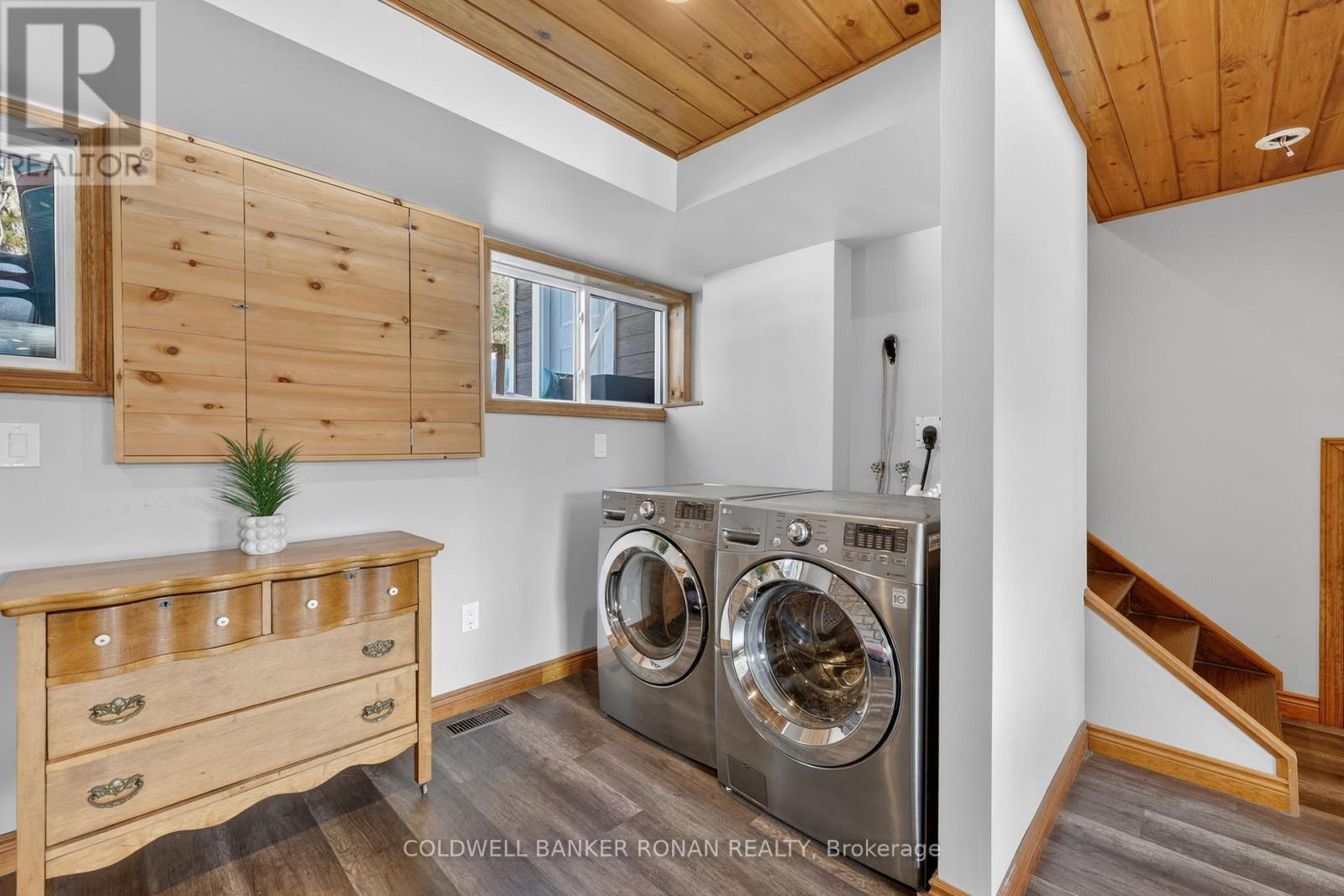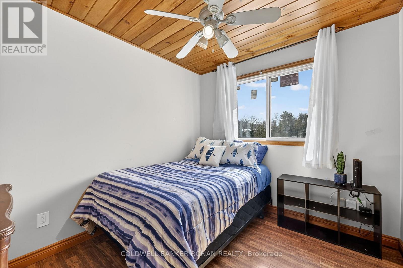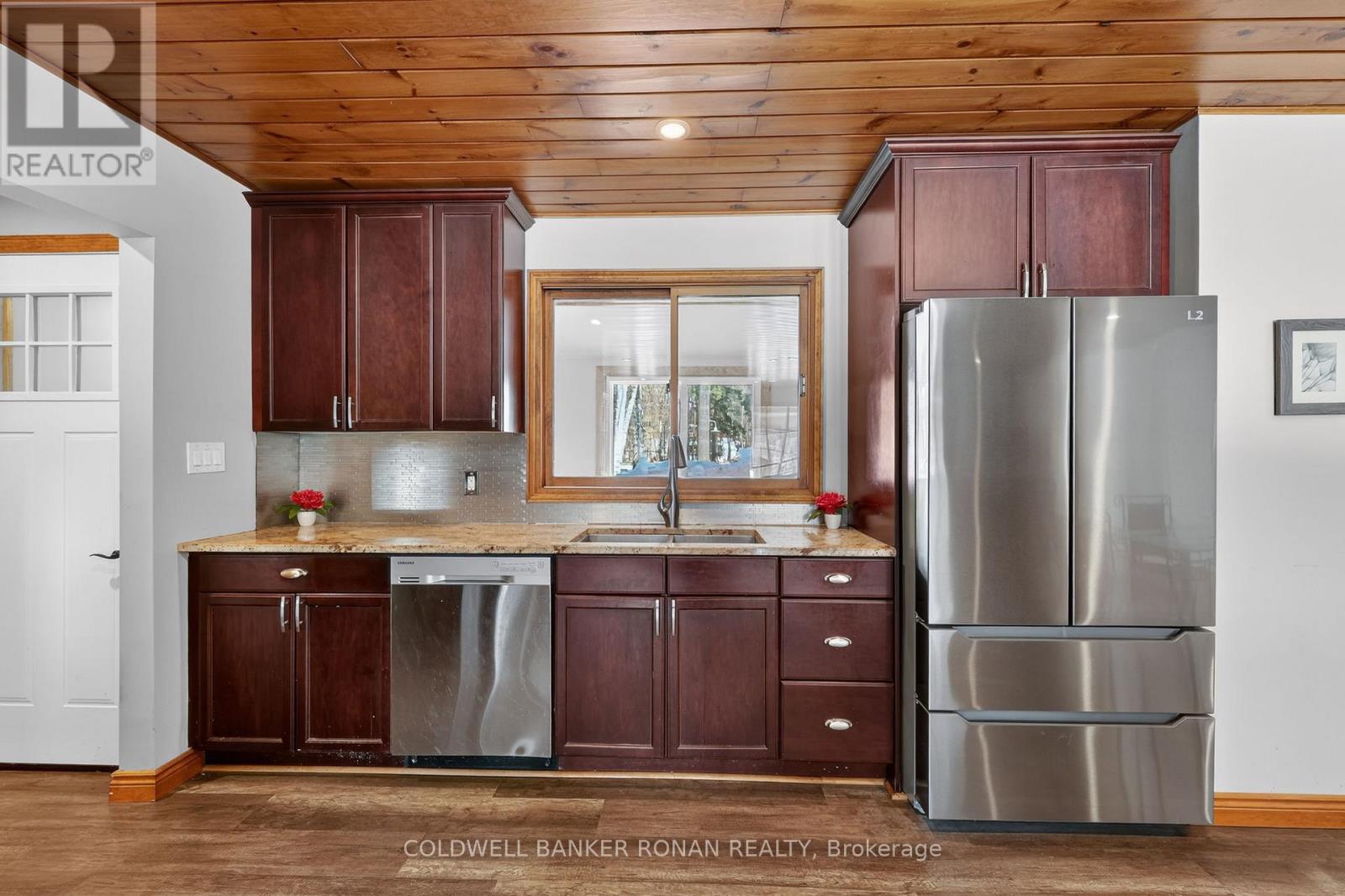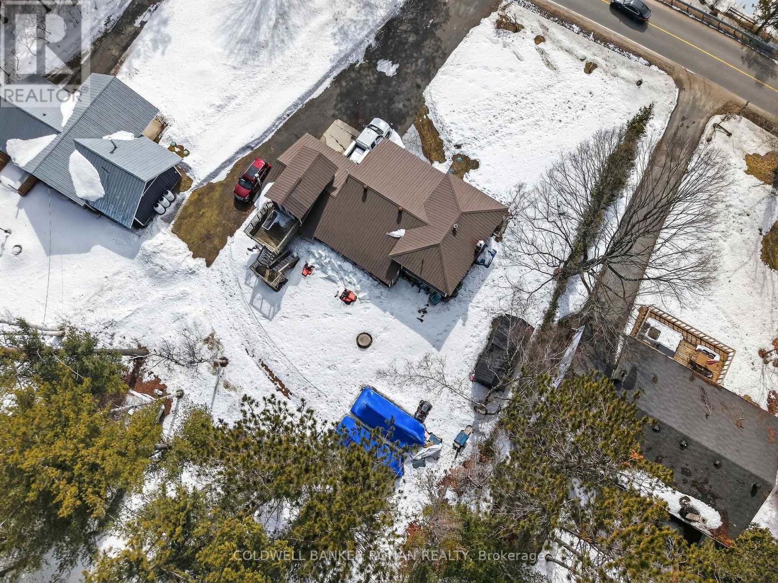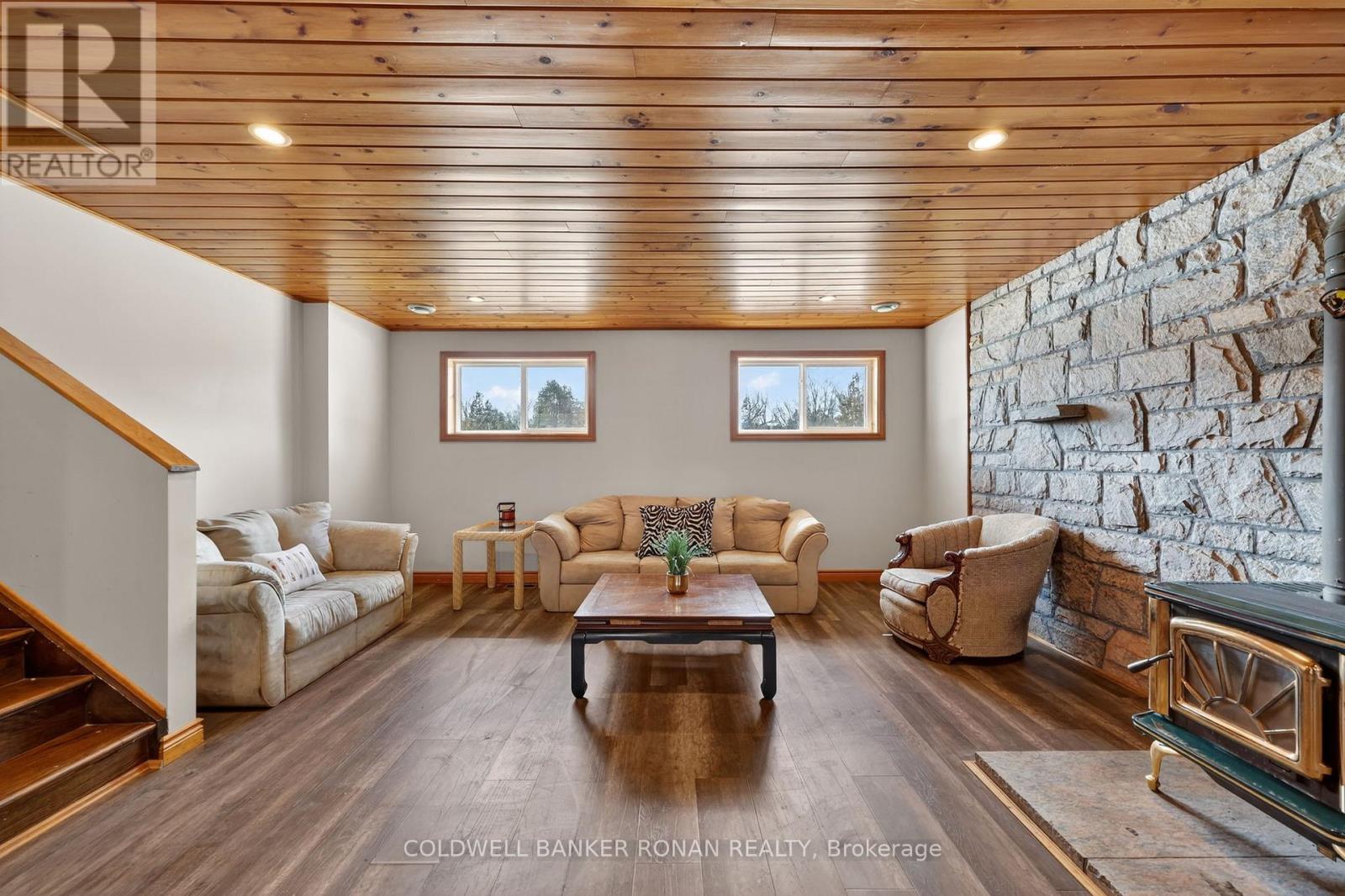 This charming spacious home boasts open concept living room, dining room & kitchen, 3 good sized bedrooms and lovely family room with woodstove. The sun filled sunroom offers serene view of the river. You will find the perfect guest room above the garage with french doors and view of the river. The insulated 2 car garage has access into the home. Recent renovations 2025 incl. new windows, flooring on main & lower level, painted throughout, ceramic floors in sun room & back foyer & fridge, new furnace, A/C and garage insulted w/epoxy floor & garage heated by electric heater.Renovations six years ago incl. new pine tongue & groove ceilings throughout, wiring, insulation, drywall, kitchen & guest room above garage.You will find a good sized dock at waterfront across Santas Village Rd. giving access to the 3 big lakes, Muskoka, Joseph & Rosseau. Min to downtown Bracebridge with all amenities incl. hospital. This property is perfect for entertaining with that lovely peaceful feeling and plenty of outdoor space. Lots of parking.Book your appointment now and make this"Home Sweet Home" (id:4555)