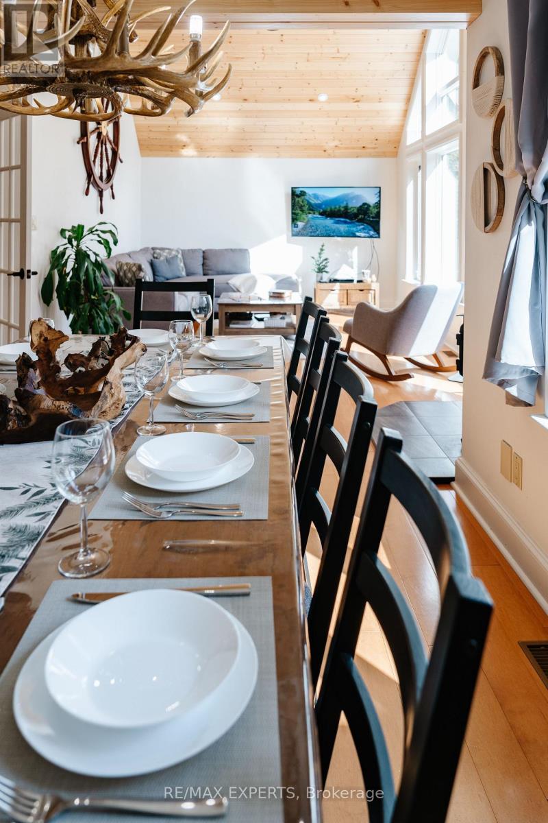 Fully Licensed Short-Term Rental. Welcome to This High-Performing Year-Round Retreat on the Black River. Tucked away on 2 acres of treed land, this secluded 3+1 bedroom, 3-bathroom cottage offers exceptional peace, space, and flexibility. Whether you're looking for a serene year-round getaway, a comfortable primary residence, or a fully turnkey short-term rental, this property checks every box with over 100 five-star reviews & annual income exceeding $150K. Located on a quiet municipal road just 30 minutes from downtown Bracebridge, the road is maintained & snow-plowed by the town year-round, and garbage pickup is provided by the municipality. The property features 200-amp service, fresh paint throughout, and comes fully set up for immediate rental income with short-term rental licence in place and everything ready for the new owner to start generating cash flow. Inside, the bright and airy open-concept layout is filled with natural light. The main level offers three bedrooms one ideal as a home office & a fourth bedroom in the fully finished basement. Enjoy cozy evenings by the indoor wood stove, unwind in the sunroom, or have fun in the game room. There are three full bathrooms, providing convenience for families and guests. Step outside to soak in the natural surroundings. A massive 10x10 ft deck by the river, hot tub, and fire pit create the perfect setup for entertaining or relaxing under the stars. A large deck off the main level adds even more outdoor living space. Launch a kayak or paddle right from your backyard with direct access to the Black River. Additional features include a generator capable of powering the entire house for days, a single attached garage, and a spacious driveway that fits multiple vehicles. With high-speed Starlink internet, remote work and streaming are seamless. This is true Muskoka living private, peaceful, and profitable. Dont miss your chance to own a fully equipped, high-performing retreat in a spectacular natural setting. (id:4555)