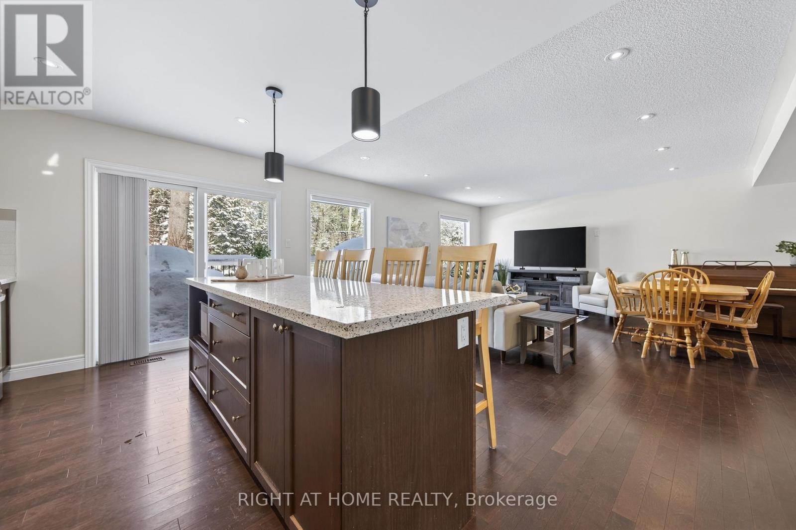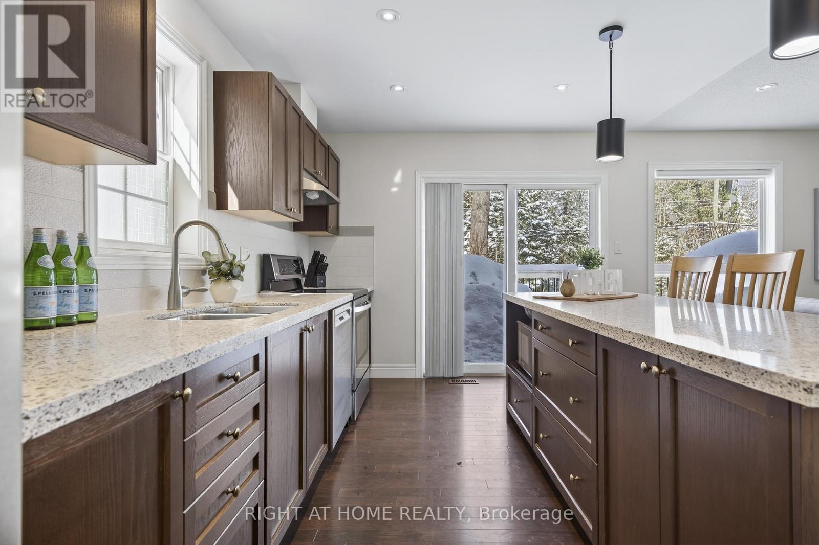 This beautifully maintained family home is situated just minutes to downtown Bracebridge's charming shops, restaurants, waterfront parks, and beaches, offers 4 generous bedrooms and 2.5 baths, thoughtfully designed for comfortable family living. The bright, open-concept main floor features gleaming hardwood floors, large windows, and abundant pot lighting that creates an inviting, airy feel. The stunning kitchen is anchored by a quartz island-perfect for casual meals or entertaining-and opens to a lovely deck with a gas BBQ hookup overlooking the fully fenced backyard with garden shed. A convenient powder room and spacious laundry room with direct garage access complete the main level. Upstairs, you'll find four well-proportioned bedrooms, including a sun-filled primary suite with two large closets and a beautifully updated ensuite featuring a glass-enclosed shower and ample storage. Three additional bedrooms and a roomy family bath provide space for everyone. Fresh paint throughout makes the home bright, clean, and move-in ready. The unspoiled lower level offers exceptional potential with a separate entrance, and a rough-in for a future bathroom. Professional drawings are available to convert the space into an in-law suite or accessory apartment-ideal for extended family or added income. Located steps from the Sports Complex (pool, gymnastics, gym, playground and more), the local high school, and scenic trail systems. (id:4555)