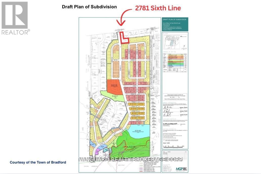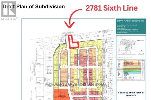 A prime investment opportunity to acquire 1.631 acres of land located at the main entrance of Bradford's largest upcoming residential subdivision with 998 homes, the Bradford Highlands(former Bradford Highlands Golf Course). This exceptional corner lot boasts over 110 feet of frontage on Sixth Line and over 427 feet along the future main entrance of the subdivision,offering high visibility and exposure. Strategically positioned within a rapidly growing community, this property presents endless potential for future development, including commercial use, a small plaza, gas station, or residential projects (subject to approvals). With ongoing residential expansion and a surging local population, this parcel offers outstanding potential for investors and developers seeking to establish a presence in one of Bradford's most desirable growth areas.Its size, location, and direct adjacency to new subdivision lands make it a valuable long-term addition to any real estate portfolio. A 5 bedroom, 2-storey home with over 2,300 sq. ft. of above-ground living space adds further value to the property ideal for rental income or as a comfortable residence while capitalizing on future development potential. (id:4555)