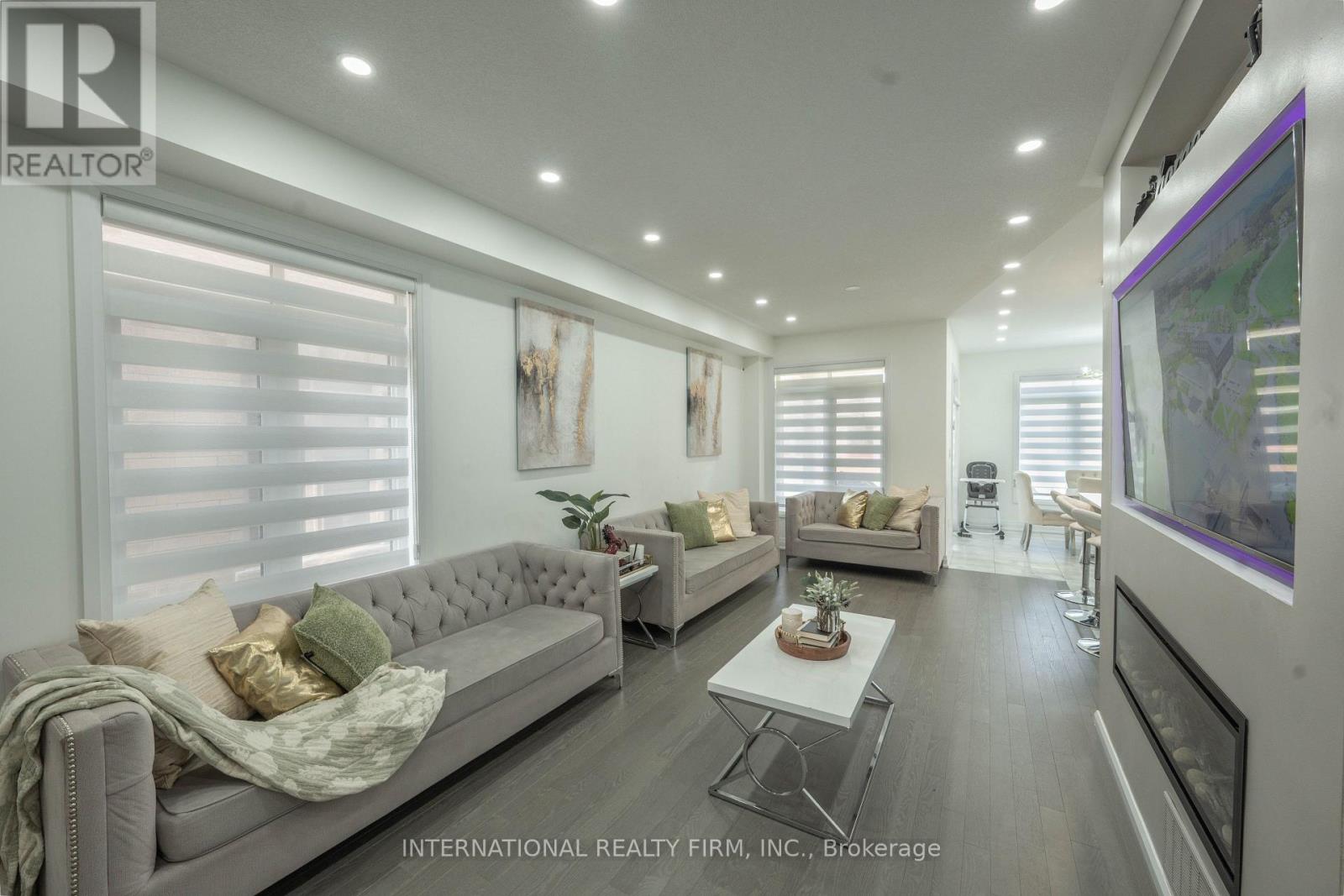 ATTENTION YOUNG FAMILIES AND COUPLES who are starting new life!!!! Perfect area to grow your family in kids safe neighborhood, walk to school, play ground, minutes away from shopping mall, food stores, restaurants, 5 minutes drive to HWY 400, community center, almost new, luxury, 3 bedrooms, 3 baths, 2 story semi detached with custom entrance double door, modern hardwood floor and 9 Ft ceiling on main level, open concept, luxury kitchen cabinets, s/s appliances, custom remote controlled blinds, custom build media center wall, LED pot lights, and much more. Simply come and see your self!!! Not finished basement but yet perfect to set your own rec room, put all your exercise equipment or set play ground for your kids, or simply get your own idea and do as you like with this huge area. (id:4555)