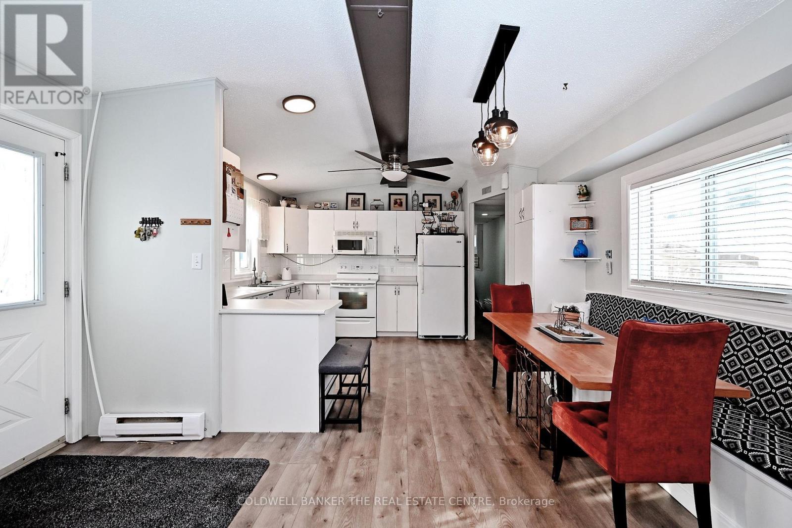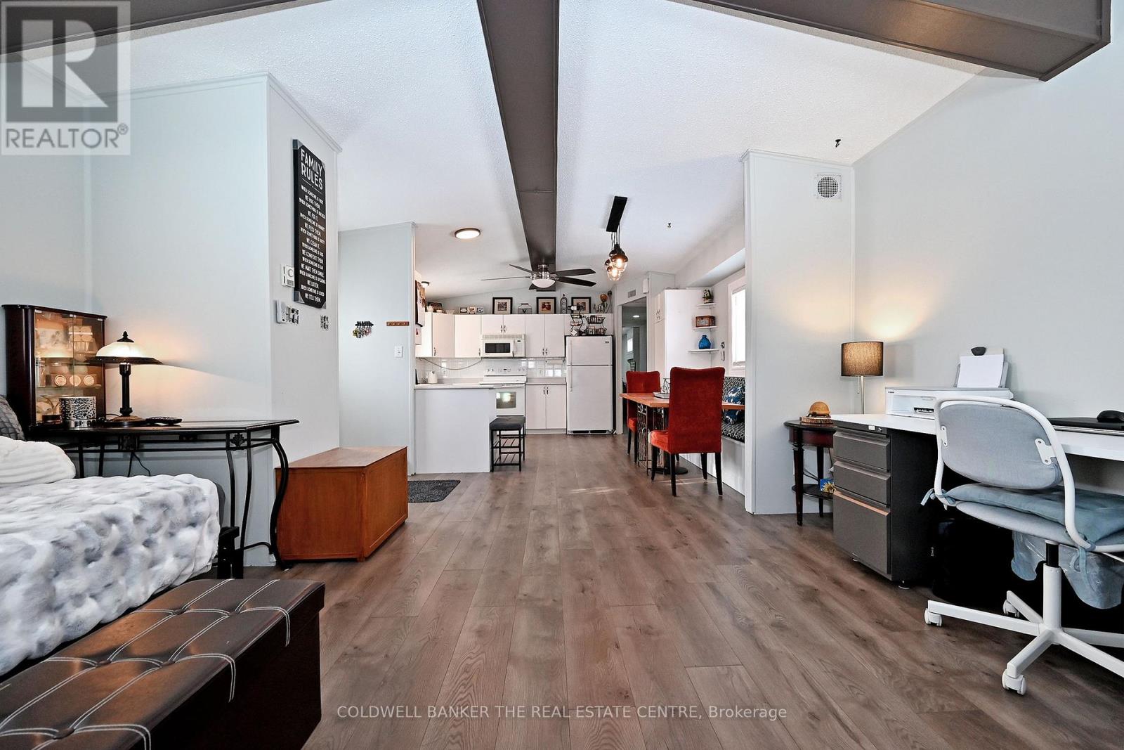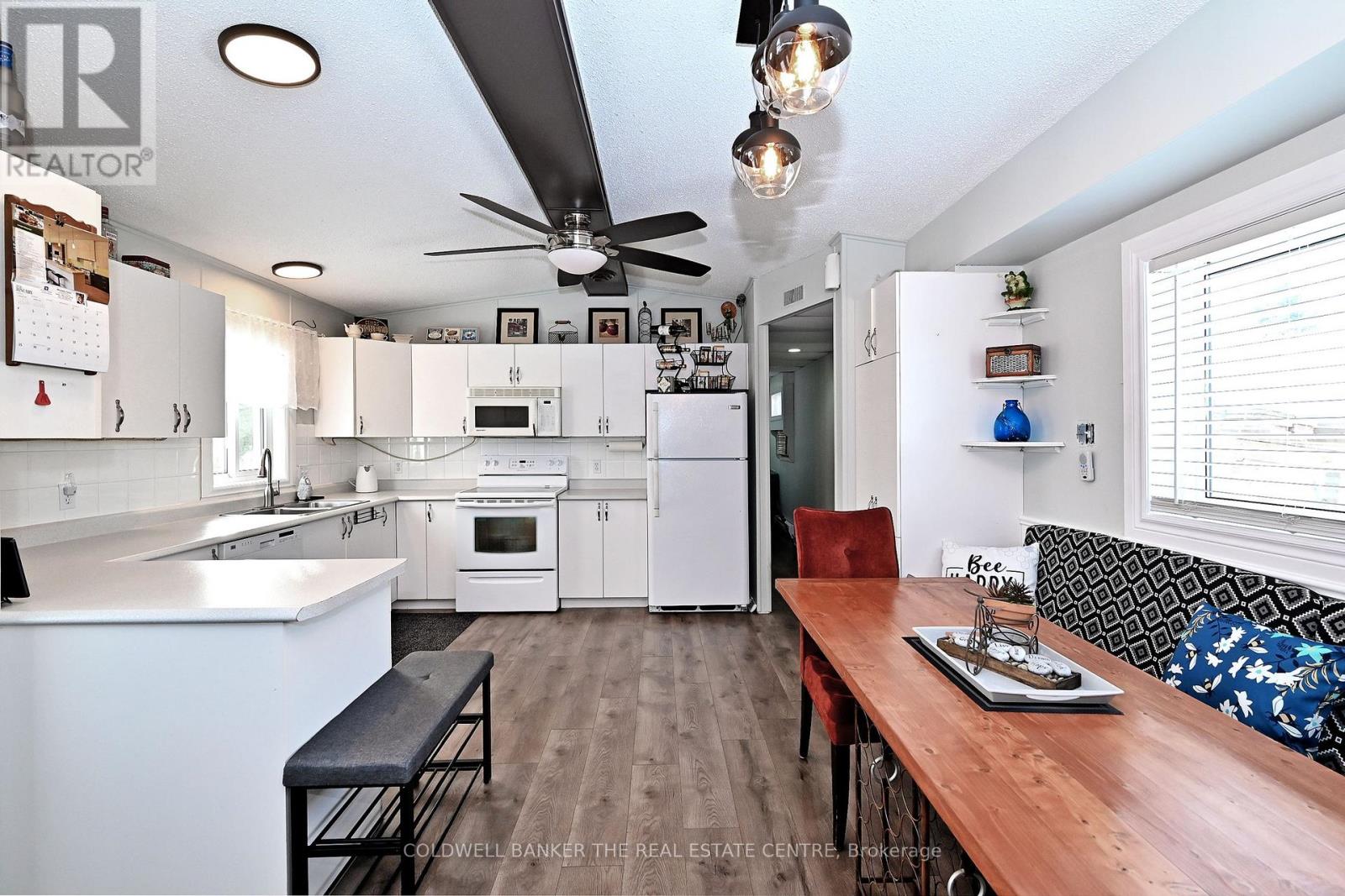 Wonderful opportunity for first time buyers or down sizers! Charming 2 bedroom modular home with spacious layout. Inviting living area features a chalet style beamed ceiling and cozy wood burning fireplace. Bright eat in kitchen with built in banquet seating. Two bedrooms and two bathrooms. The primary bdrm boasts a beautifully renovated ensuite. Outside enjoy a large deck with clear views of conservation - ideal for relaxing or entertaining . Recent upgrades include: shingles (2024) , deck (2021), new flooring (2021), primary bath (2021) , paved driveway (2021) , windows(2019). Located just minutes to Bradford this land lease community has NO AGE RESTRICTIONS. Monthly land lease of $595 includes property taxes, water and road maintenance. Home owner responsible for hydro, internet and phone. A wonderful opportunity to enjoy affordable living in a serene setting. (id:4555)