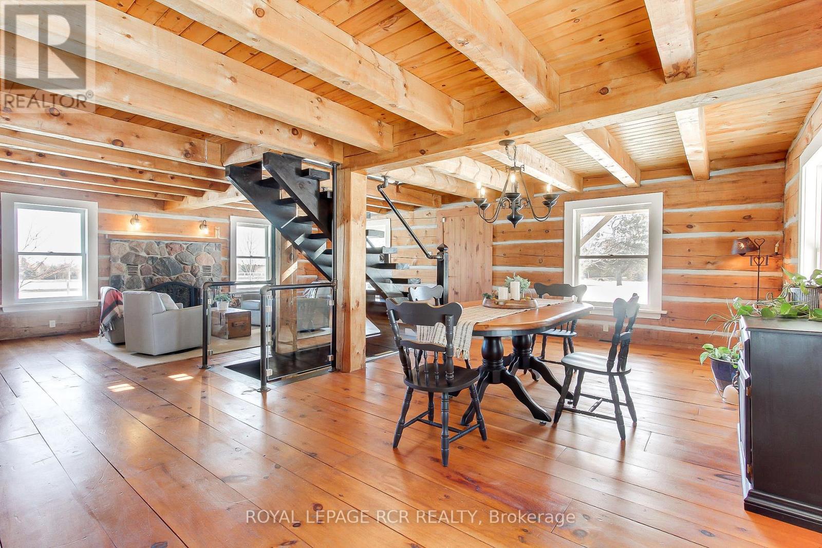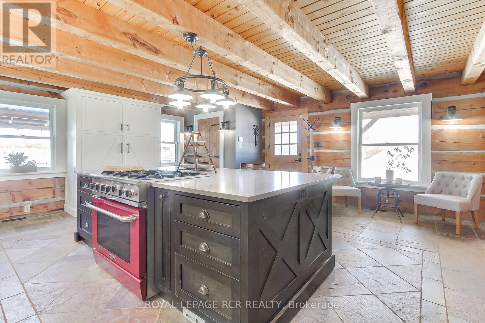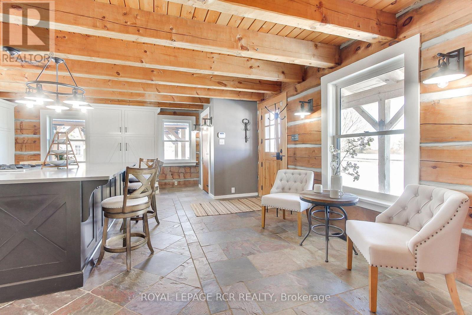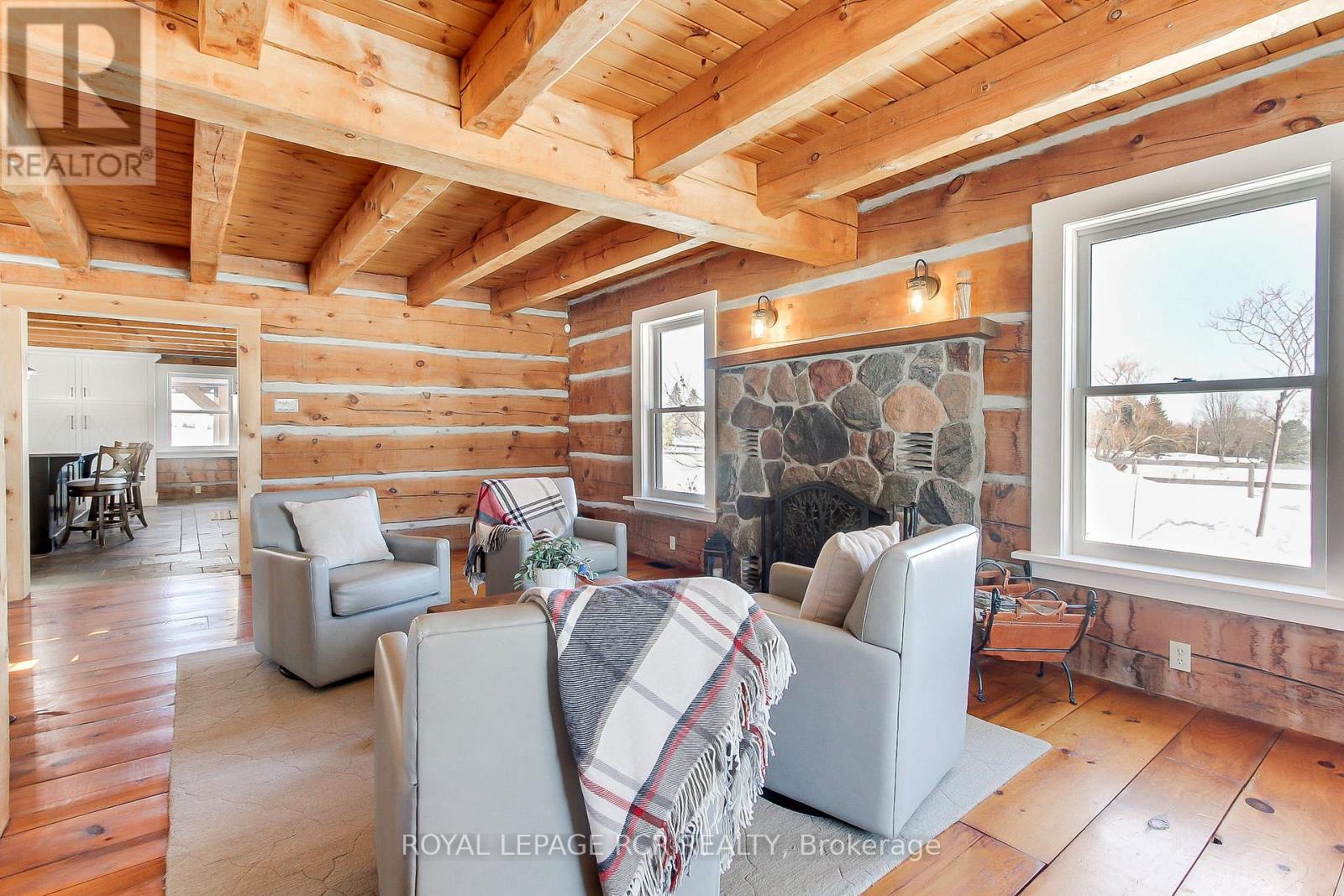 Charming One of A Kind, Log Home On Half An Acre - Desired Quiet Country Living Just Minutes From Town! Discover The Warmth And Character Of This Beautifully Maintained 3+1 Bedroom Log Home, Proudly Offered For The First Time. Nestled On A Private 125 Ft X 200 Ft (0.57 Acre) Lot Surrounded By Mature Trees And Perennial Gardens, This Property Offers Peaceful Views Including Glimpses Of Lake Simcoe. Offering Over 2,400 Sq Ft Above Grade Plus A Finished Basement, This Home Perfectly Blends Rustic Charm With Modern Comfort. The Spacious Country Kitchen Features Stone Tile Flooring, Quartz Island With Seating, Propane 36" Gas Range, Wall Convection Oven, Built-In Wall Microwave, Double Commercial Grade Electrolux Fridge, Farmhouse Apron Sink, Large Pantry, And Convenient Side Entrance To Beautiful Covered Porch. The Open-Concept Living And Dining Area Boasts Large Windows And A Wood-Burning Fireplace, Creating A Bright And Inviting Space For Family Living And Entertaining. The Upper Level Offers Three Generous Bedrooms, A Handy Office Nook, And A Beautiful 5-Piece Bathroom With Clawfoot Tub, Spacious Walk-In Shower, And Double Vanity. The Finished Basement Adds Additional Living Space With Engineered Hardwood Flooring, Wood Insert Fireplace, 4Th Bedroom, Den/Bonus Room, 3-Piece Bath, Laundry, And Utility Room. Enjoy The Covered Front And Side Porches, Garden Shed, And Gazebo Area Perfect For Family BBQ's And Entertaining Friends. Mechanical Updates Include Windows (2+/- Yrs), Generator (5+/- Yrs, Owned), On-Demand Hot Water Heater (5+/- Yrs, Pressure Tank (5+/- Yrs, Water Softener (5+/- Yrs), And Propane Furnace (7+/- Yrs, Owned). Private Well And Septic. Ample Parking With Garage Pad Already In Place. Just Minutes To Bradford, Hwy 400, And All Amenities. A Perfect Blend Of Comfort, Charm, And Country Living! (id:4555)