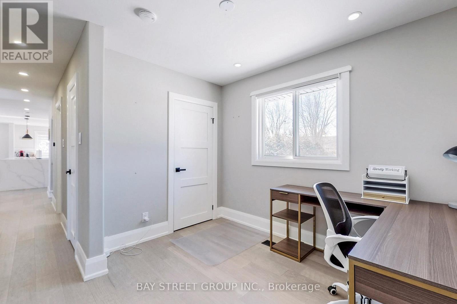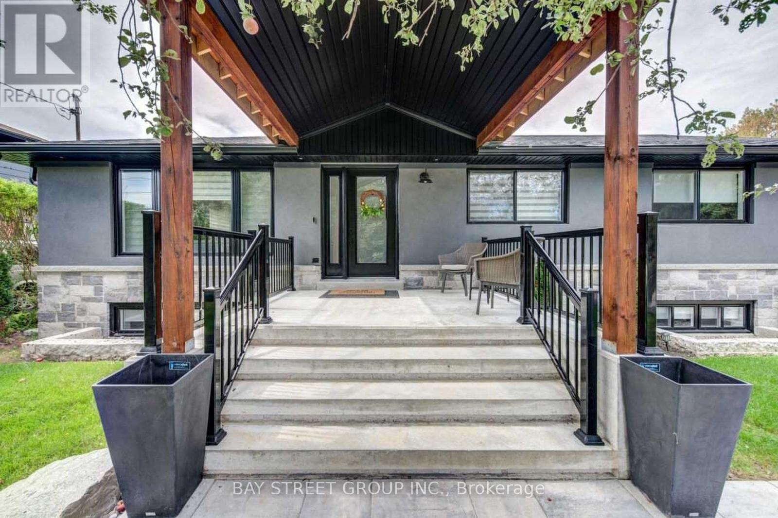 Newly renovated raised bungalow on a main artery in Bradford, situated on one of the largest lots in town. The gourmet kitchen features a dry bar, built-in stainless steel appliances, and walkout access to the deck. The beautifully landscaped backyard includes jacuzzi seating and offers parking capacity for up to 20 vehicles. The primary bedroom offers a heated-floor ensuite, while custom built-in closets and a TV bench add tailored convenience. A large detached six-car garage/workshop with a separate electrical panel provides exceptional utility. Exterior lighting and smart home features complete the package (id:4555)