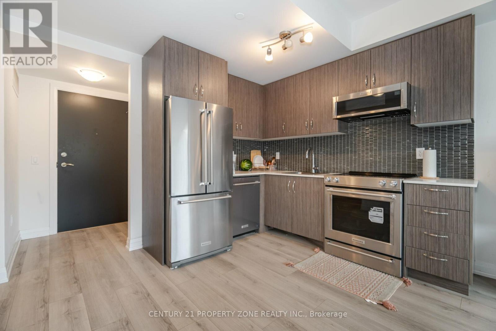 Attention FIRST TIME HOME BUYER! This beautiful BRAND NEW condo stacked townhouse Features 1 Bedroom + 1 Bathroom, 1 Car Parking (Owned) and 1 Locker (Owned). Lots of builder upgrades. Carpet free, Oversized balcony with glass railings, Upgraded KITCHEN AID appliances in the entire kitchen, quartz countertop, quality designed cabinetry with full depth fridge upper cabinet, upgraded kitchen backsplash, Approx 9' Ceiling heights as per plan, Countertops, Quality designed bathroom vanity cabinets including powder room, Under mount square Basins, In Suite Laundry closet. Pets allowed with restrictions. Located at the intersection of Gore Rd/Queen St close to Hwy 427, 407, 50, 7, Minutes from Costco, Parks, Public Transit & More (id:4555)