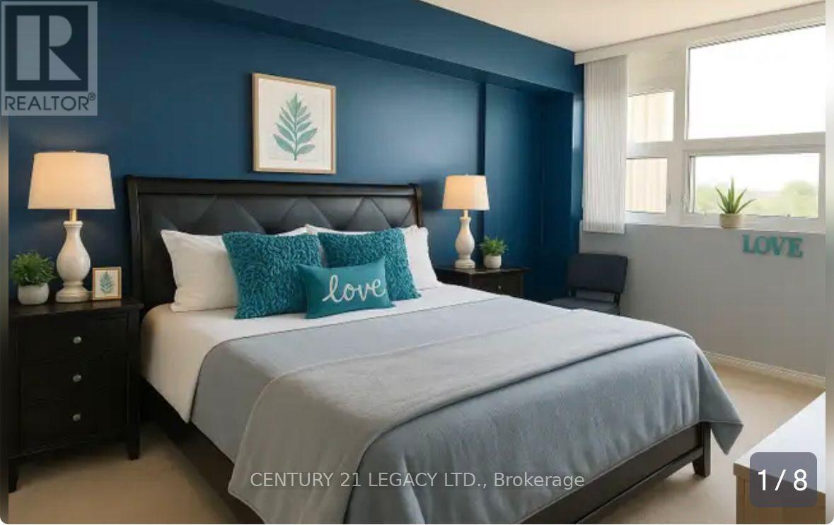 This corner suite features panoramic views and spacious interiors. The living room and dining area are enhanced with wall-to-wall windows, and the separate solarium includes large windows offering bright sunlight. The master bedroom is designed with a walk-through closet area and ensuite bathroom. The renovated eat-in kitchen provides ample cupboard space and generous countertops. The unit includes a fully equipped laundry room, a large storage room, and two parking spots conveniently located near the elevator. It is furnished with a dining set, couch, TV, and an additional fridge; however, the furniture can be removed if not required. The property is situated next to Bramalea City Centre and is close to transit, shopping, parks, and other amenities. The property has a key access to entrance and common areas. (id:4555)