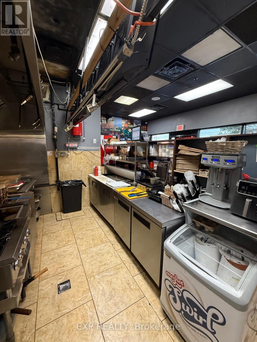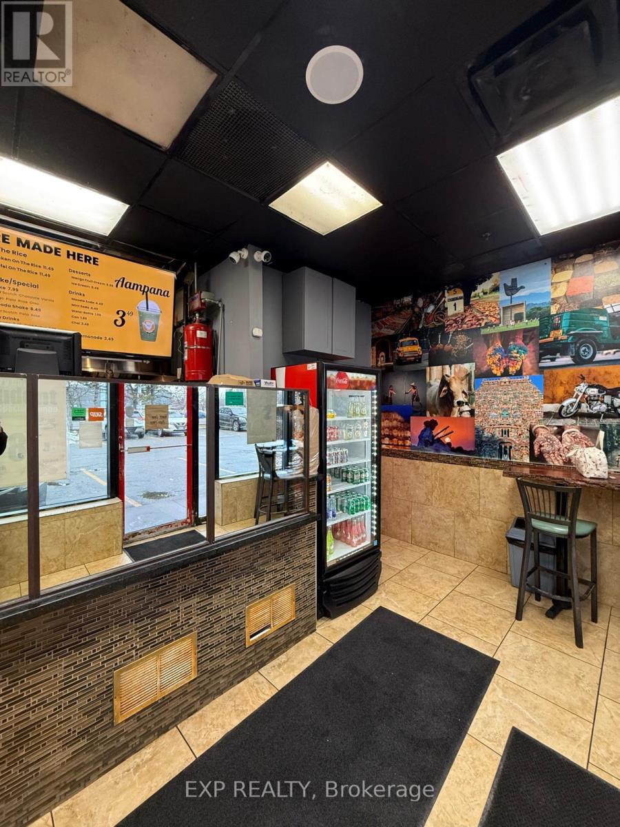 Unbeatable location. Restaurant for sale in a prime Brampton corner unit directly opposite Sheridan College, benefiting from constant student foot traffic, excellent visibility, and ample parking. Features a commercial hood, multiple stand-alone freezers, refrigerators, fryers, and essential kitchen equipment, allowing for efficient day-one operations. Low all-in rent of approx. $2,321/month keeps overhead exceptionally low. Suitable for Mediterranean and other approved cuisine concepts (Indian not permitted). Motivated seller. Rare opportunity to secure a high-traffic corner location at an attractive entry point. (id:4555)