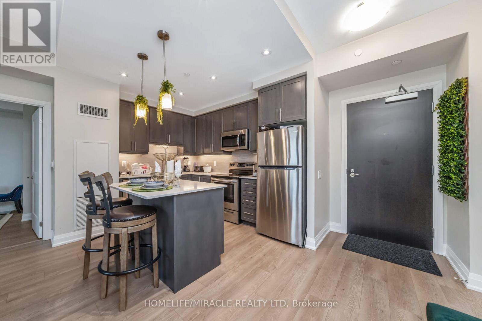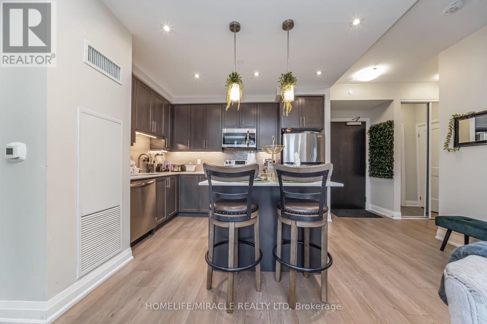Discover the perfect mix of comfort, style, and convenience at 15 Lynch Street, right in the heart of downtown Brampton. This bright and airy condo features stunning 9 foot floor to ceiling windows that fill the space with natural light, giving it a warm and inviting feel. The modern kitchen is both stylish and functional, with stainless steel appliances, lots of storage, and a handy breakfast bar great for morning coffee or casual meals. The spacious primary bedroom offers a quiet escape, complete with its own 3 piece ensuite for added privacy and comfort. You'll also enjoy the perks of underground parking, a storage locker, and access to top notch amenities. Whether you're walking to nearby schools, grabbing dinner, shopping, or getting on the GO Train, everything you need is just steps away. With easy access to all major highways, this location truly has it all. Don't miss your chance to call this beautiful space home! (id:4555)