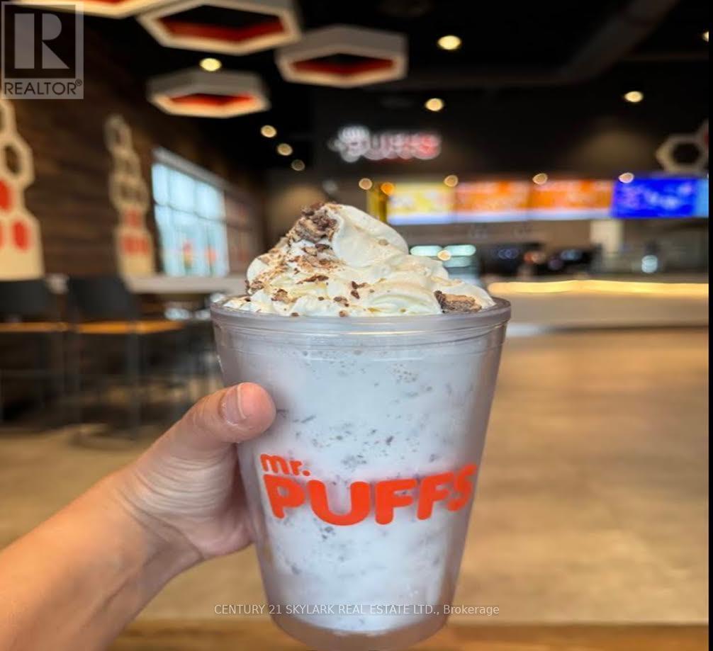 Once in life time chance to own a very famous 'MR PUFFS' for sale at very busy location of Brampton located at intersection of Bovaird drive and Hurontario. You will be blown away with amount of SALES AT THE LOCATION. HIGH SALES, STEADY CLIENTEL, LONGER LEASE, VERY BUSY PLAZA. Turnkey operation with full equipment SET UP. GLA OF 2272 SQ FEET AND BASE RENT OF $7194.67. BUYER TO GET TRAINING BY THE HEAD OFFICE. ORDER PICK UP, DELIVERY, UBER EAT, DOOR DASH ETC. ERVING full dessert bar, offering a range of other sweet treats and beverages and Frozen desserts, such as baklava-style ice cream. Milkshake Specializing in Greek-style Loukoumades (hot pastry puffs),gourmet coffee, milkshakes, specialty plaza surrounder by WALMART, NATIONAL BANK , INDIGO , KELSEYS ETC ETC .. A VERY BUSY SPOT TIMINGS 12-12 .. WEEK ENDS 12 -2 AM. ROYALTIES MARKETING (7+2). (id:4555)