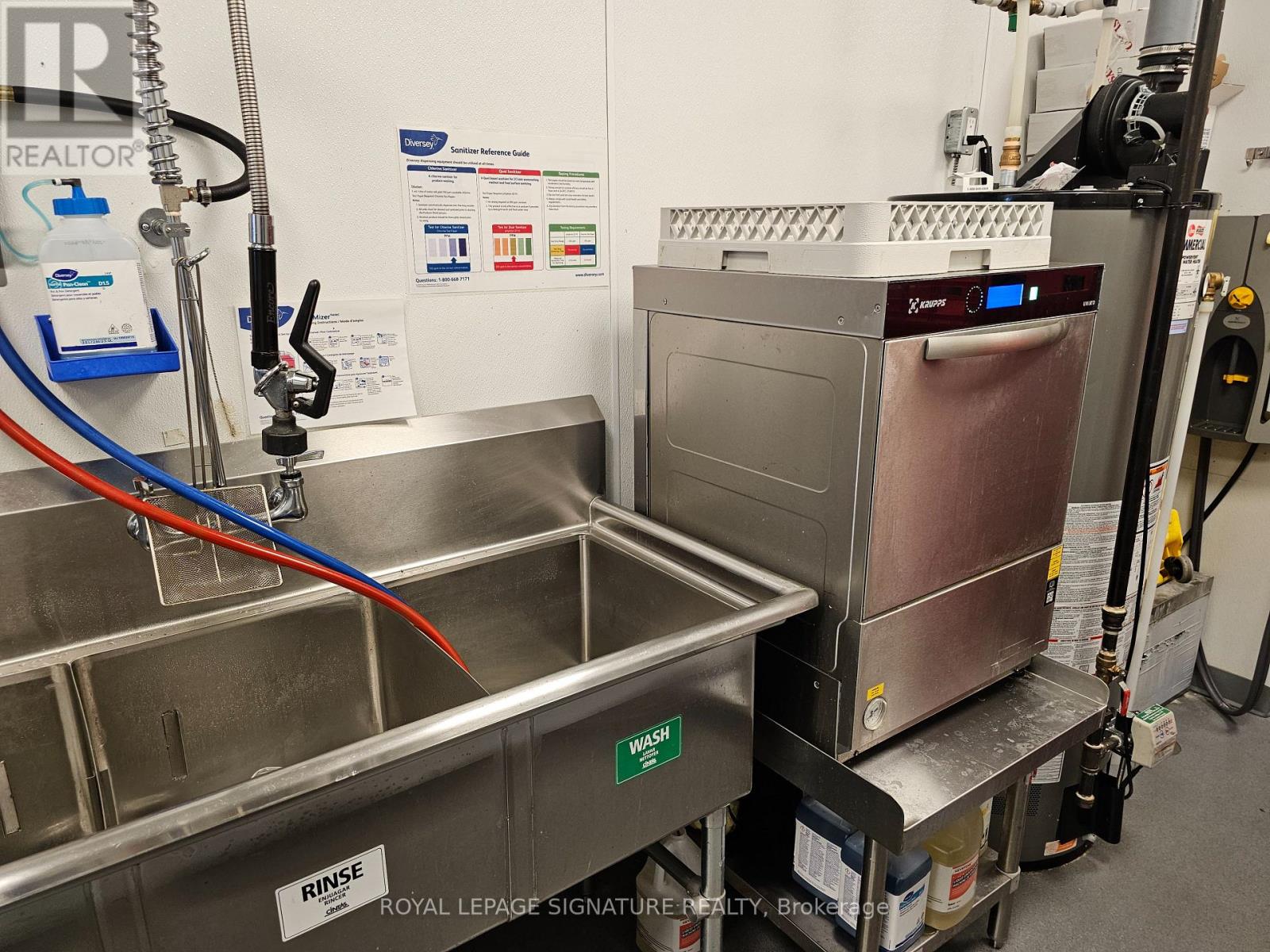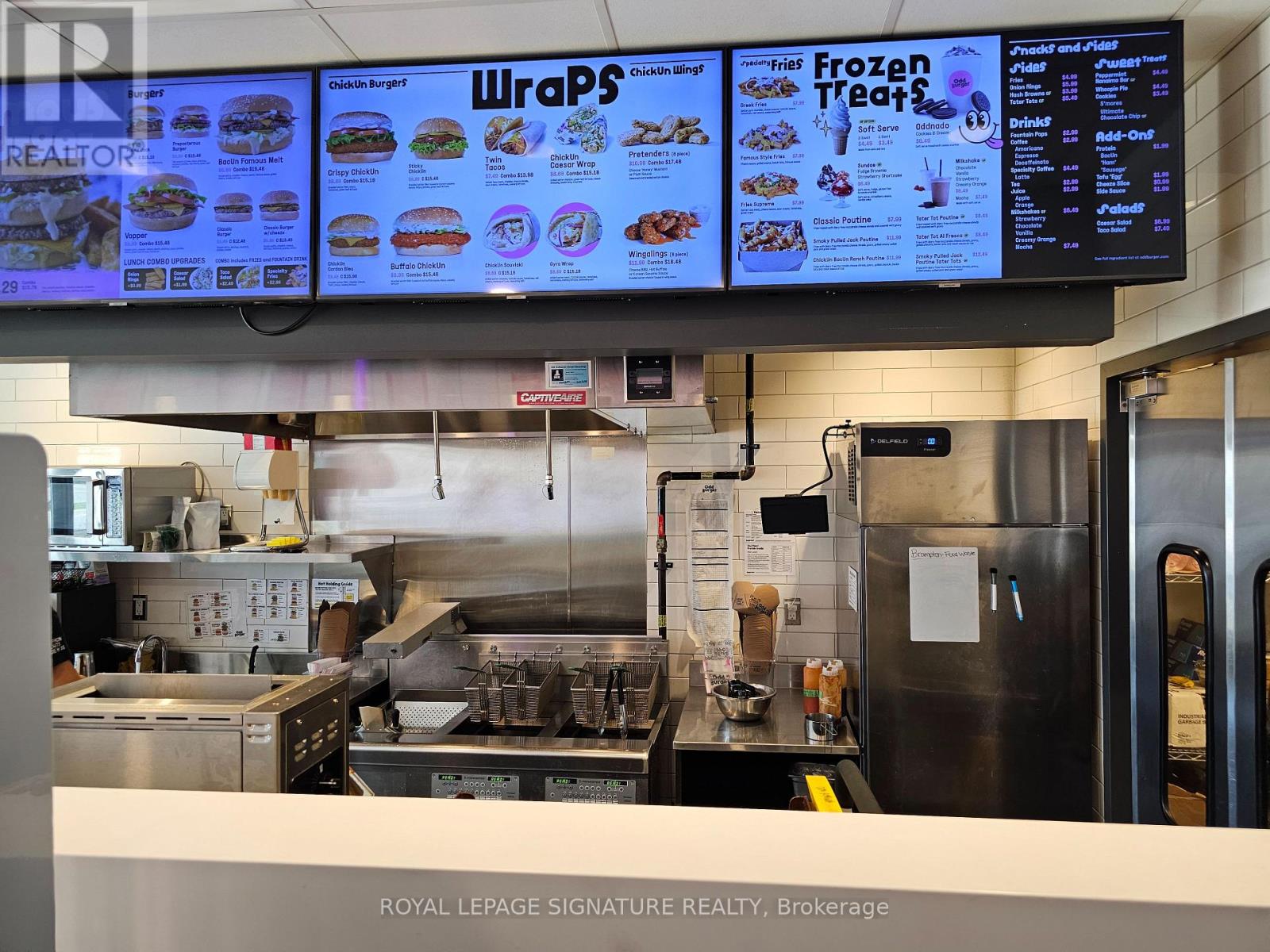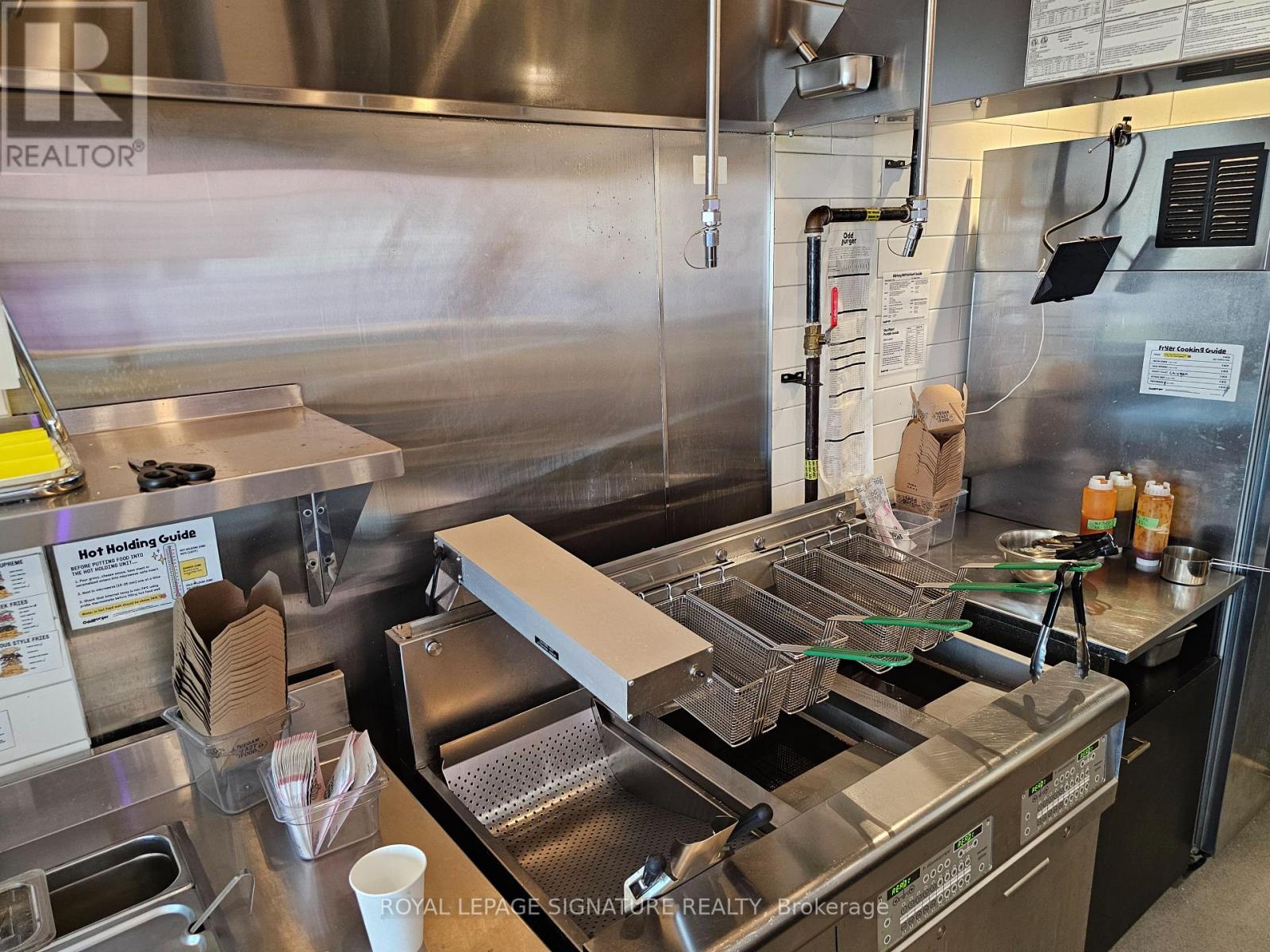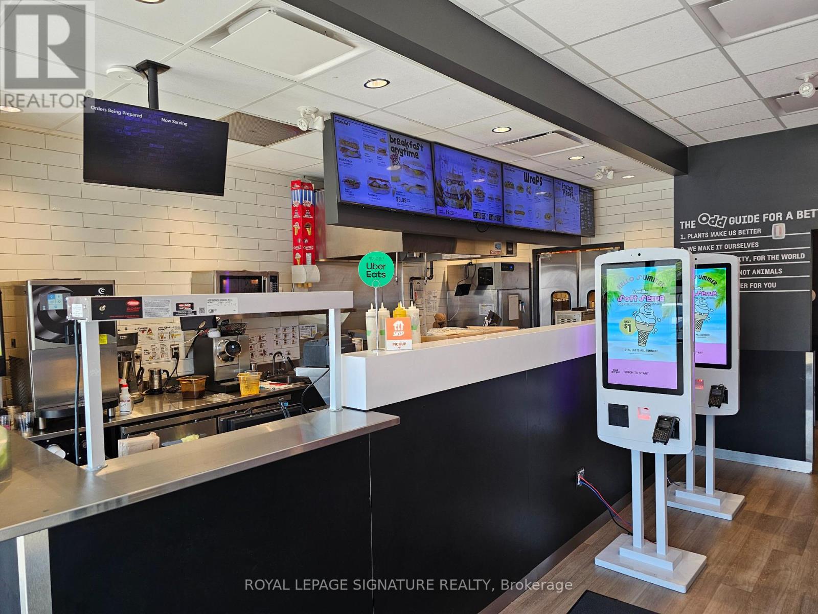 Modern quick service restaurant (QSR) available for rebranding into many different concepts, cuisines, or franchises. Located in Brampton one of Ontario's fastest growing cities. This location is ideal for a takeover for expanding brands, concepts and operators. There is plenty of parking in this busy plaza located in the airport industrial area. Complete with a 6-foot commercial hood and an ideal QSR setup/layout designed to limit labour costs and maximize efficiency. Excellent opportunity to avoid a new buildout. Please do not go direct or speak to staff or management. Great lease rate of $4,284 gross rent including TMI with 8 + 5 years remaining. Easy to operate and ideal set up for take out and quick service. 2 walk-ins and commercial hood venting. 1,031 sq ft layout with 2 bathrooms and prep area. (id:4555)