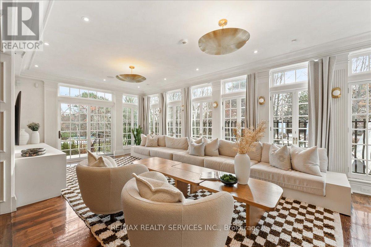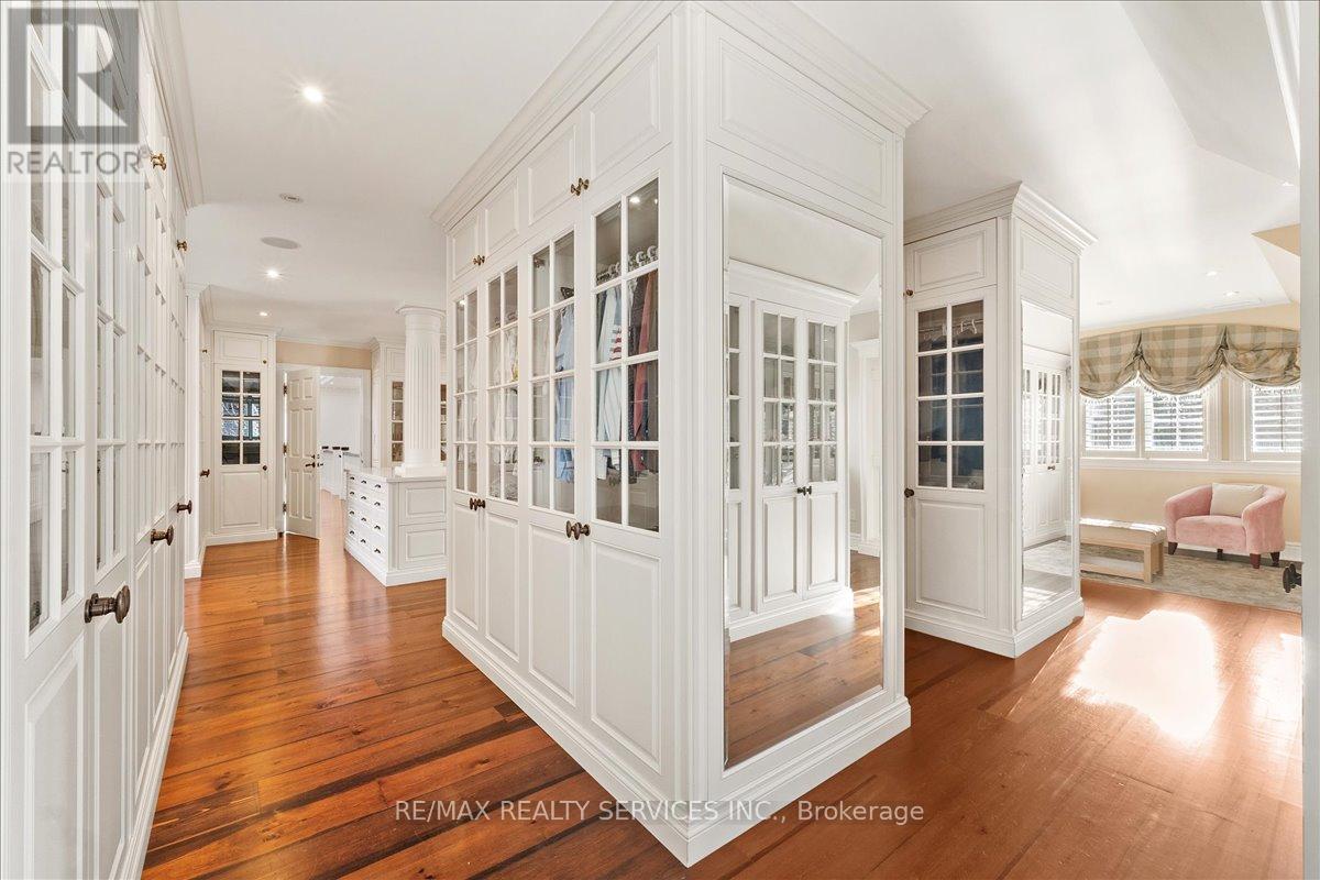 Experience the pinnacle of privacy and prestige in this 14,000 sq.ft. limestone clad estate, situated on a wooded 1-acre lot directly across from Heartlake Conservation Area. With a replacement value of $12.8M, this masterpiece underwent a 4 year rebuild that radiates luxury, and was completed in 2008. Featuring a 4-car garage with wash bay and a chef's kitchen with double islands, galley kitchen, and servery. The residence hosts 5 ensuite bedrooms, including a jaw-dropping 3,300 sq.ft. primary retreat with a private library, wet bar, Onyx-clad bath, walk-out patio, and a 1,500 sq.ft. boutique-style closet lined with custom millwork. The walk-out lower level redefines entertainment, offering a theatre, gym, nanny suite, playroom, and bar. The absolute showstopper is the indoor pool facility with a jacuzzi, changeroom with shower, and oversized glass doors that retract to create a seamless indoor/outdoor oasis unlike anything you've seen in the GTA. Outside, enjoy a stone courtyard and putting green surrounded by tranquil nature. Located near top-tier estates and Hwy 410, this home truly does have it all. (id:4555)