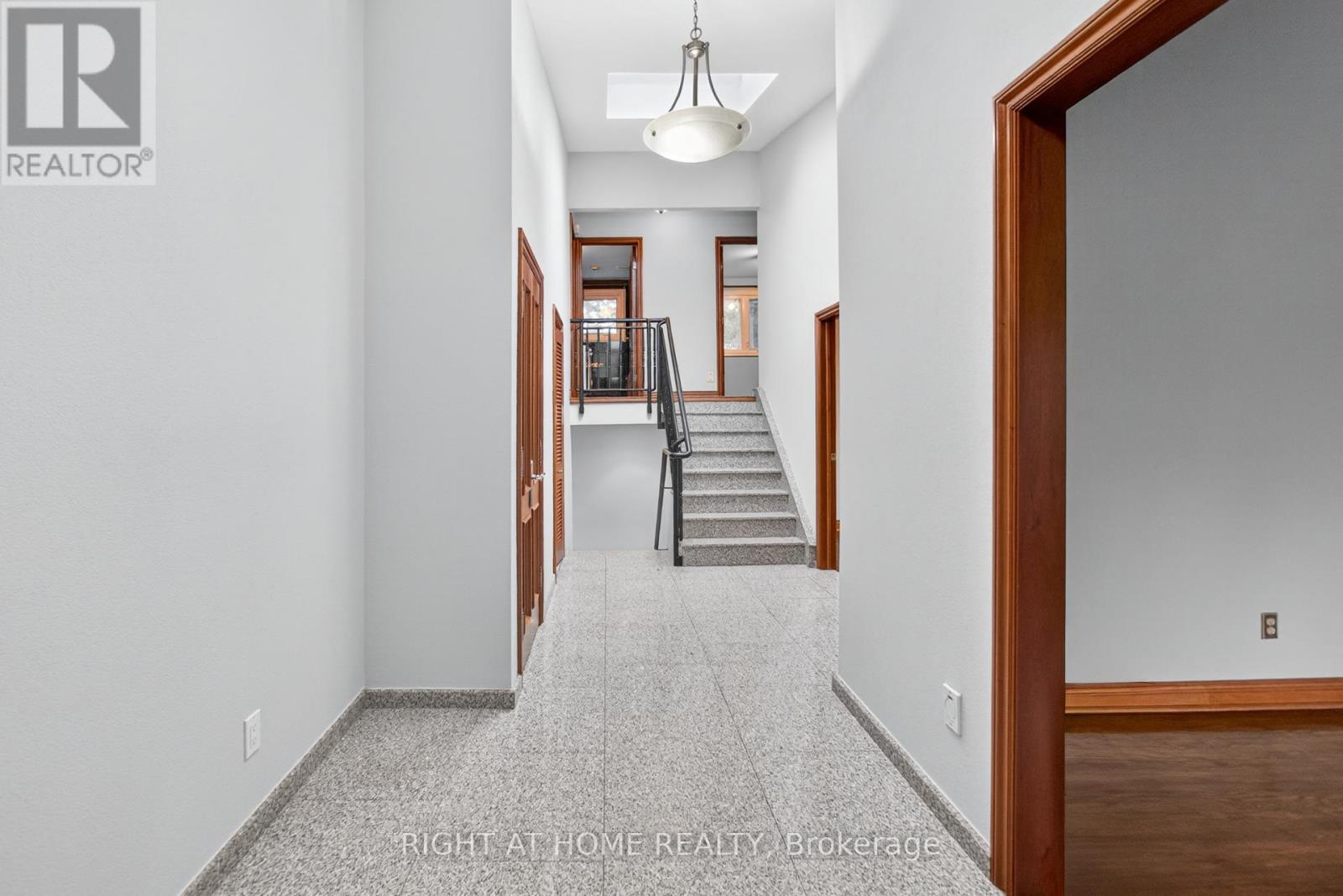 Welcome To 20 Pine Ridge Lane! This 4 bedroom 4 bathroom home is tucked away on a private large lot 65 x 180 on one of the most exclusive streets on a prestigious Cul-De-Sac in Peel Village! This home has been renovated and kept up-to-date with gorgeous high-end finishes and attention to detail. Hardwood and granite floor throughout. Honduran wood doors. Spacious main floor layout offers a kitchen with sky light and granite countertops, intimate dining area and large formal living room. Upstairs has 3 bedrooms including the over-sized master bedroom and ensuite bathroom plus 1 bedroom on lower level. Beautiful, bright & spacious 2900+ Sq Ft of finished living area, large foyer with skylight, Lovely family room with wet bar & wood burning fireplace over looking Private Backyard Oasis! Finished basement with ceramic tile floor, coldroom, full bathroom & alot of storage. Walking trails just steps from home! Close To Great Schools, Shopping Mall, Resturants, HWYS 407/401/410! YOU MUST SEE! (id:4555)