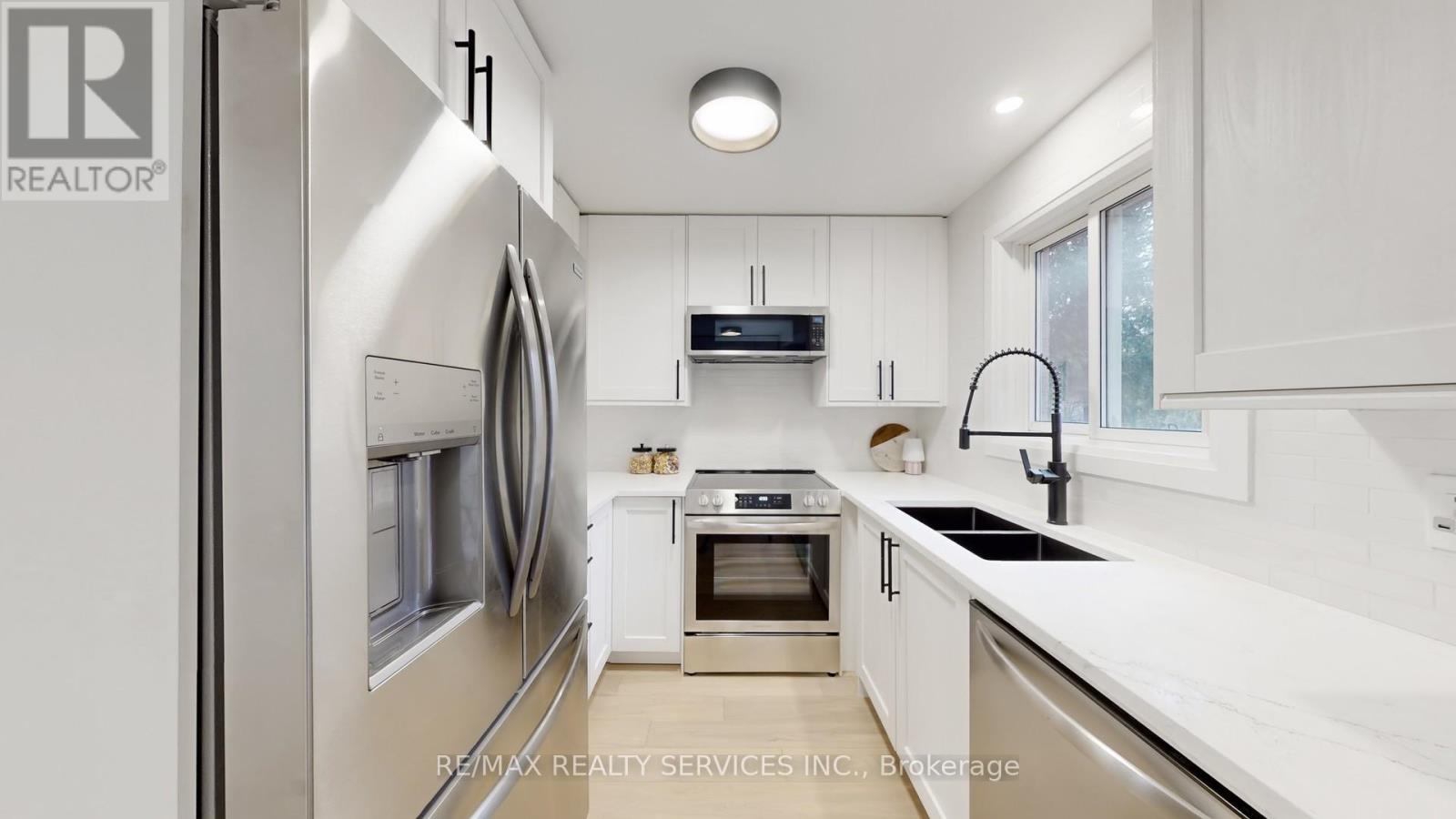 Welcome Home to 26 Mayfair Cres. Tucked away on a quiet, family-friendly street, this fully updated & move-in-ready 3-bed, 2.5-bath detached home with a finished basement offers comfort, style, & space to grow. Step inside to a thoughtfully designed main floor where everyday living & entertaining come together seamlessly. The modern kitchen features quality cabinetry with extended uppers, quartz countertops, subway tile backsplash, double sink, added pantry space, & a welcoming breakfast/eat-in area-perfect for morning coffee or family meals. A walkout leads to your fully fenced backyard & deck, extending your living space outdoors. The open-concept, sun-filled living & dining area showcases smooth ceilings & a paneled accent wall, creating a warm & inviting atmosphere. A convenient 2-piece powder room completes this level. Upstairs, you'll find 3 generously sized bedrooms, each with large closets & bright windows, along with a stunning 4-piece bathroom & additional linen & storage space-ideal for a growing family. The finished basement offers even more room to relax or entertain, featuring an open-concept recreation area with wet bar, pot lights, & a spacious 3-piece bath. Includes stacked laundry with laundry sink for added convenience. Enjoy wide-plank engineered hardwood flooring throughout the main/upper levels, wide-plank rubberized laminate flooring in the basement, an updated staircase with modern spindles, solid-core 2-panel shaker doors, & well-appointed accents including stylish light fixtures & upgraded door hardware, adding a refined yet cozy feel throughout. The backyard is designed for making memories, feat. a large 10 ft x 16 ft deck, stone patio, space to play or relax, & a garden shed. The spacious garage provides access from both the front & backyard! Ideally located within walking distance to parks & trails, schools, transit, & rec. centre, & just minutes to Bramalea City Centre, Chinguacousy Park, GO Station + (id:4555)