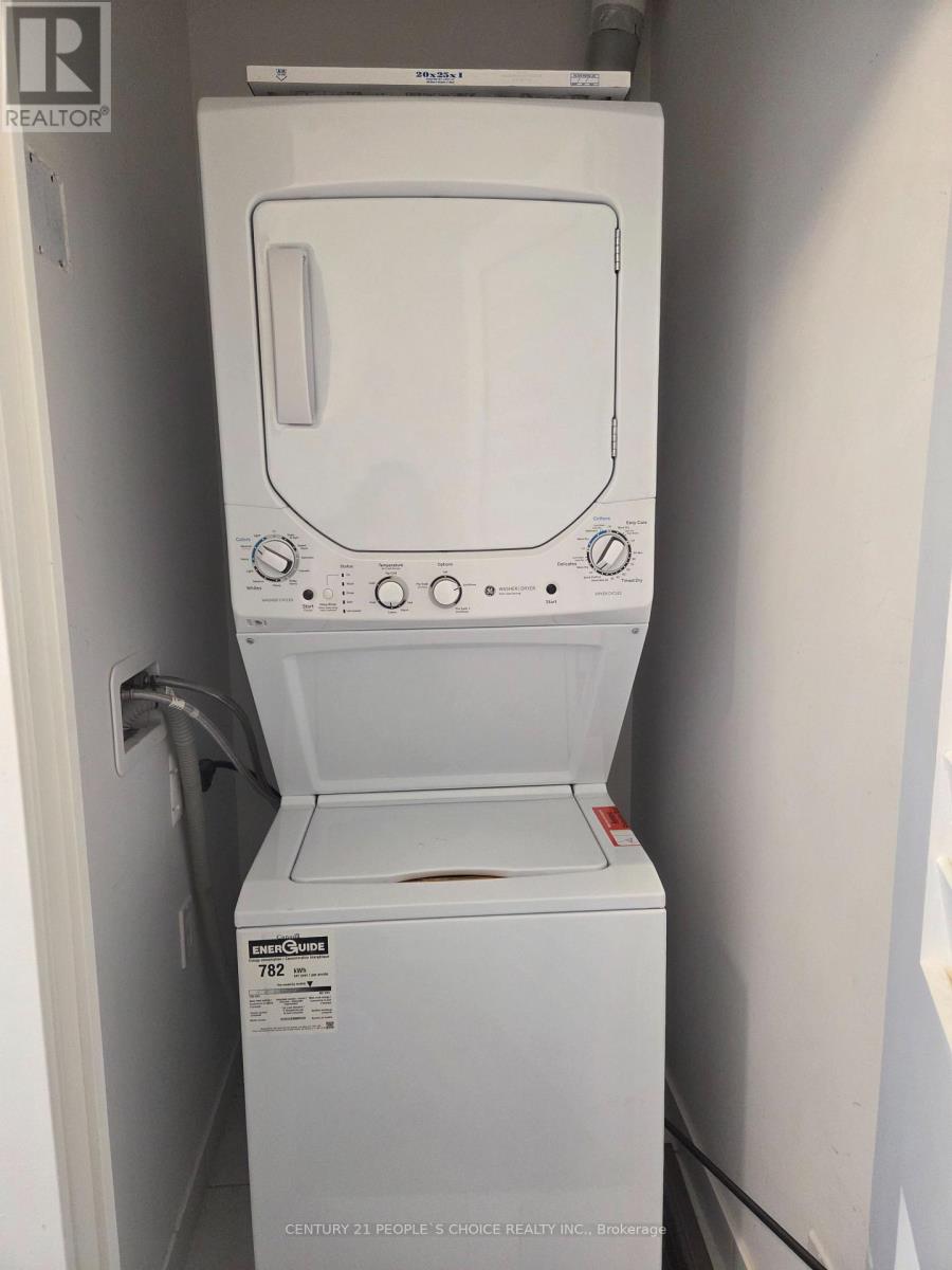 This spectacular 2 year old end condo unit has an open concept layout which seamlessly combines luxury, convenience and panoramic views. This condo features 2 beds, 2 full baths spanning at 693 sqft + 248 sqft balcony with 9 ft high ceilings. The kitchen boasts quartz countertops, stainless steel appliances, built-in dishwasher and over the range microwave. For convenience and practicality there is an ensuite laundry with a stackable S washer/dryer.This unit includes 1 locker and 1 underground parking, 24H concierge service, BBQ area, party room & gym located on ground floor. Minutes away to Mount Pleasant GO Station, HWY 407/401 and walking distance to grocery stores and parks. This meticulously crafted condo creates an airy and inviting atmosphere. *****Extras***** Pot lights, accent wall in living room, ceramic tiles, upgraded cabinets & washrooms. (id:4555)