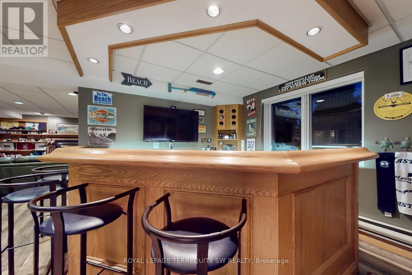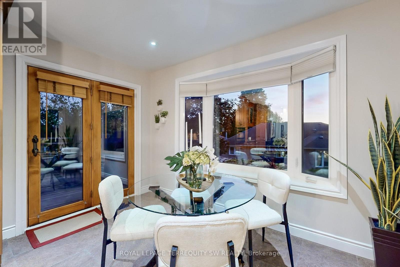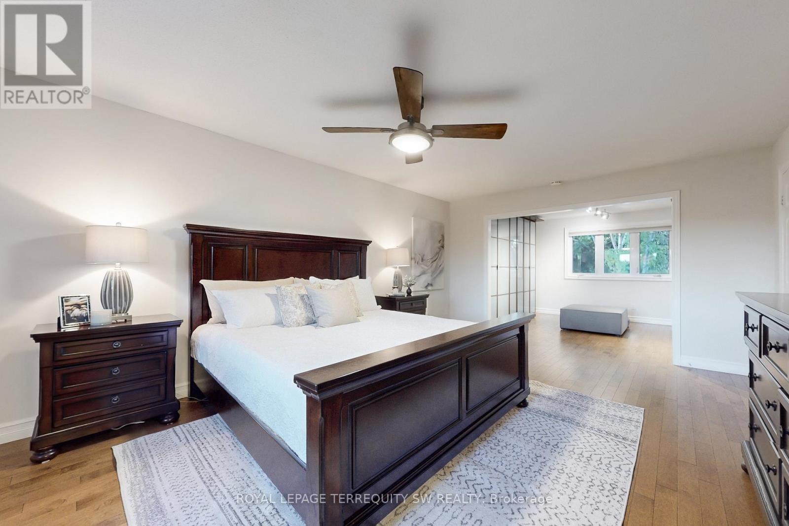 Tucked away on a quiet cul-de-sac in one of Brampton's most established enclaves, 8 Chalmers Court offers an exceptional balance of elegance, comfort, and family functionality. This detached 2 storey executive brick home sits on a mature, pie-shaped lot measuring 52 ft across at the front widening to over 130ft at the rear-surrounded by manicured gardens, mature trees, and resort-style outdoor living with a stone patio, gazebo, pristine heated in-ground pool. A gracious foyer opens to distinct principal rooms with refined finishes: formal living and dining rooms with French drs, smooth ceilings, and gleaming hardwood floors; a bright family room anchored by a gas fireplace, built-in cabinetry, and patio doors to the sun deck. The chef's kitchen impresses with granite countertops, centre island, custom backsplash, gas stove, under-mount lighting, pot lights, beverage fridge, and stainless-steel appliances. The adjoining breakfast rm-featuring a bay window and walk-out to the deck-overlooks the lush gardens, and pool. Upstairs, the spacious primary suite (incorporating the fifth bedroom) offers a private dressing area, hardwood floors, and a luxurious 4-pc ensuite with heated floors, double sinks, glass shower, and standalone tub. Three additional bedrooms and a skylit hallway complete the level. The finished lower level adds a versatile recreation room with wood-burning fireplace, wet bar, games area, 4-pc bath with Jacuzzi, exercise space, built-ins, and a walk-out to the patio. Recent updates include roof(2023), main bath(2016), new blinds throughout, 200-amp service + pony panel, pool liner(10 yrs), pump(5 yrs), heater(10 yrs), and backyard patio (3 yrs). Additional features: central air, central vac, security system, in-ground sprinklers, landscape lighting, and gas line for BBQ/fire table. Minutes to schools, parks, and major routes (410/407/401), a beautifully maintained executive residence on a peaceful court-pride of ownership shines inside and out. (id:4555)