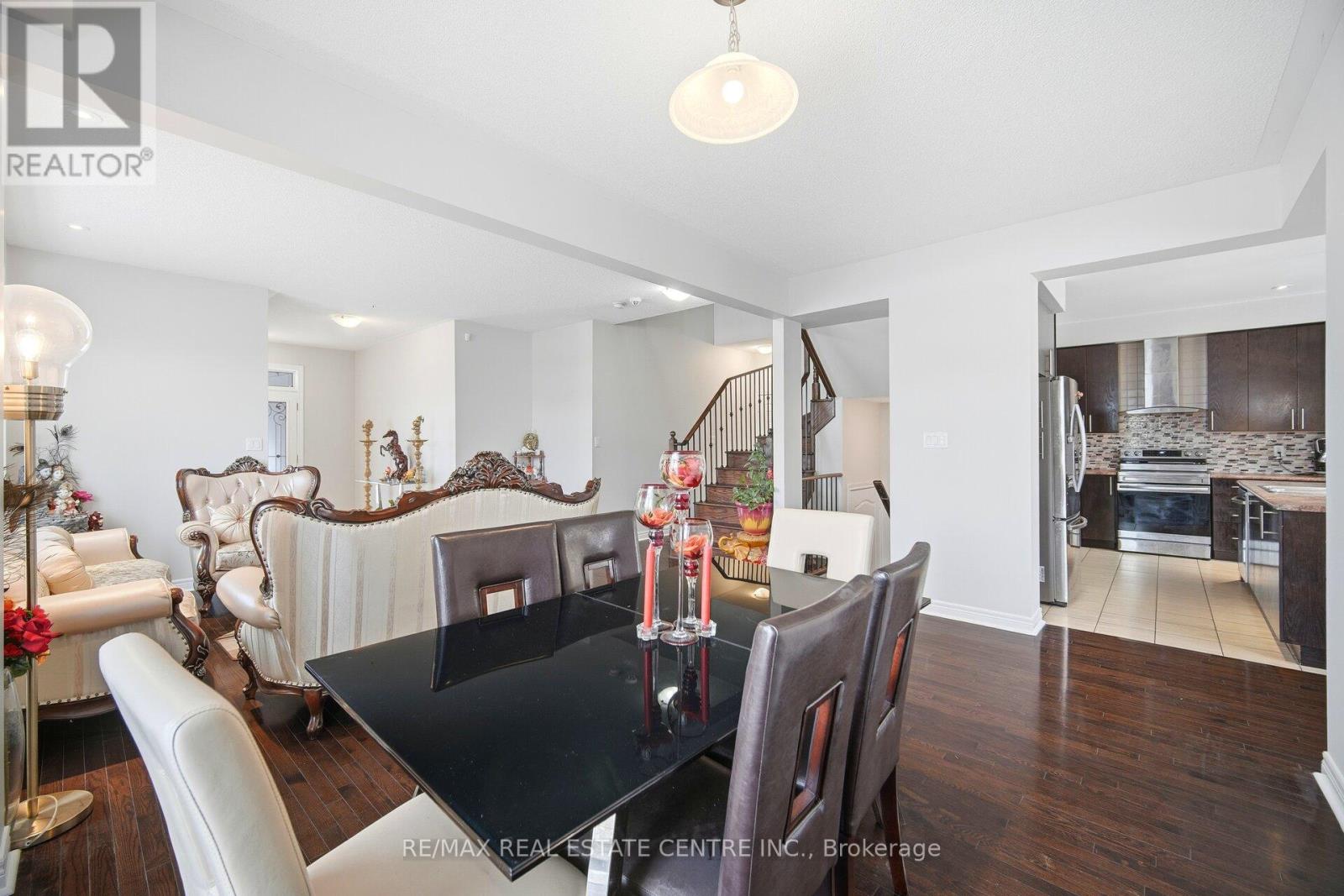 Step into this stunning 4-bedroom, 4-washroom detached home, perfectly situated in one of the area's most sought-after locations. 2926 SQFT as Per MPAC, Designed for both style and comfort, this home features three full washrooms on the second level, offering exceptional convenience for families. The main floor welcomes you with rich dark-stained hardwood flooring, Separate Living and Family Rooms flowing seamless. Solid oak staircase with upgraded wrought-iron pickets. Enjoy the airy feel of 9 ft ceilings On Main and an upgraded kitchen complete with extended cabinetry, undermount sink, elegant backsplash, and a spacious breakfast island-ideal for everyday living and entertaining. The finished basement with a separate entrance provides incredible potential for extended family or rental income. Located just minutes from Hwy 50 and Hwy 427, this home offers unbeatable convenience for commuters. A beautifully upgraded property that blends luxury, practicality, and location-ready to welcome its next owners. (id:4555)