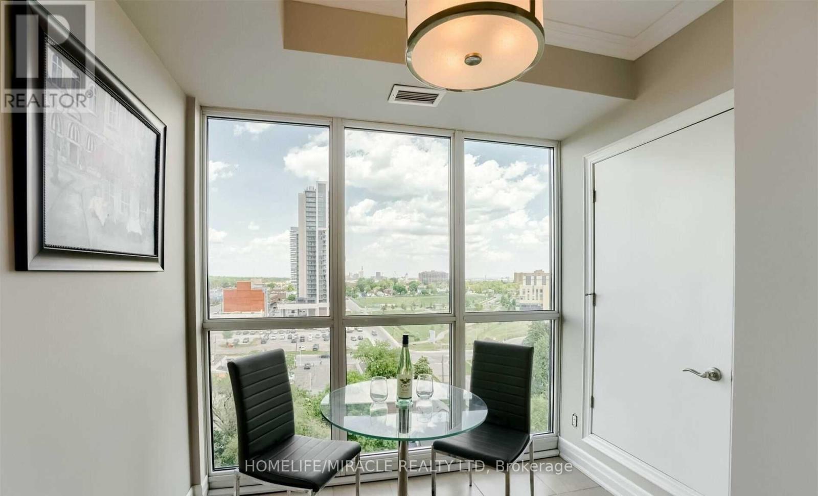 Stunning and spacious 2 Bdrm Den Corner Unit w/ A wraparound Balcony & wonderful views of Downtown Brampton. Large Open Concept, w/FL to Ceiling Windows & Lots of Natural Sunlight. New Vinyl Flooring, New Vanities In Both Bathroom. Large & Well Laid Out With Bat In Kitchen, Granite Countertops & Breakfast Bar, Over-Looking the Living & Dining Area. Master Bdrm w/Ensuite & W/I Closet. Entry to Unit Has A Den. Easy Access To Hwy 410 & Public Transit, GO station. (id:4555)