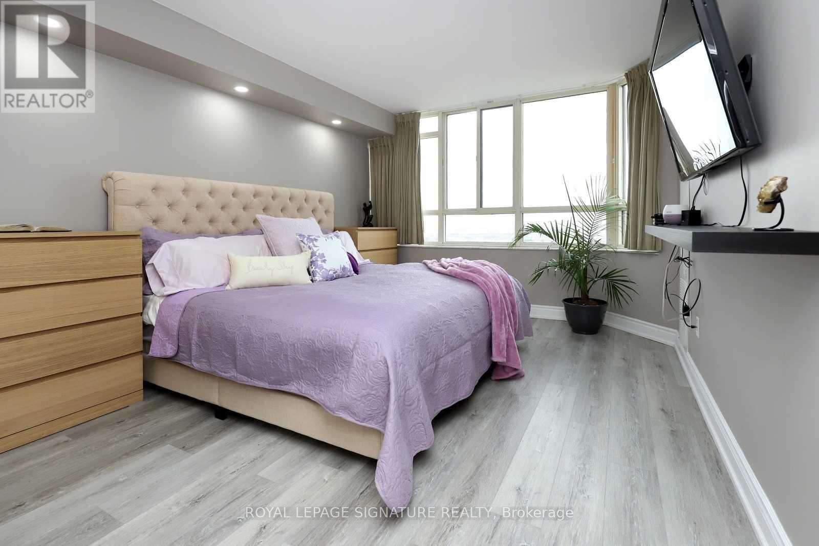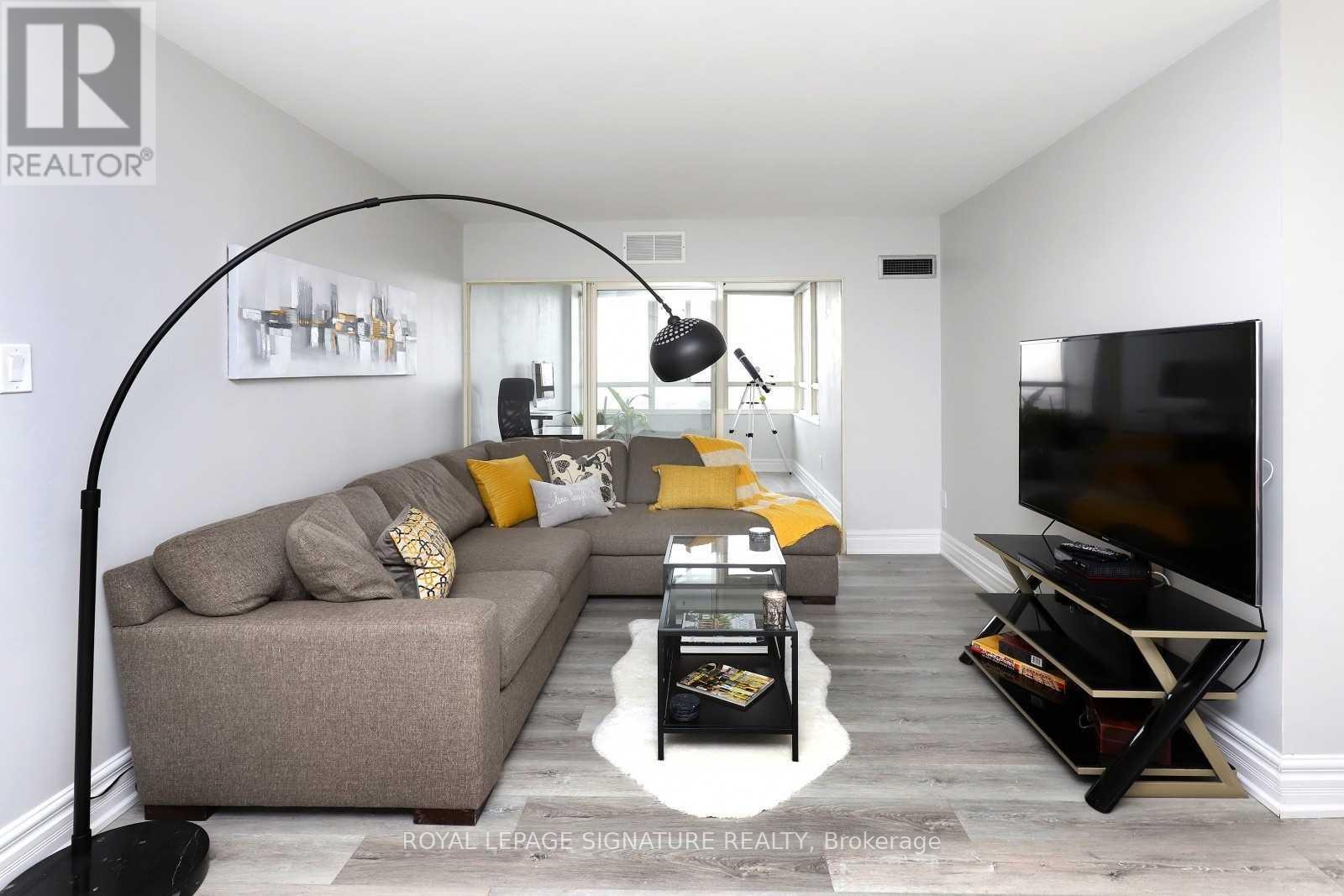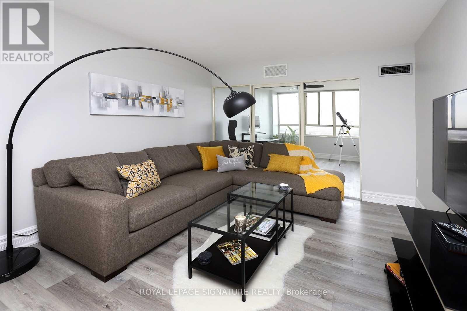 Welcome To This Beautifully Renovated, Move-In-Ready, South-Facing Suite Offering Exceptional Space, Refined Finishes, & Breathtaking City Views Stretching All The Way To The CN Tower. Bathed In Natural Sunlight Throughout The Day, This Home Delivers A Bright, Airy Atmosphere That Elevates Everyday Living. The Expansive Sun-Filled Solarium Provides Outstanding Versatility & Can Easily Function As A Third Bedroom, Home Office, Playroom, Or Serene Retreat-Ideal For Families & Professionals Alike. The Home Features A Fully Renovated Kitchen & Two Stylishly Updated Bathrooms. Complemented By Luxury Laminate Flooring Throughout, Smooth Ceilings, & No Carpet, Creating A Sleek, Contemporary, Low-Maintenance Environment. The Primary Bedroom Is Enhanced With Modern Pot Lights, Dimmers In Both The Primary Bedroom And Dining Room Allows You To Set The Perfect Ambiance For Any Occasion. Enjoy Peace Of Mind With Smart Home Technology. Complete With A SmartLock & Smart Peep-Hole Camera, Giving You The Ability To Secure & Monitor Your Home From Anywhere In The World. Effortless Convenience & Peace Of Mind. This Spacious Unit Includes Two Parking Spaces & A Storage Locker. The All-Inclusive Maintenance Fee Covers All Utilities, High-Speed Internet, And A VIP Cable Package, Offering Exceptional Value And Convenience. The Impeccably Maintained Building Features 24-Hour Security & Resort-Style Amenities Including A Fully Equipped Gym, Outdoor Swimming Pool, Billiards Room, Squash And Tennis Courts, Two Saunas, Party Room, Library, & A CarWash Station. Ideally Located Near Schools, Parks, Shopping, Public Transit, & Seamless Access To Highways 407, 410, & 401. This Home Delivers A Rare Blend Of Luxury, Functionality, & Lifestyle. It Checks Every Box. (id:4555)